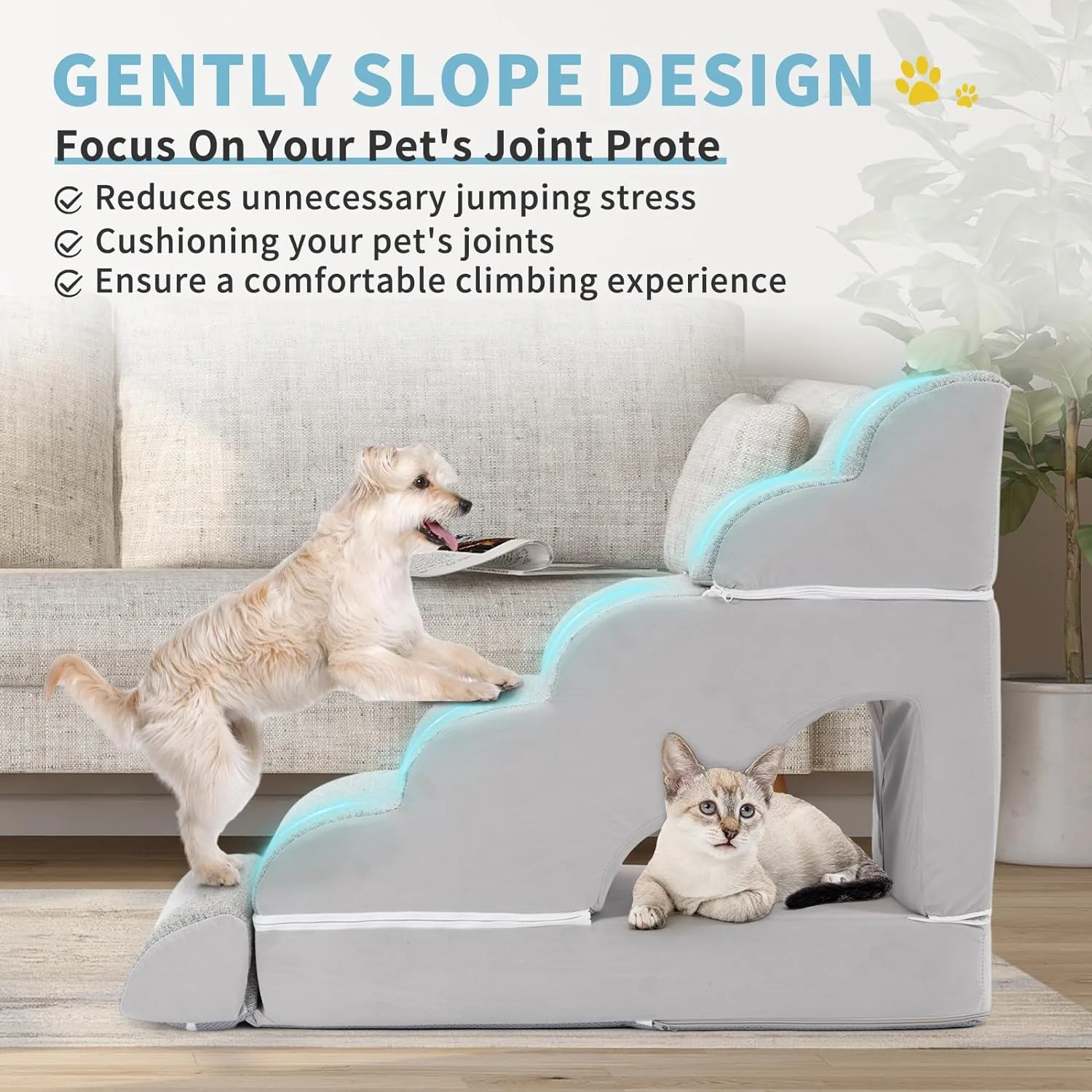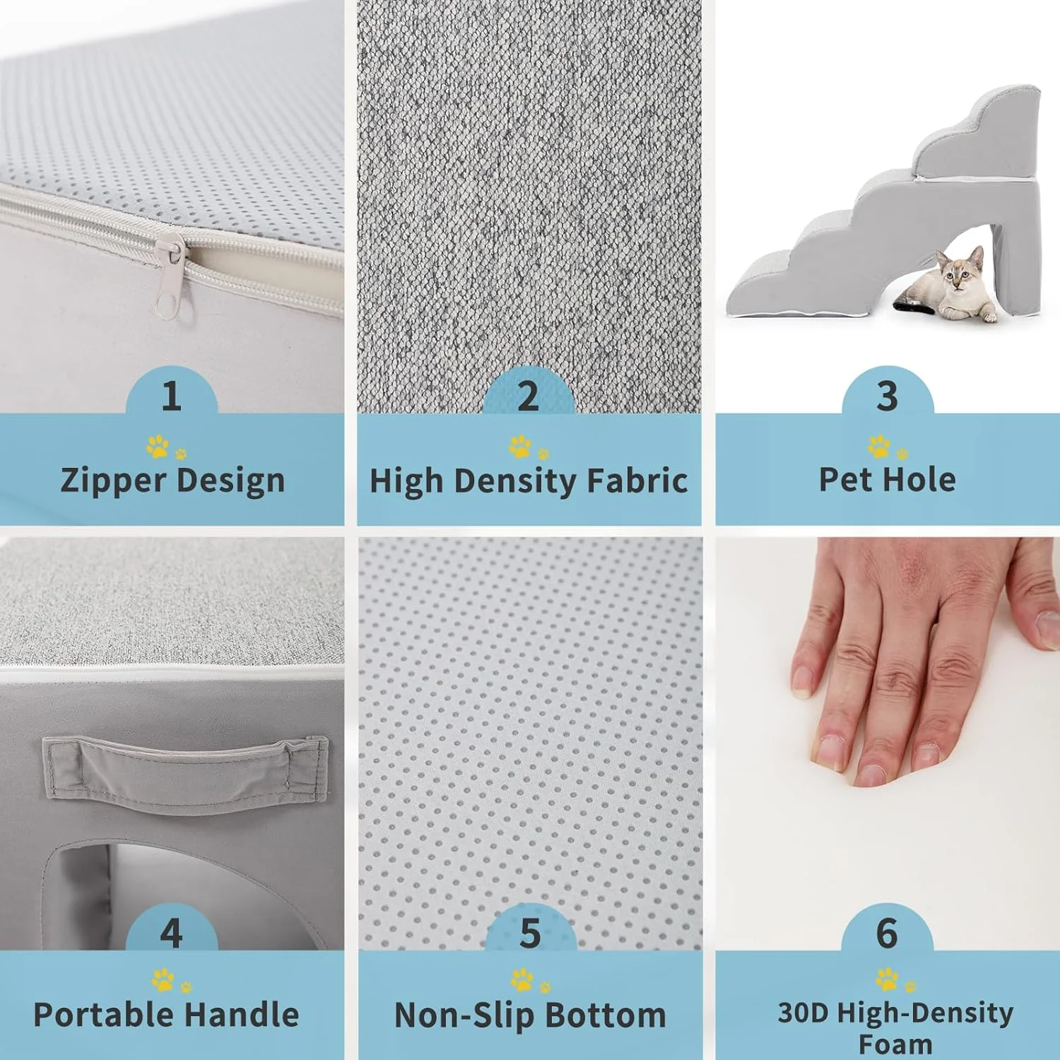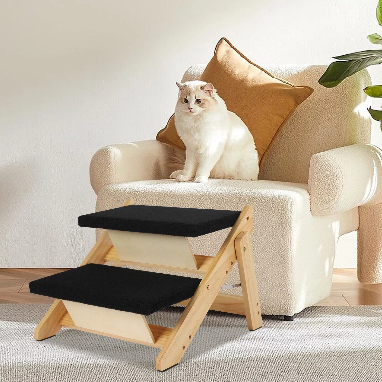 Freestanding Wooden Pet Stair Foldable Wooden Pet Ramp Cat Dog Wood Steps Ladder Stairs High Bed