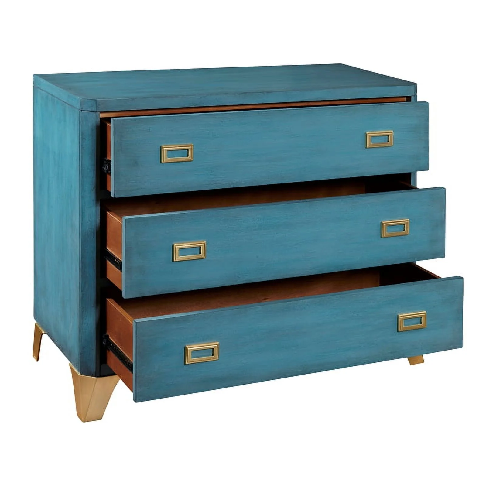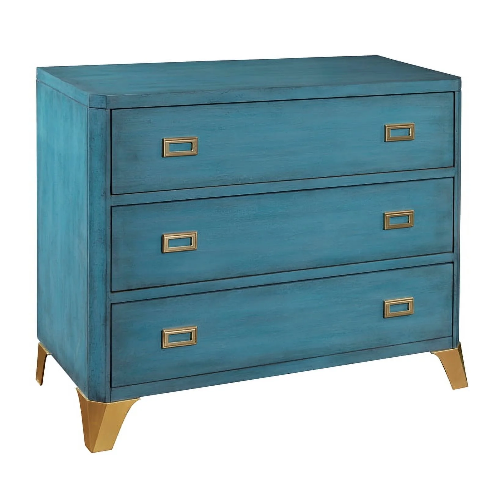 Wood Three Drawer Turquoise Blue Accent Chest By Pulaski Furniture
