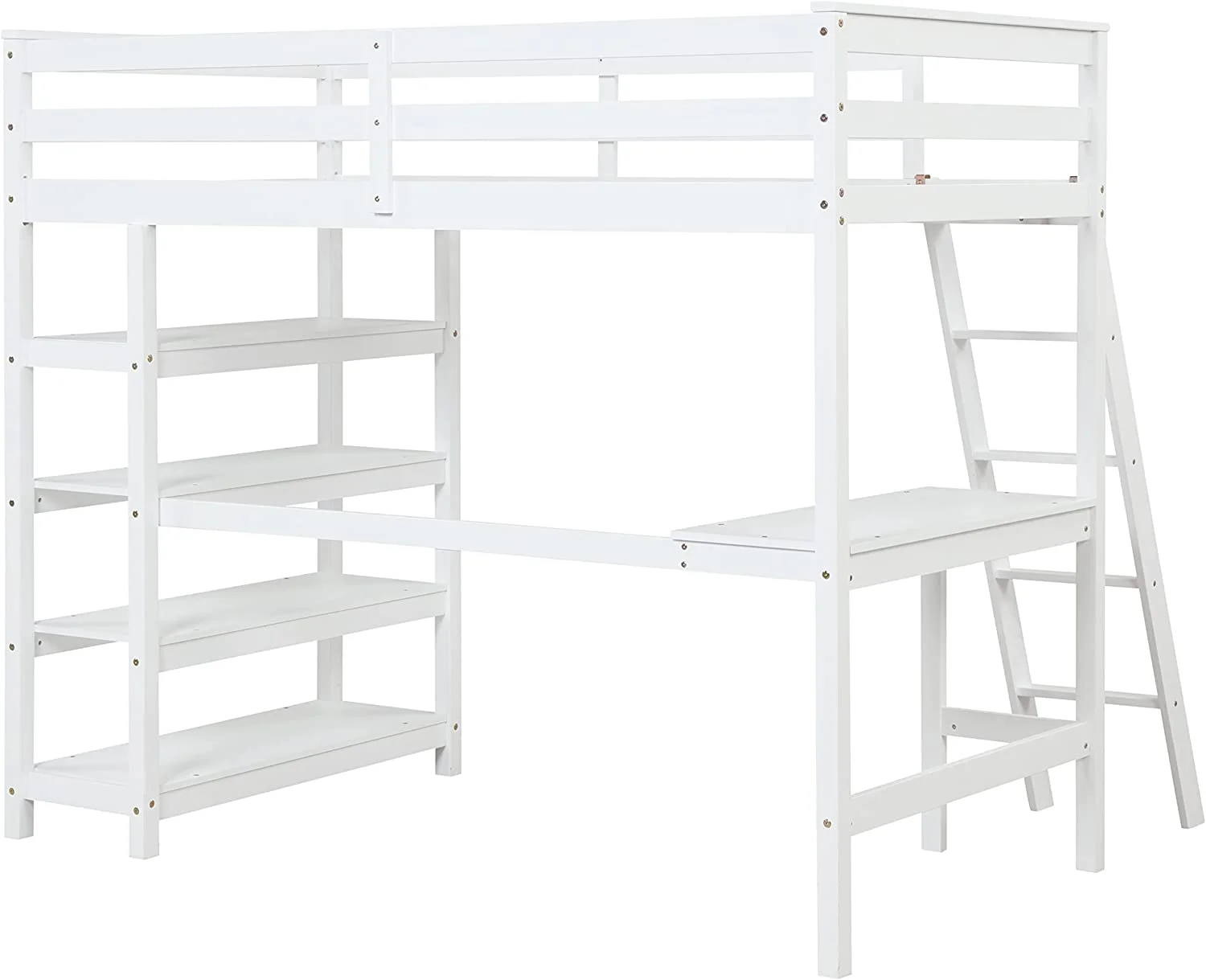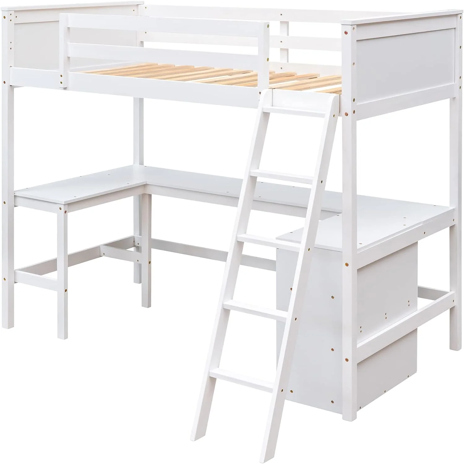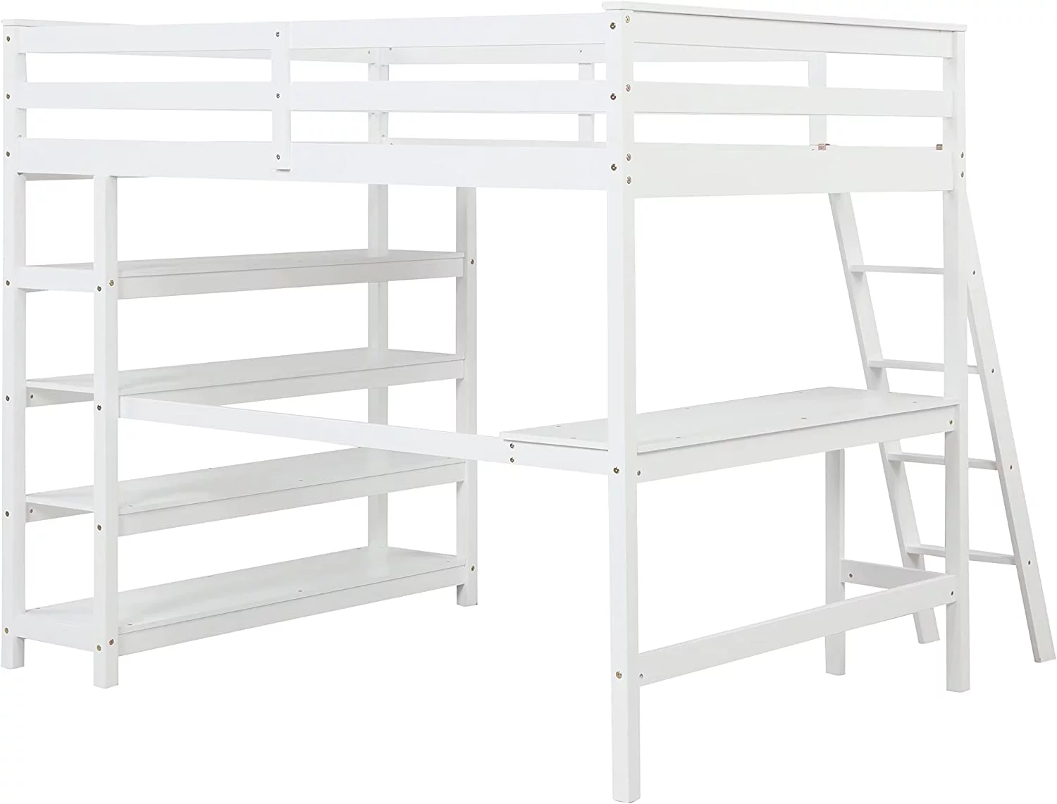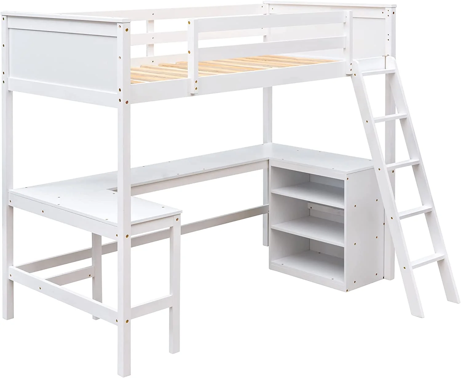 ikayaa Loft Bed Low Study Twin Size Loft Bed With Storage and Portable,Desk,White,his product comes in 2 separate packages