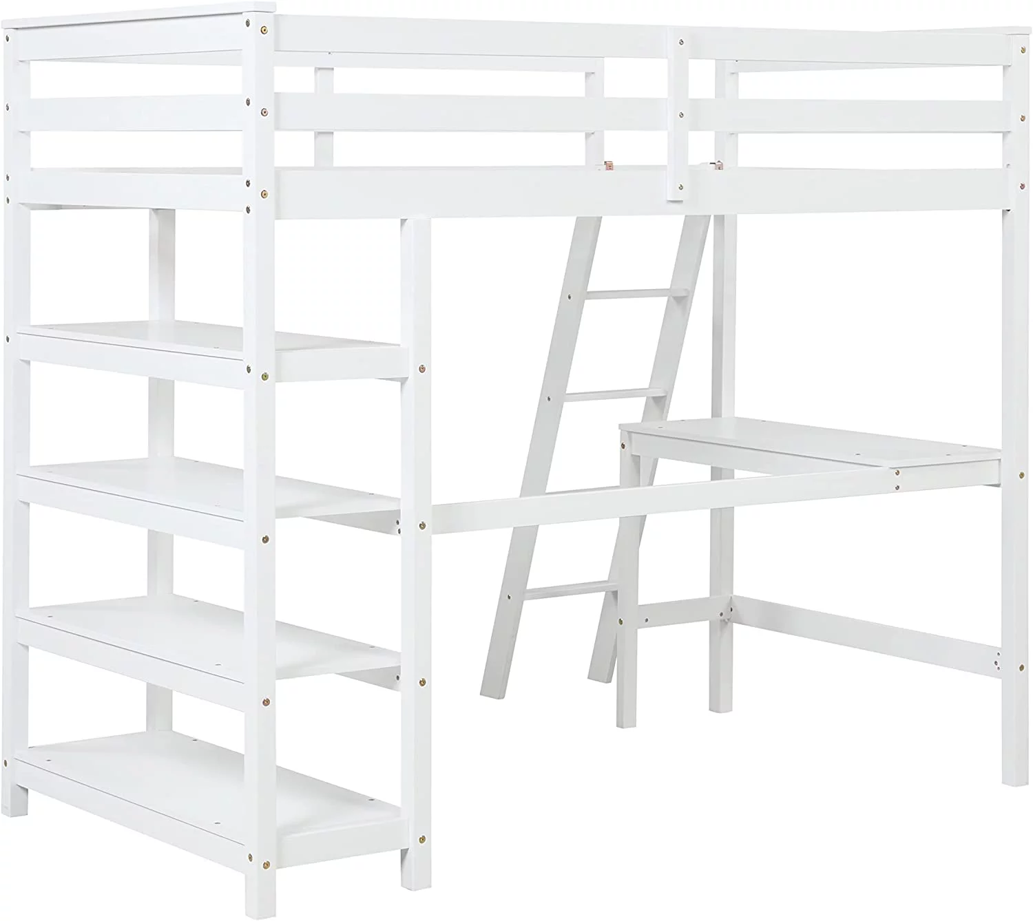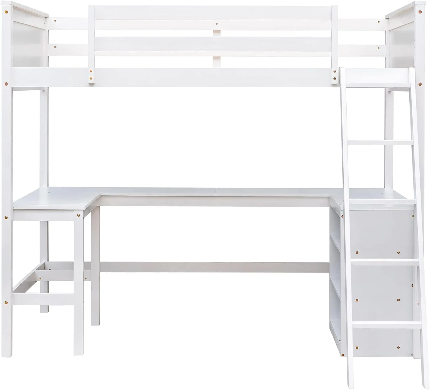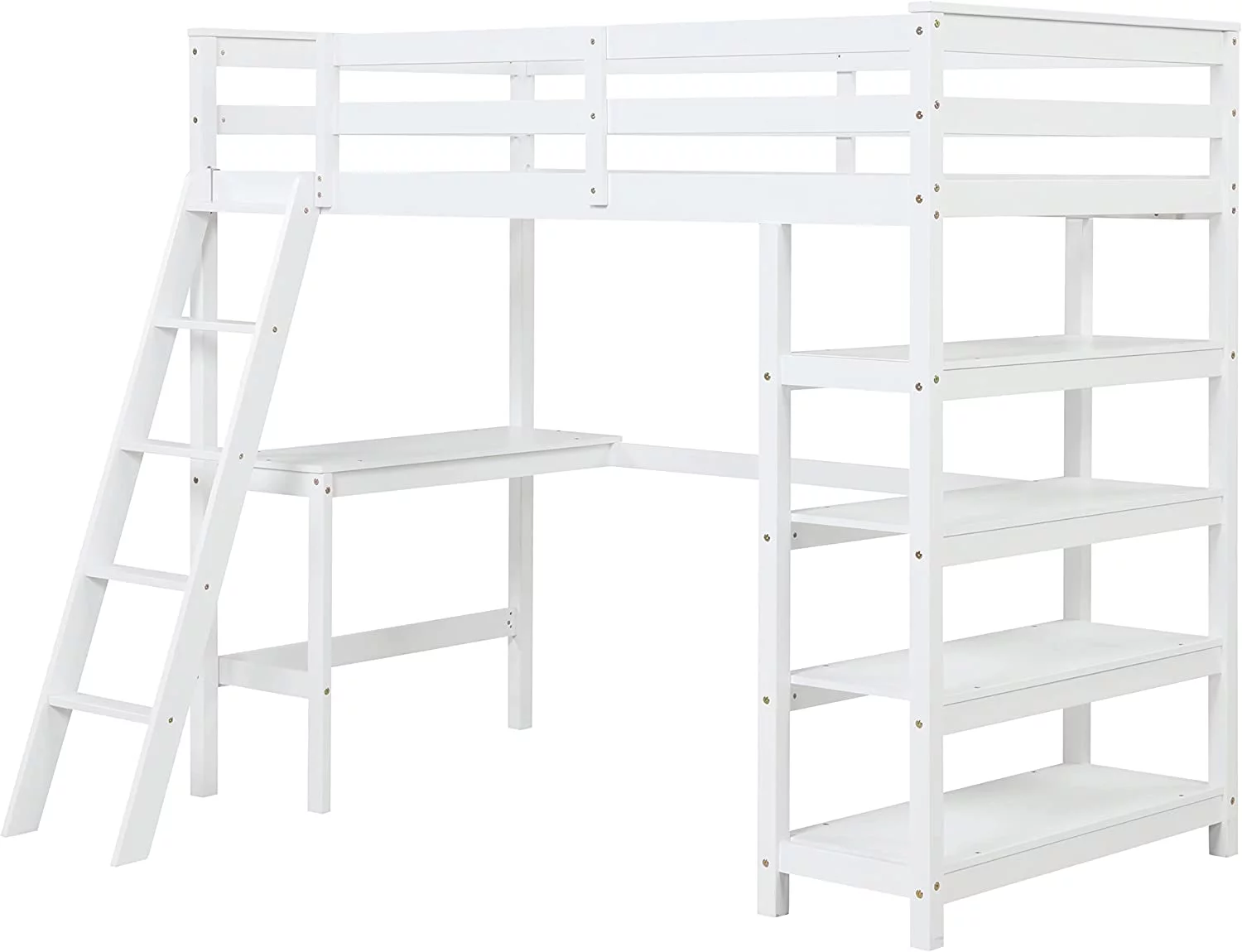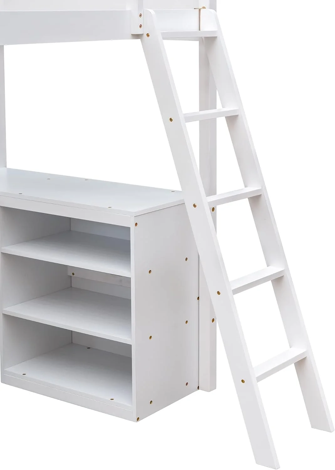ikayaa Loft Bed Low Study Twin Size Loft Bed With Storage and Portable,Desk,White,his product comes in 2 separate packages