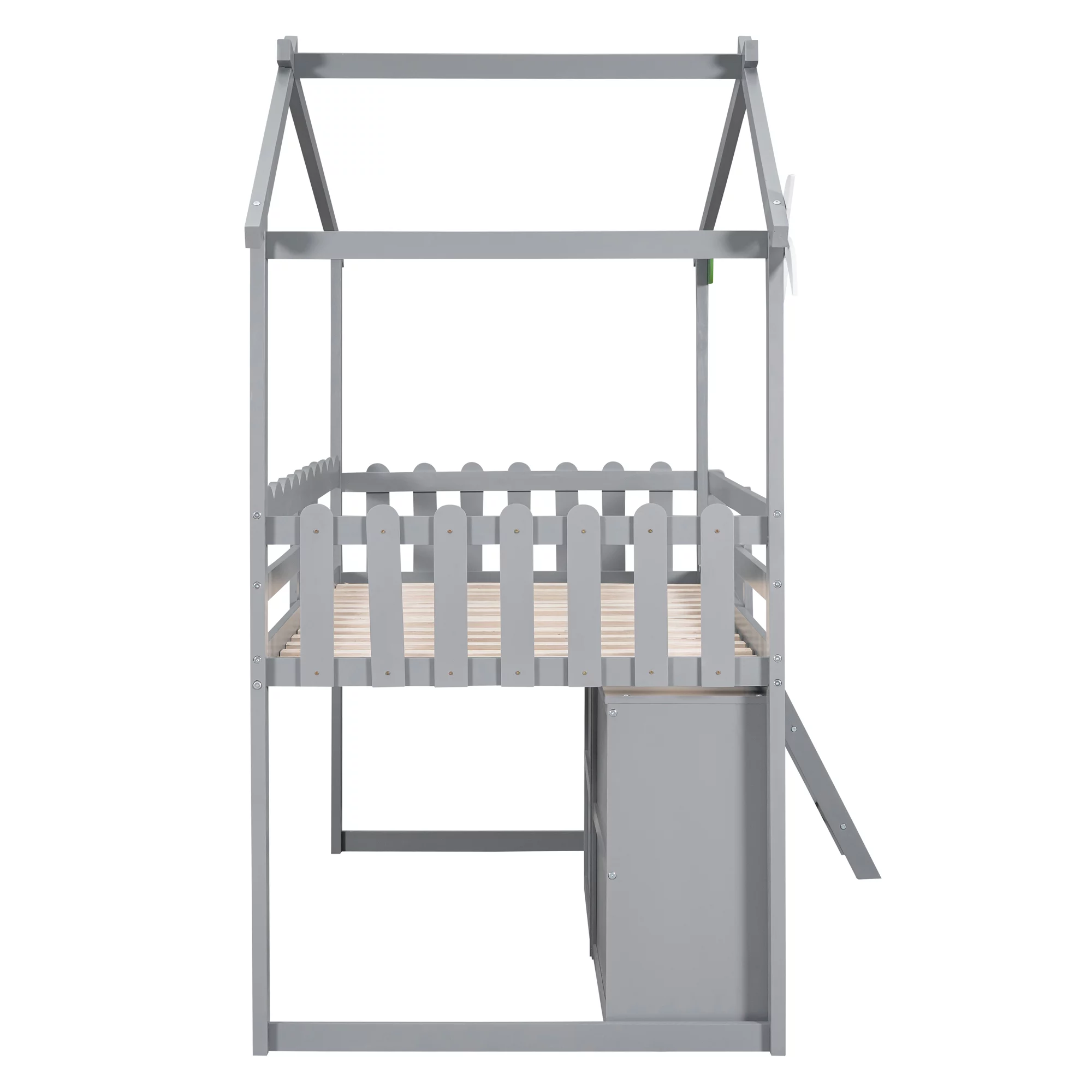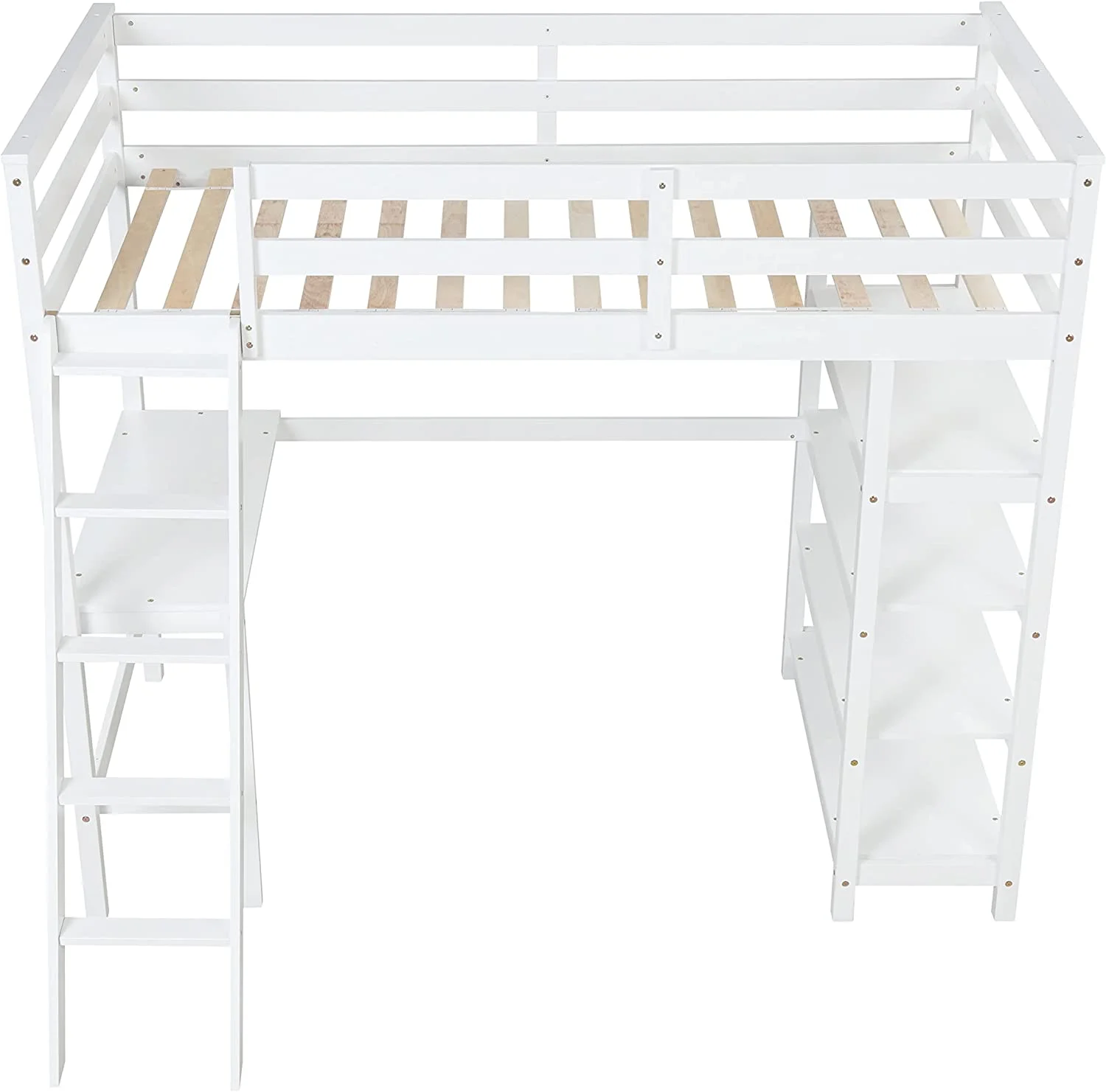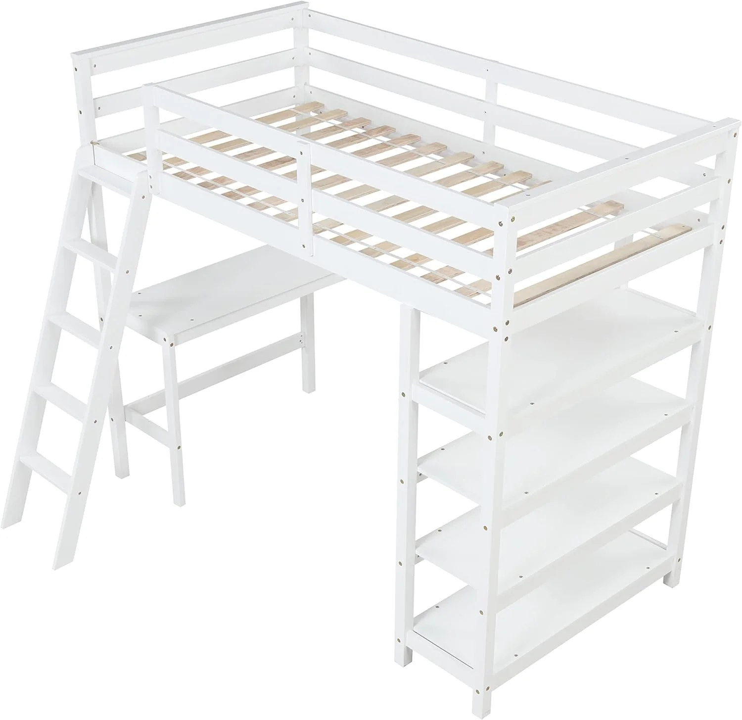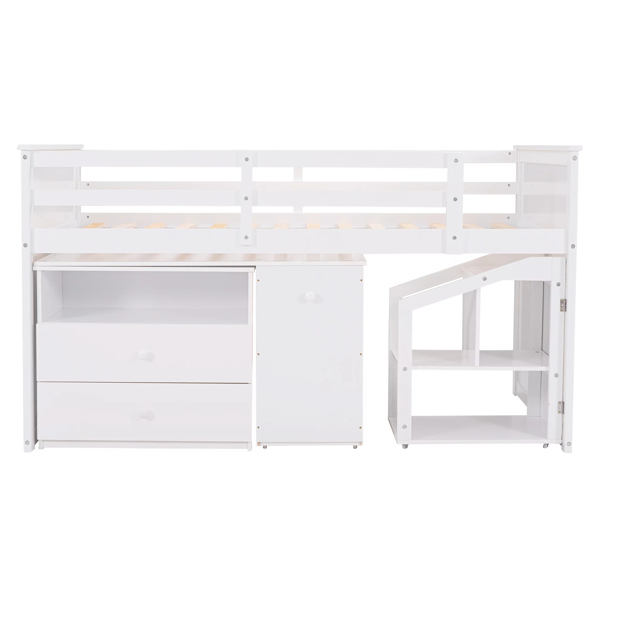ikayaa Loft Bed Low Study Twin Size Loft Bed With Storage and Portable,Desk,White,his product comes in 2 separate packages