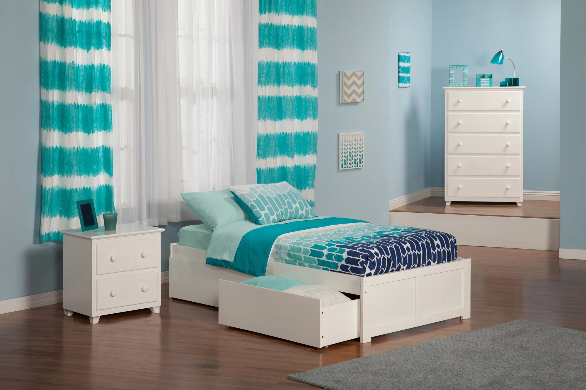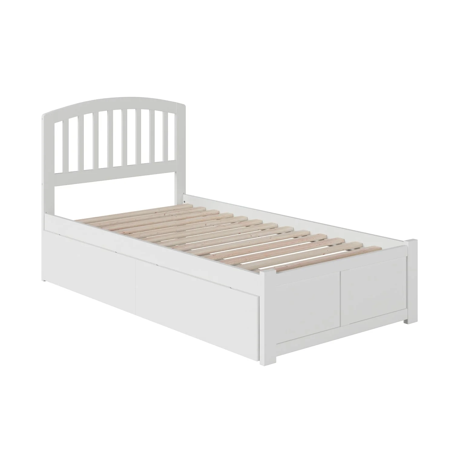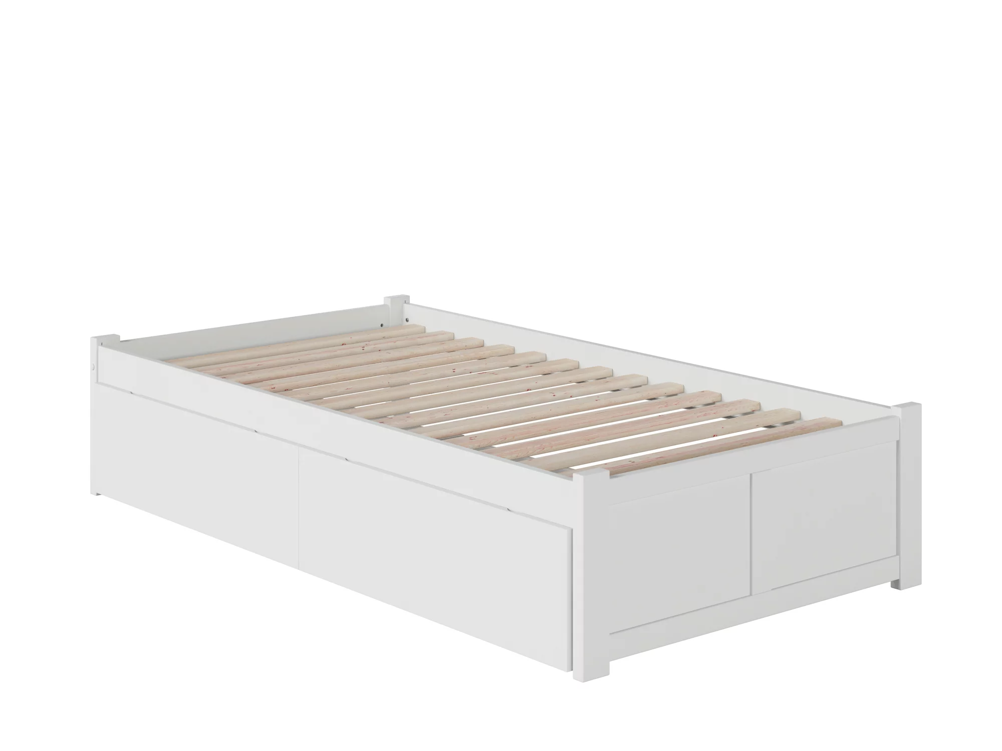 AFI Concord Twin Solid Wood Platform Bed with Footboard & 2 Storage Drawers in White