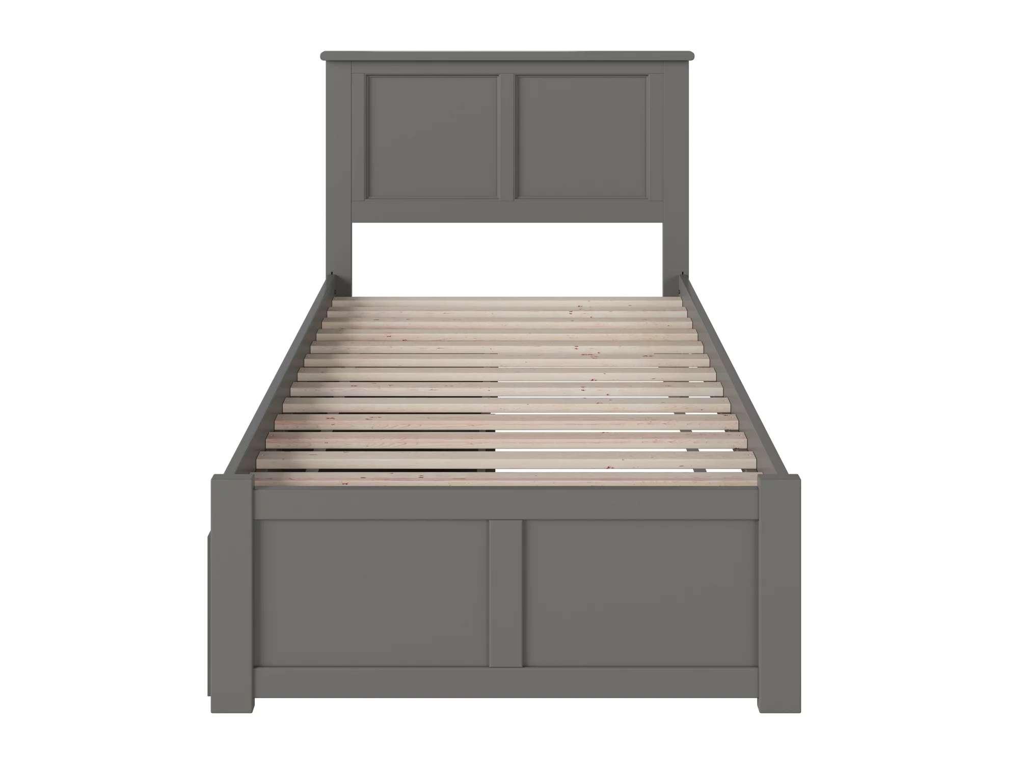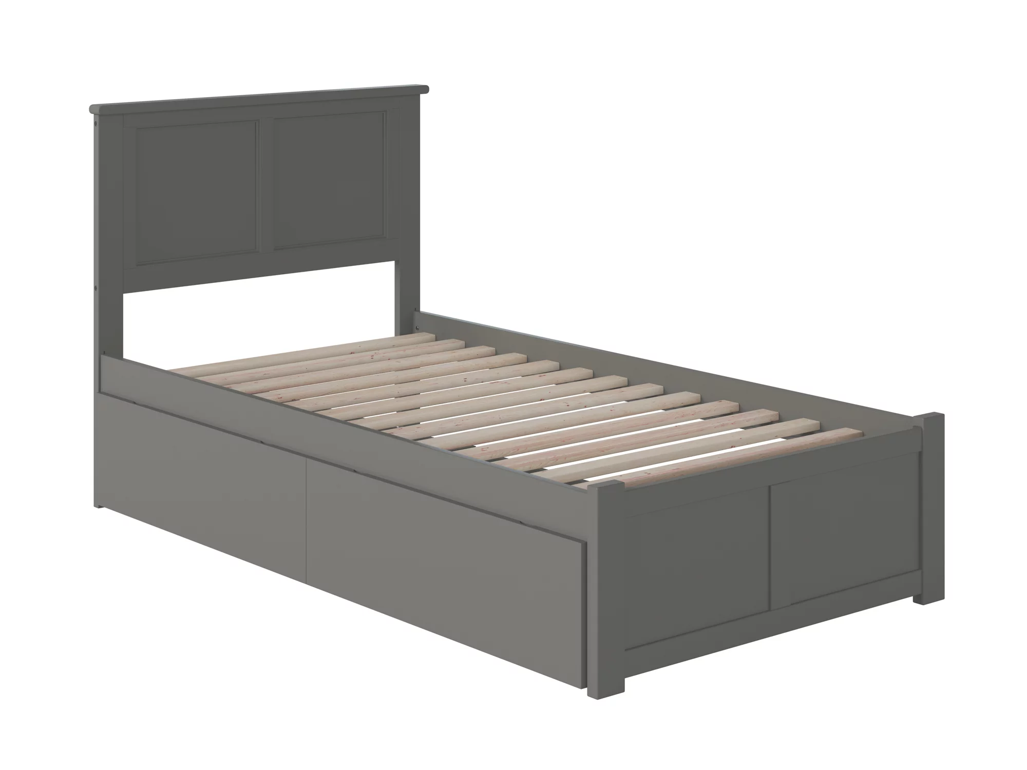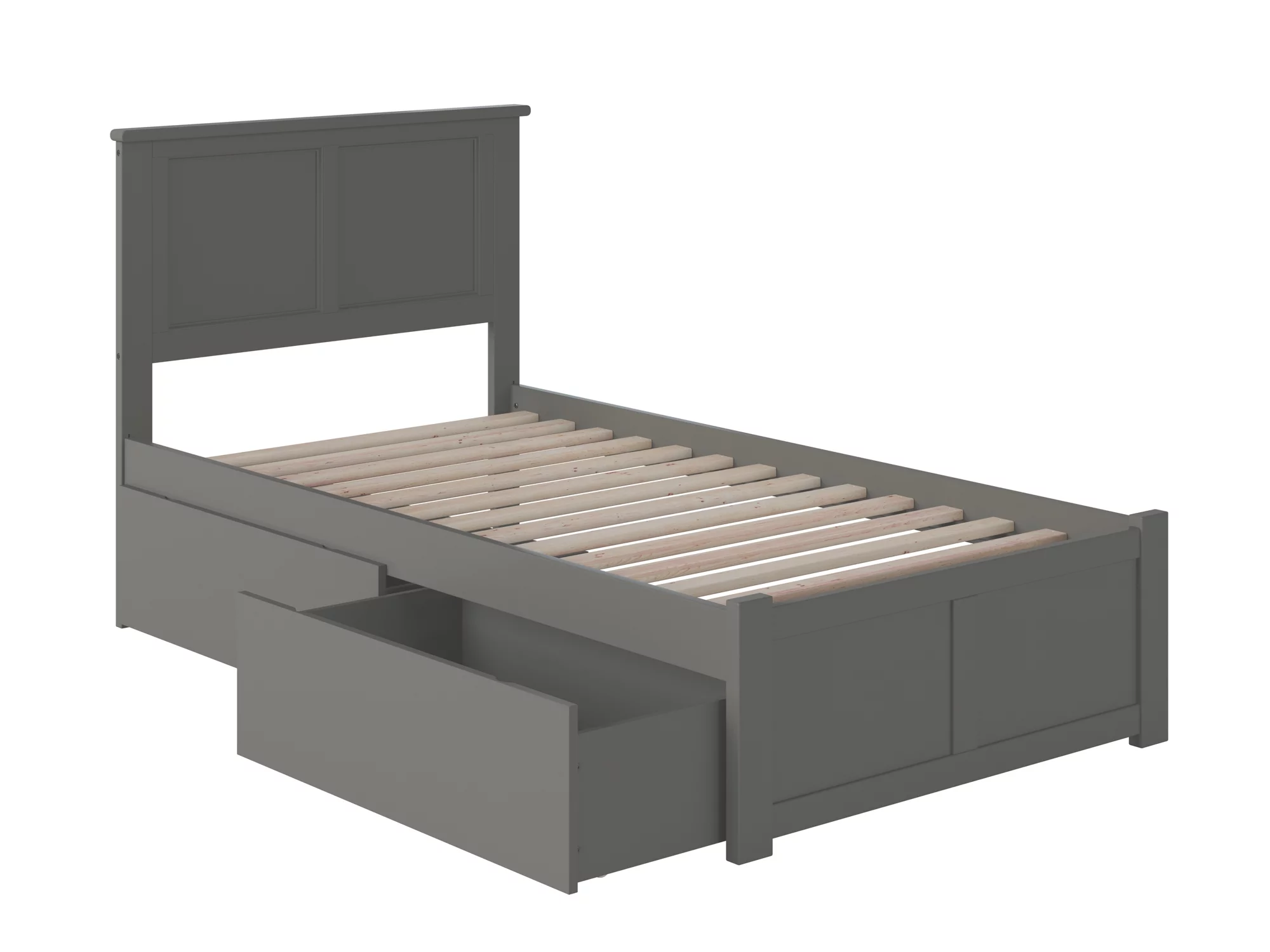AFI Madison Twin Solid Wood Platform Bed with Footboard & 2 Storage Drawers in Grey