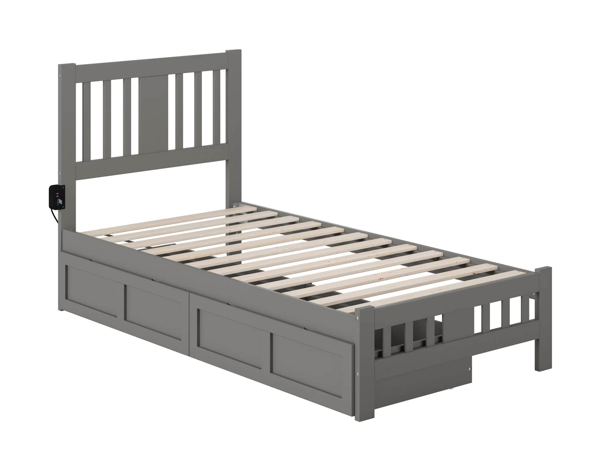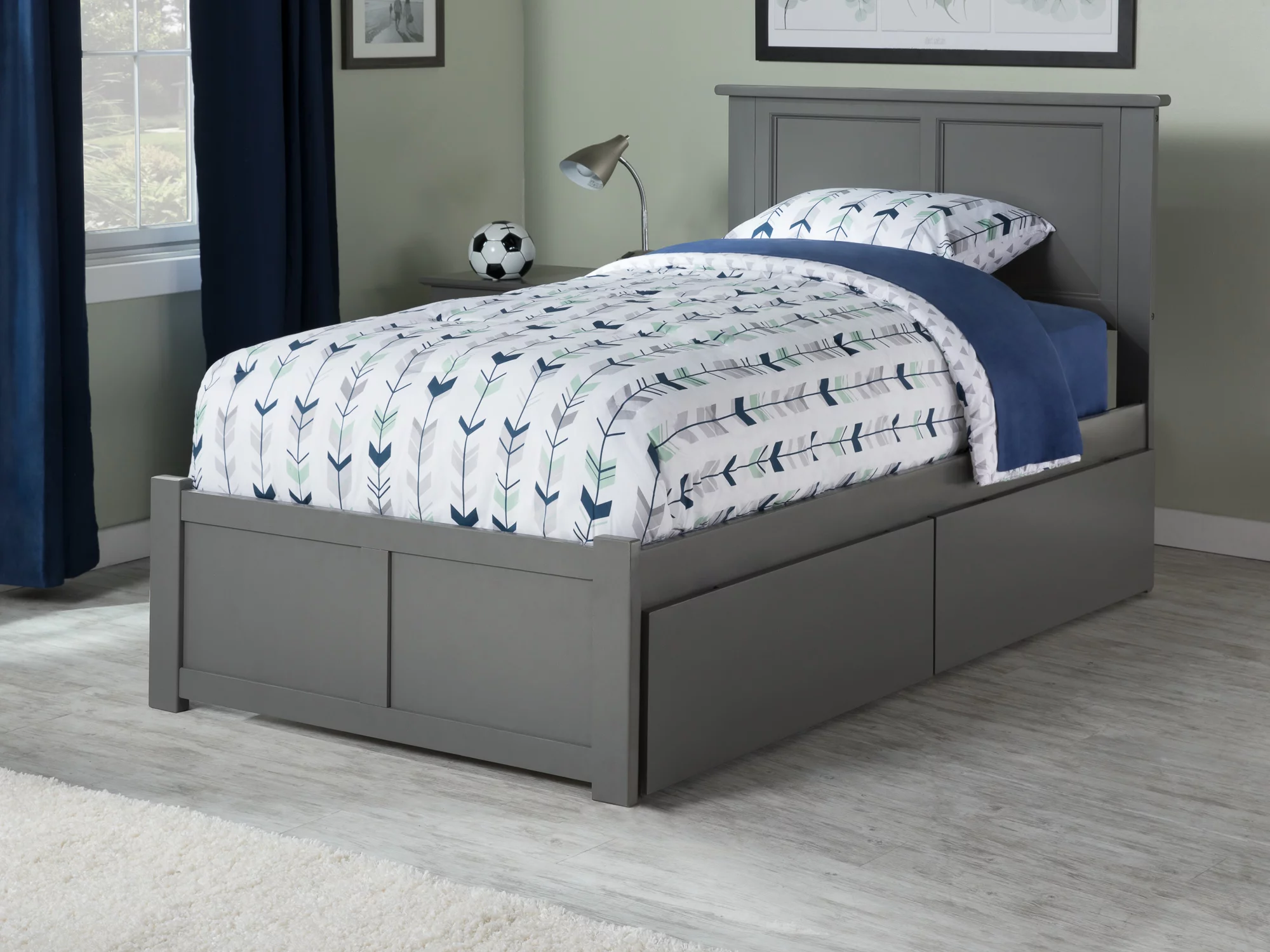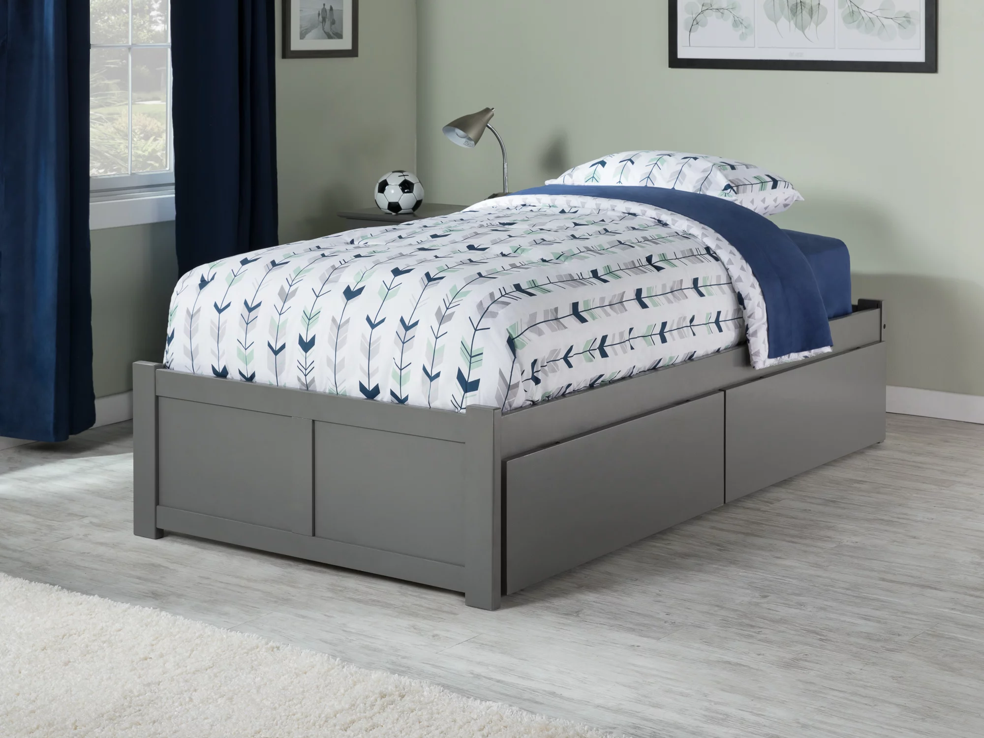AFI Madison Twin Solid Wood Platform Bed with Footboard & 2 Storage Drawers in Grey