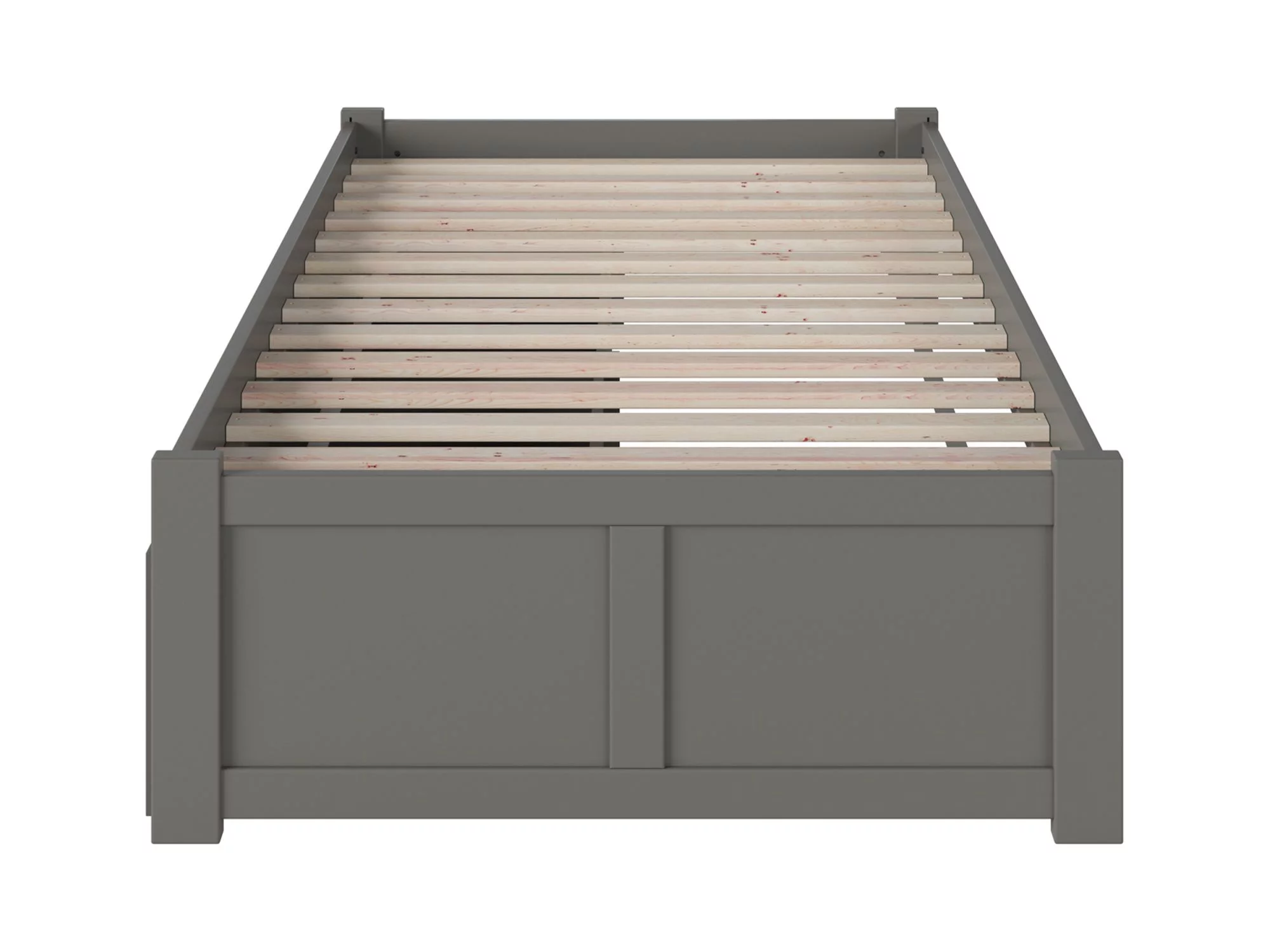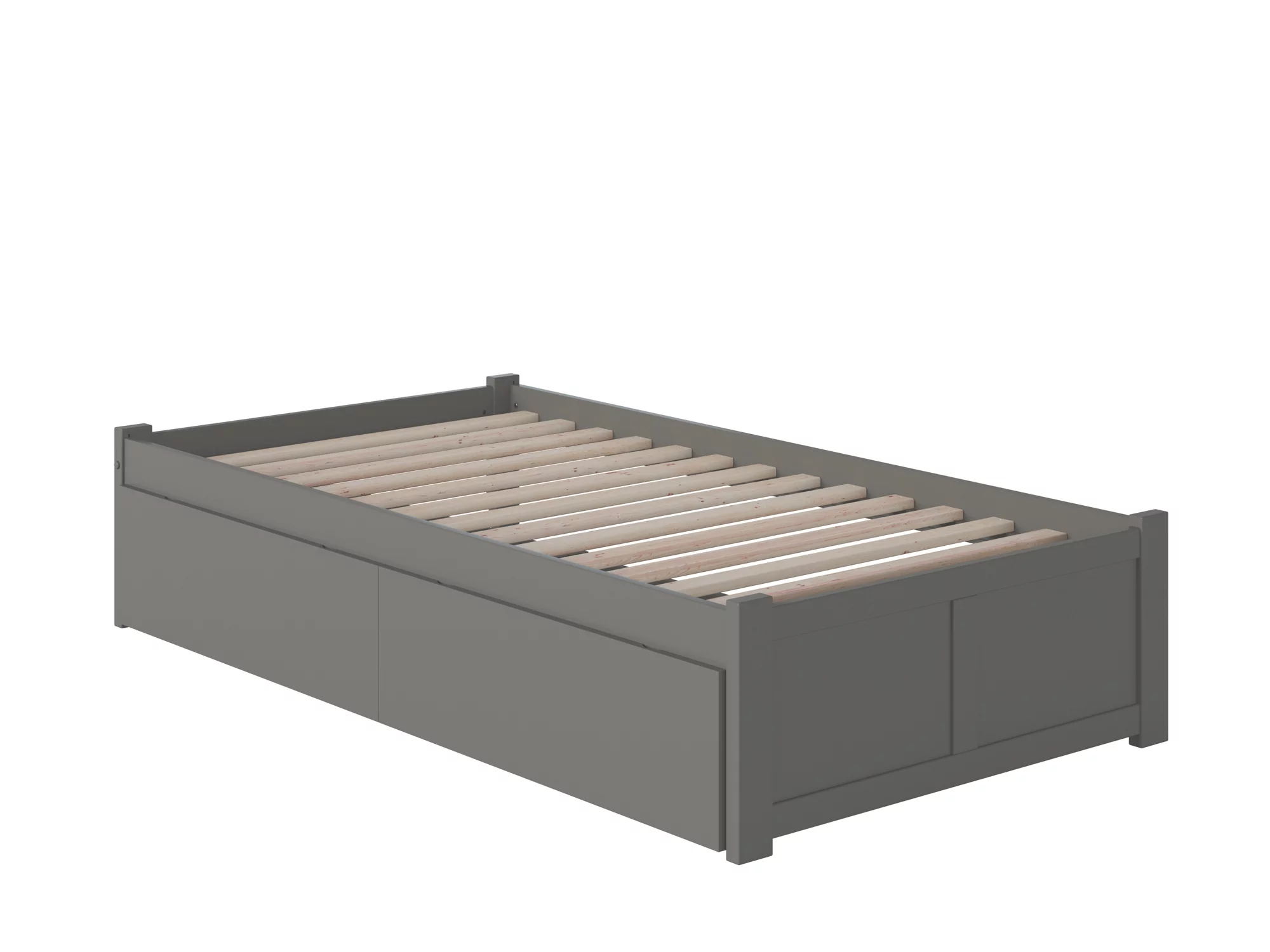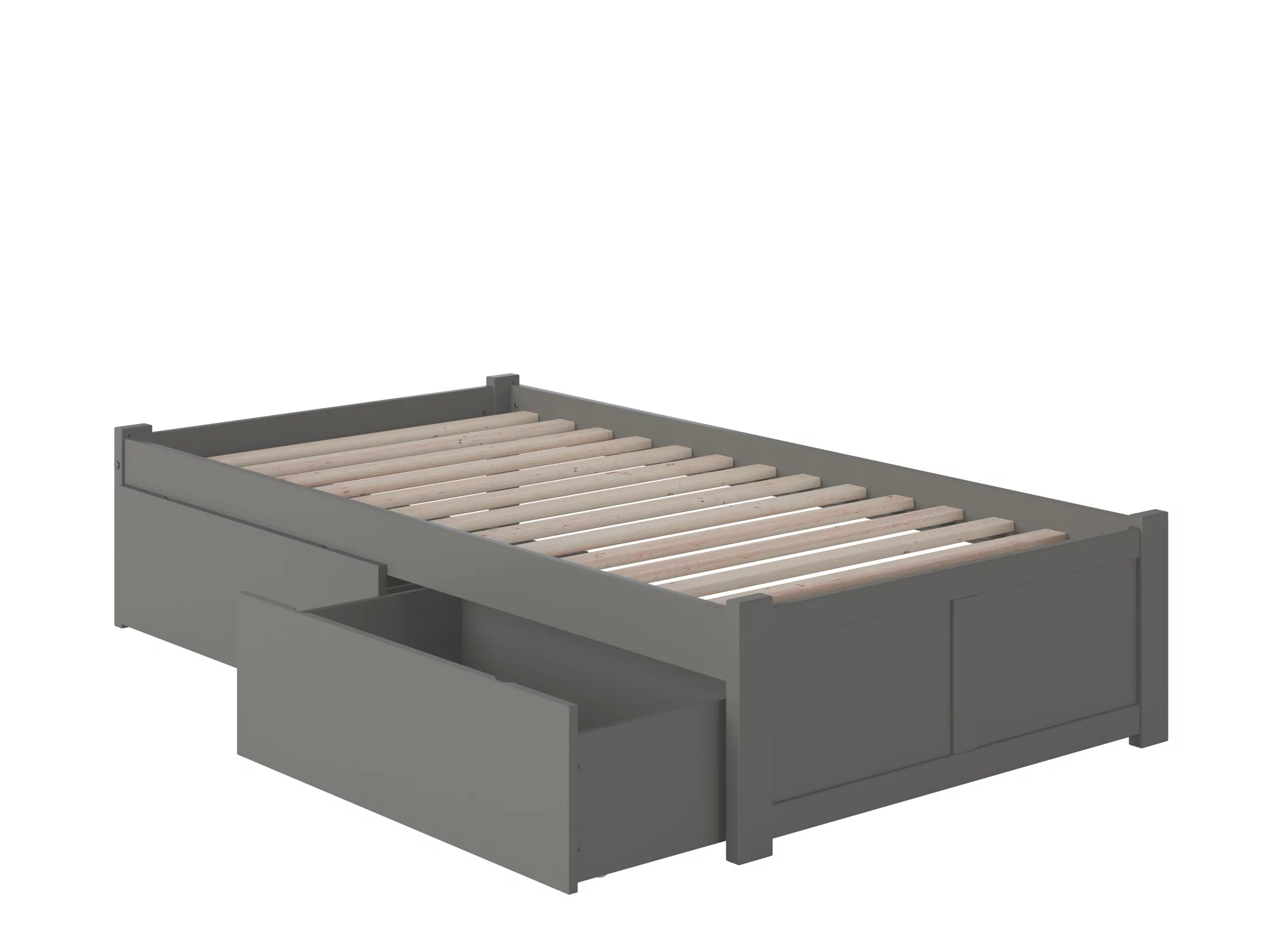 AFI Concord Twin Solid Wood Platform Bed with Footboard & 2 Storage Drawers in Grey