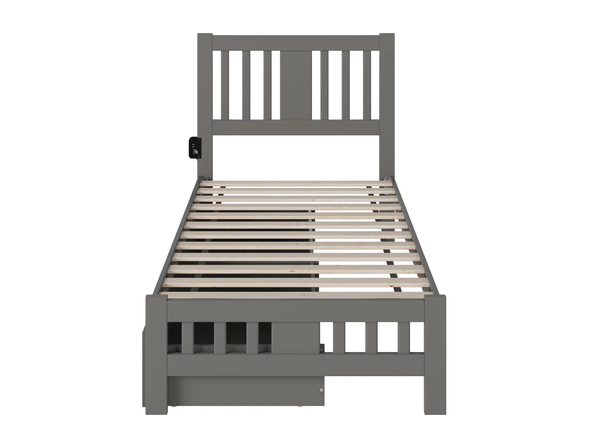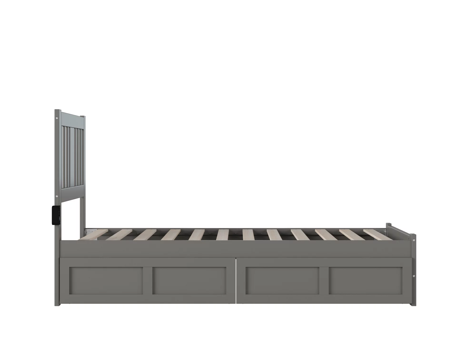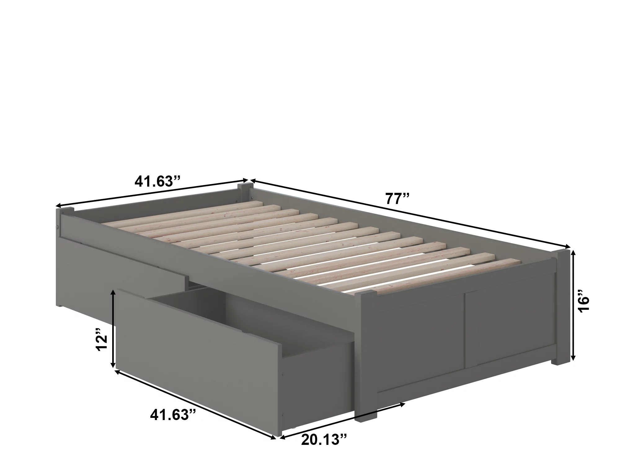 AFI Concord Twin Solid Wood Platform Bed with Footboard & 2 Storage Drawers in Grey