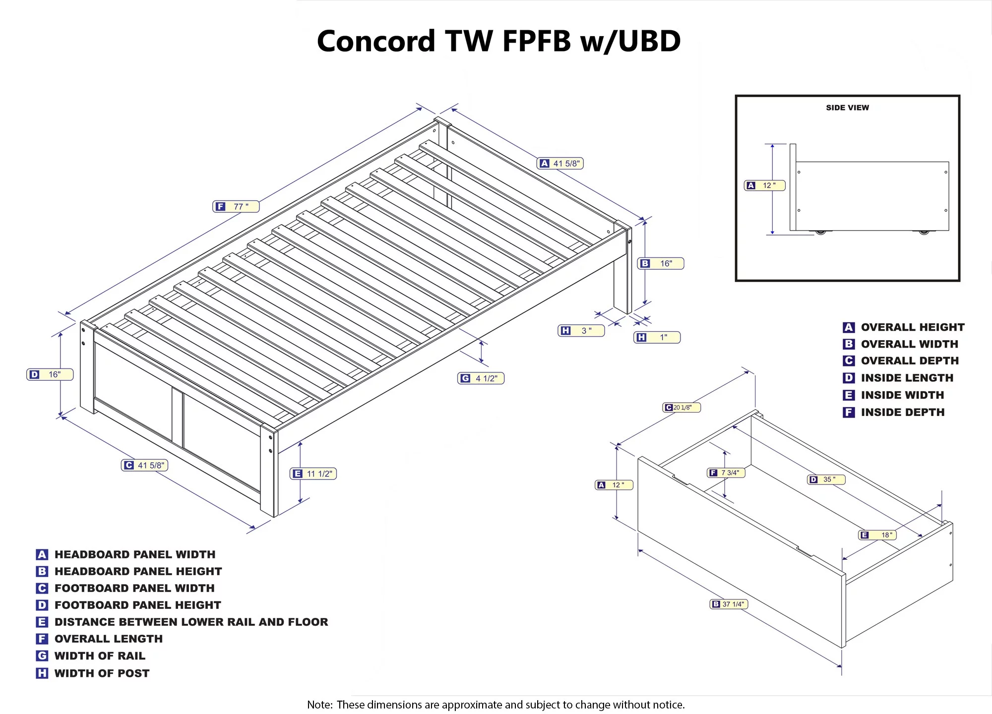 AFI Concord Twin Platform Bed with Footboard and 2 Drawers in Espresso
