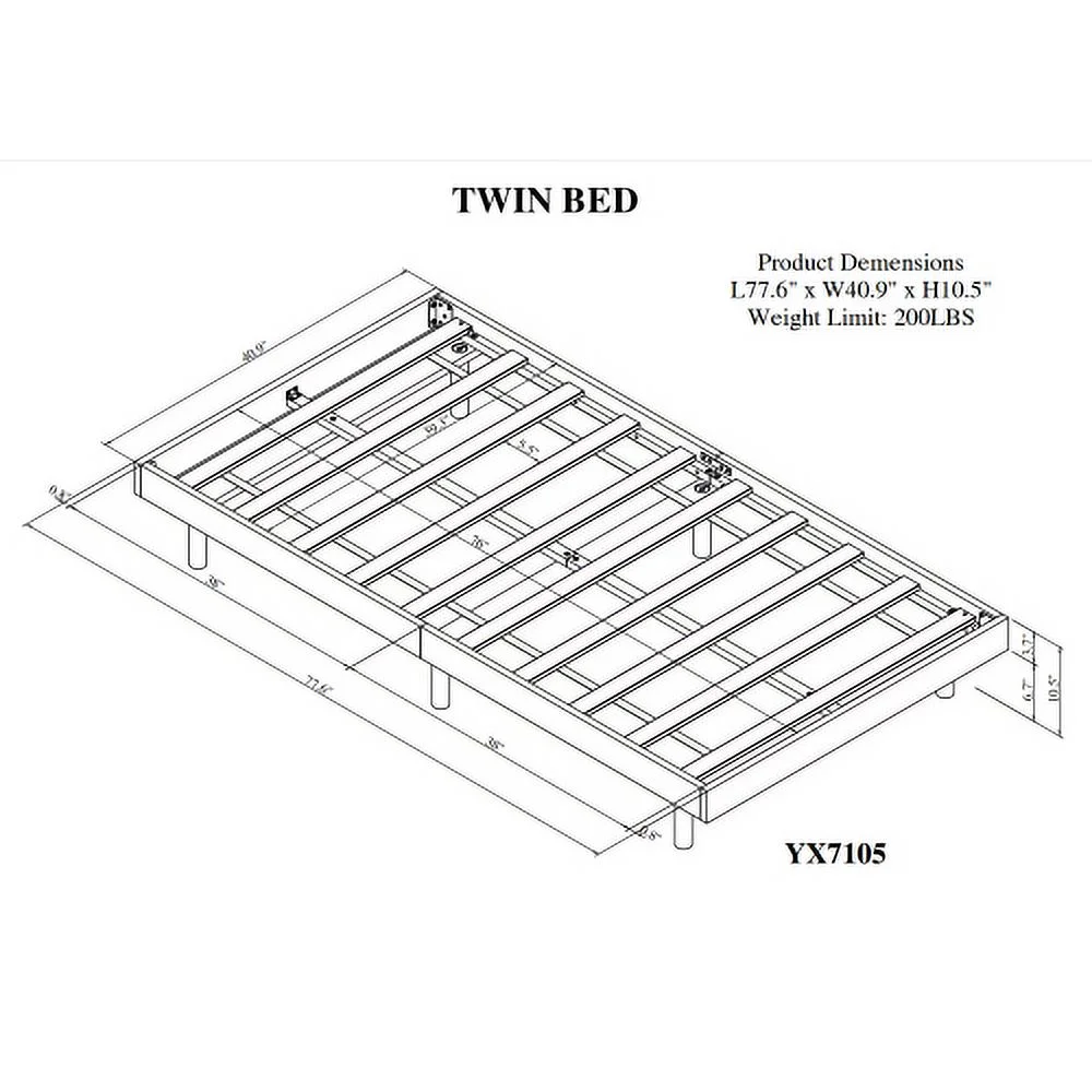 Modern Design Twin Size Floating Platform Bed Frame for White Washed Color