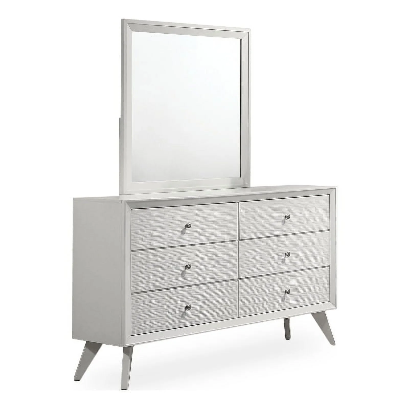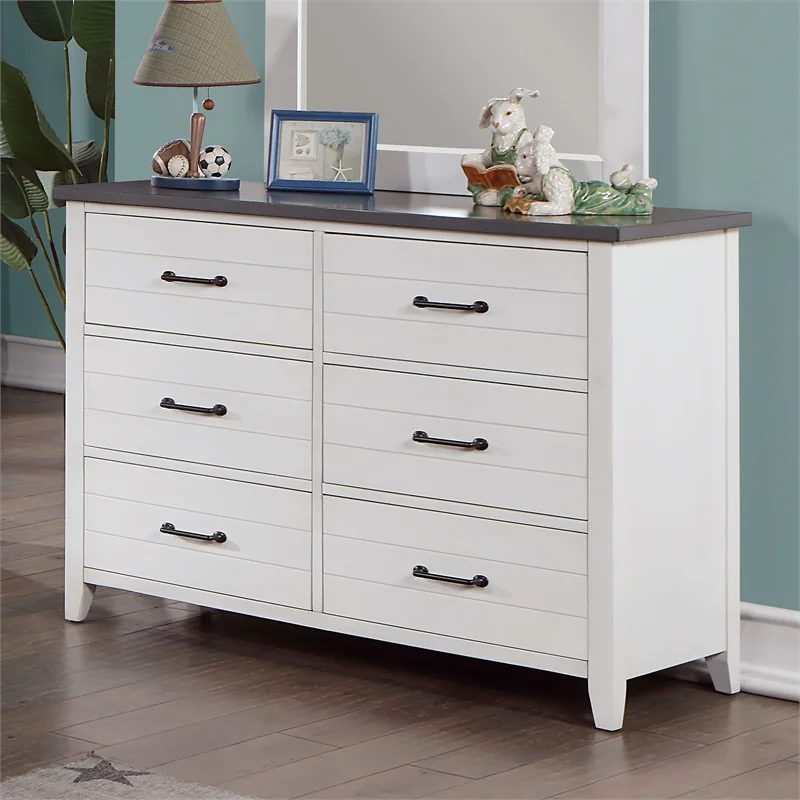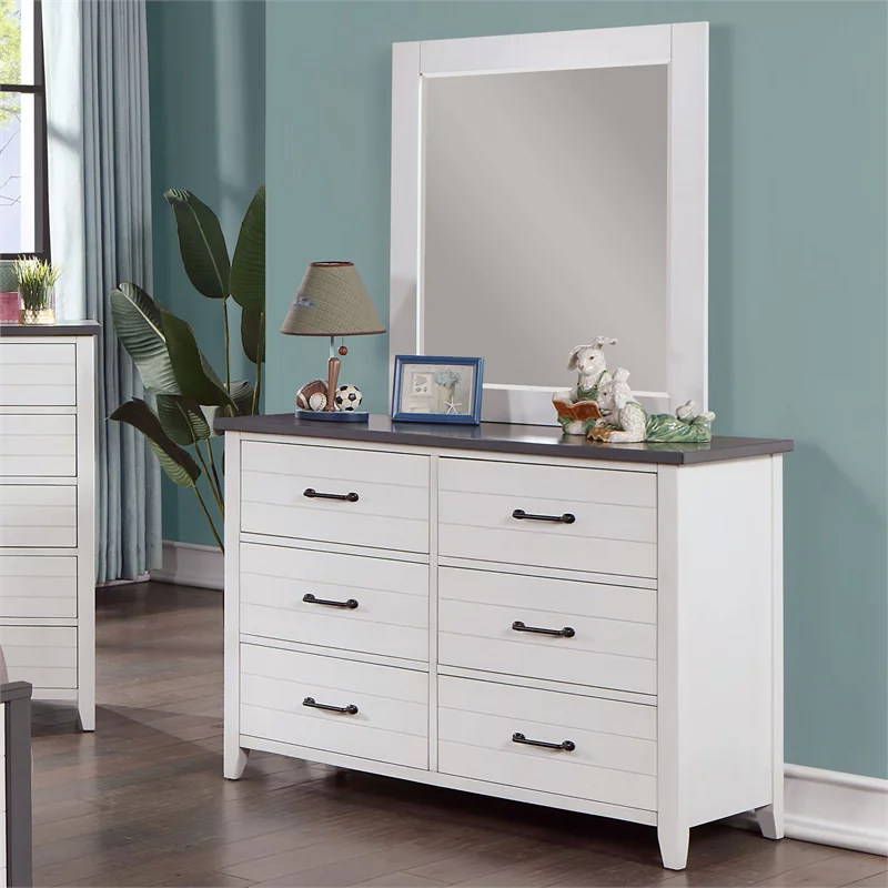 Furniture of America Acres Wood 6-Drawer Dresser with Mirror in White and Gray