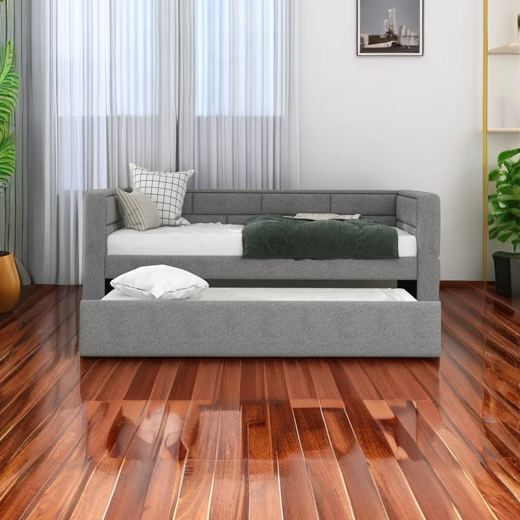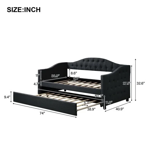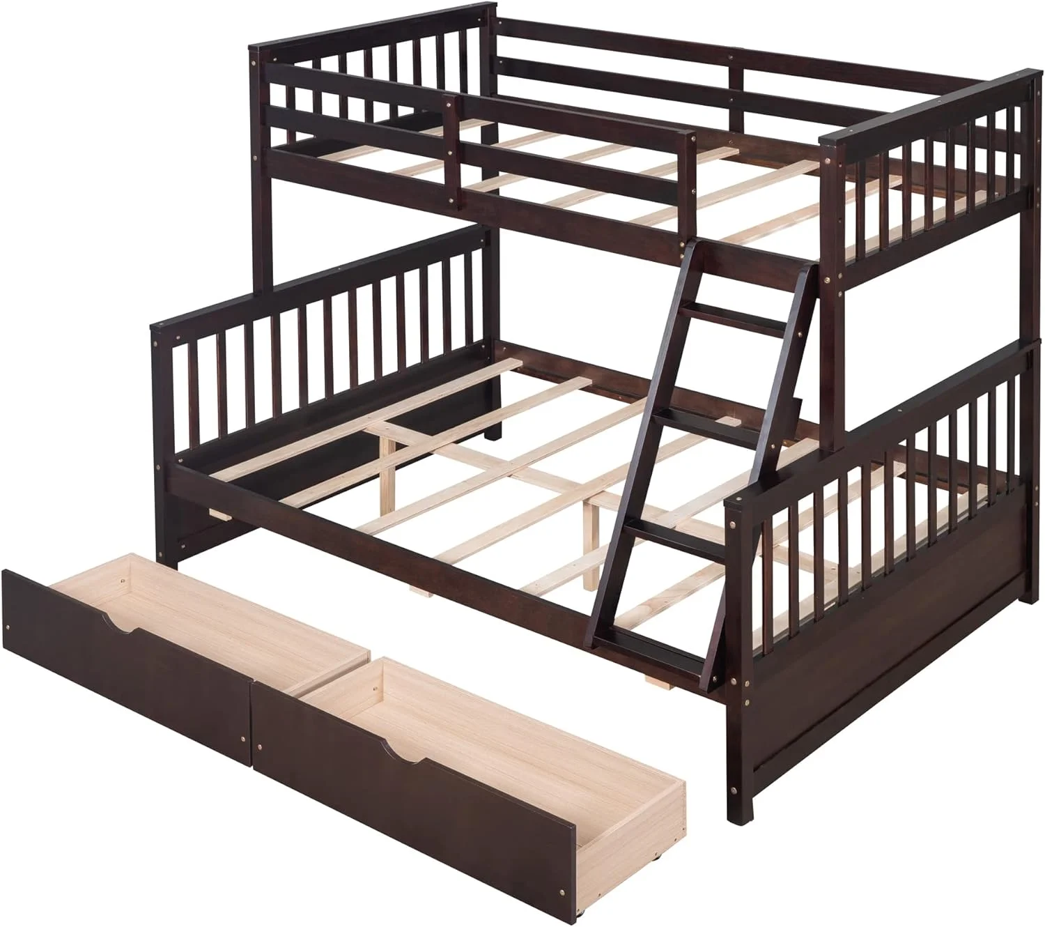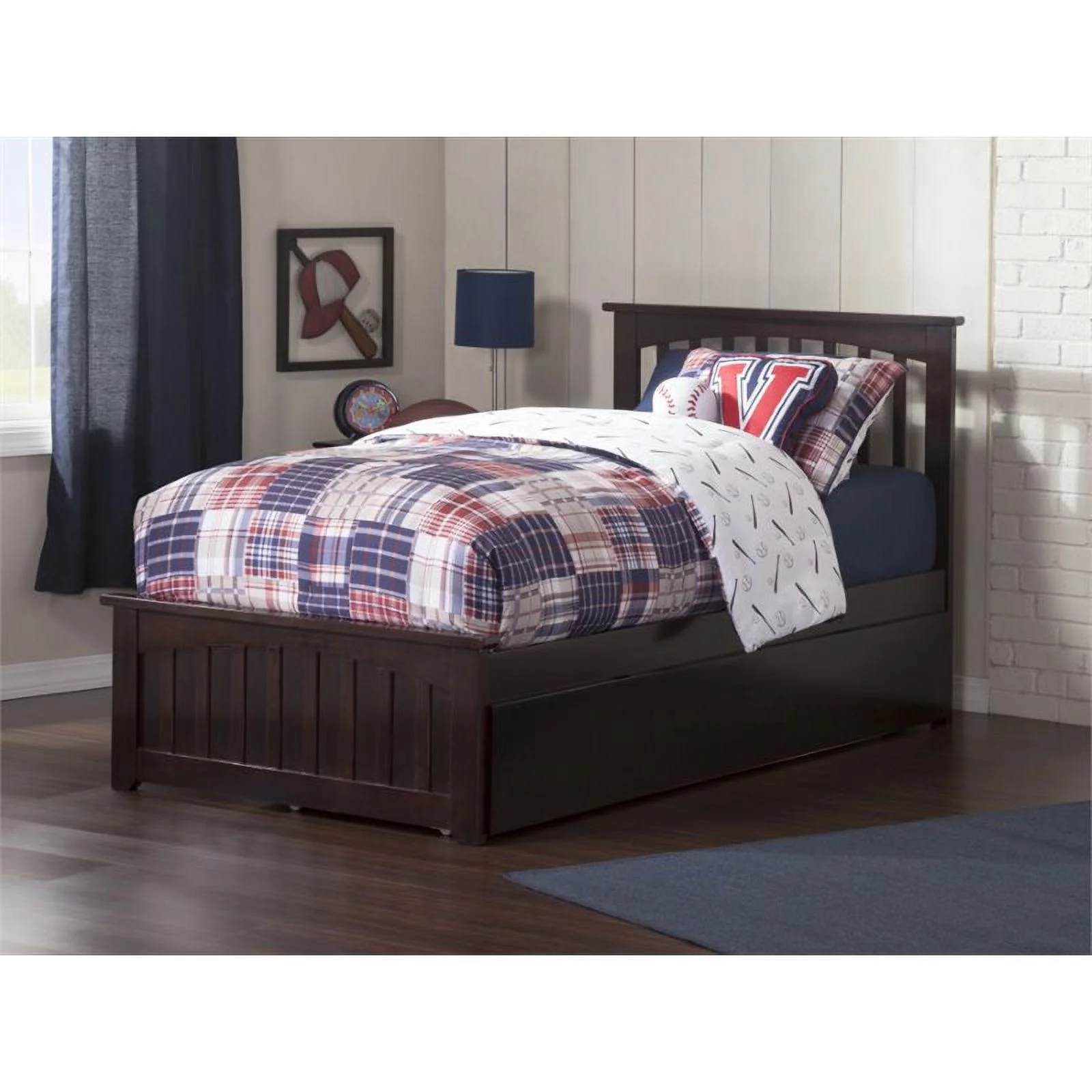 Pemberly Row Traditional Twin XL Platform Bed with Trundle in Espresso