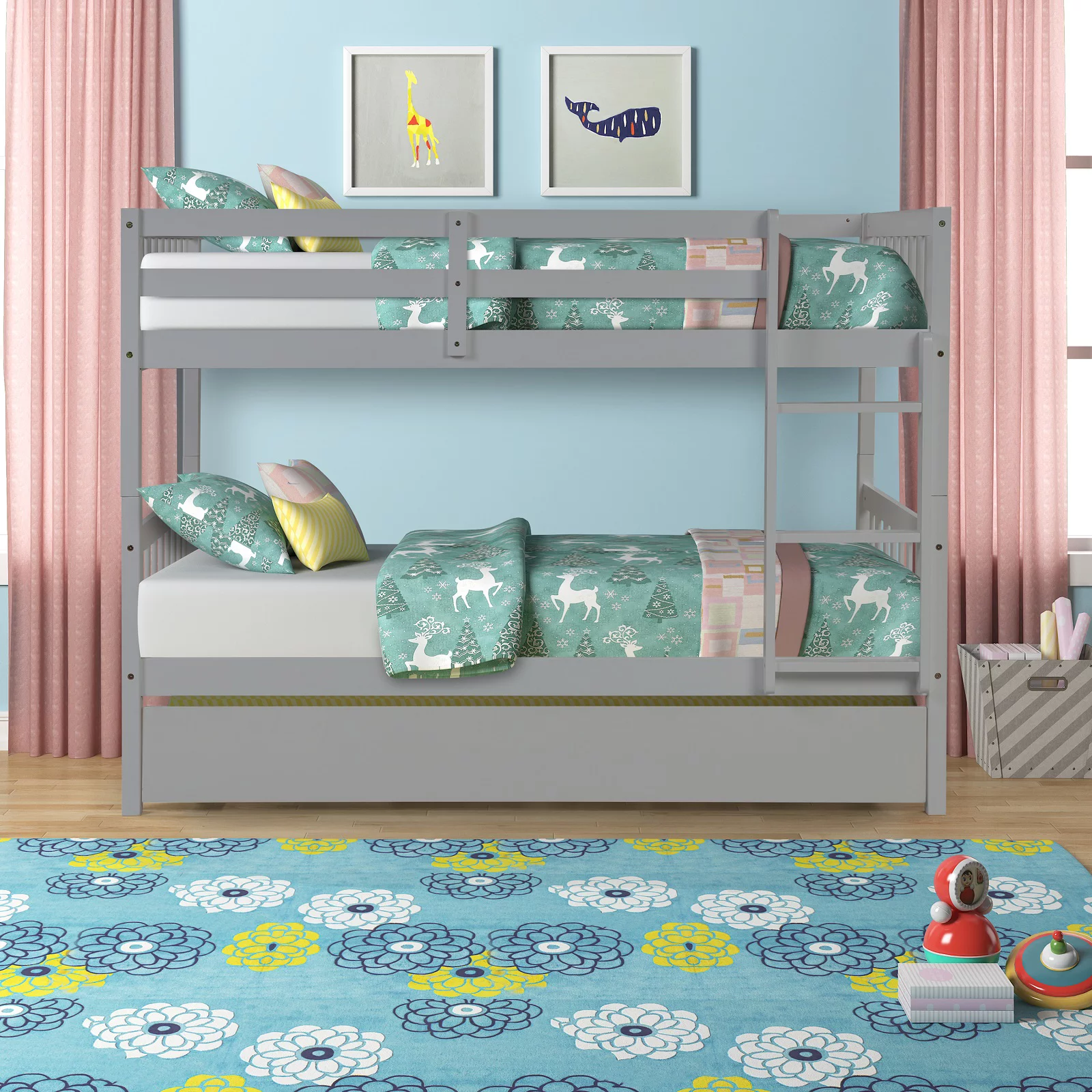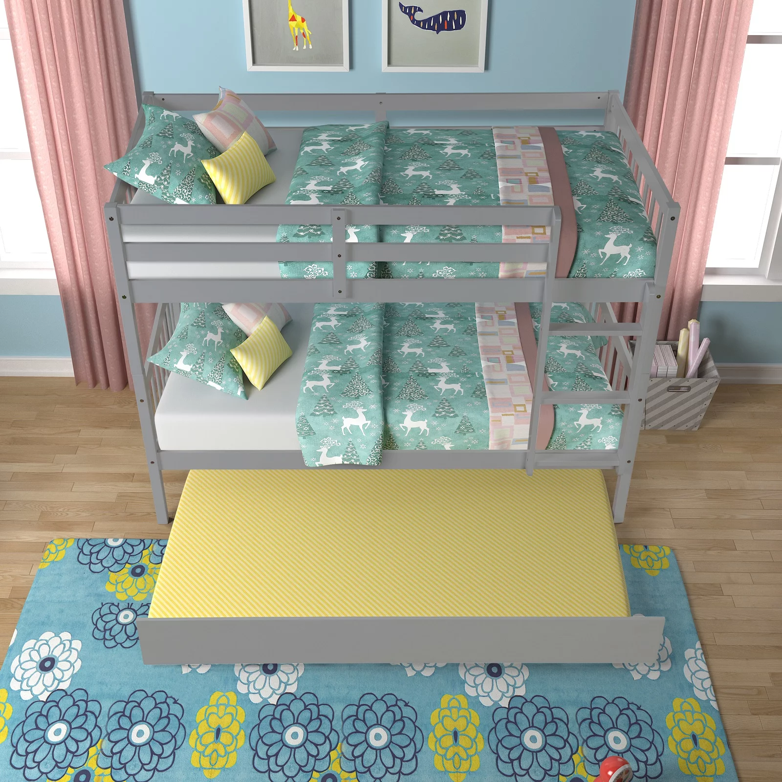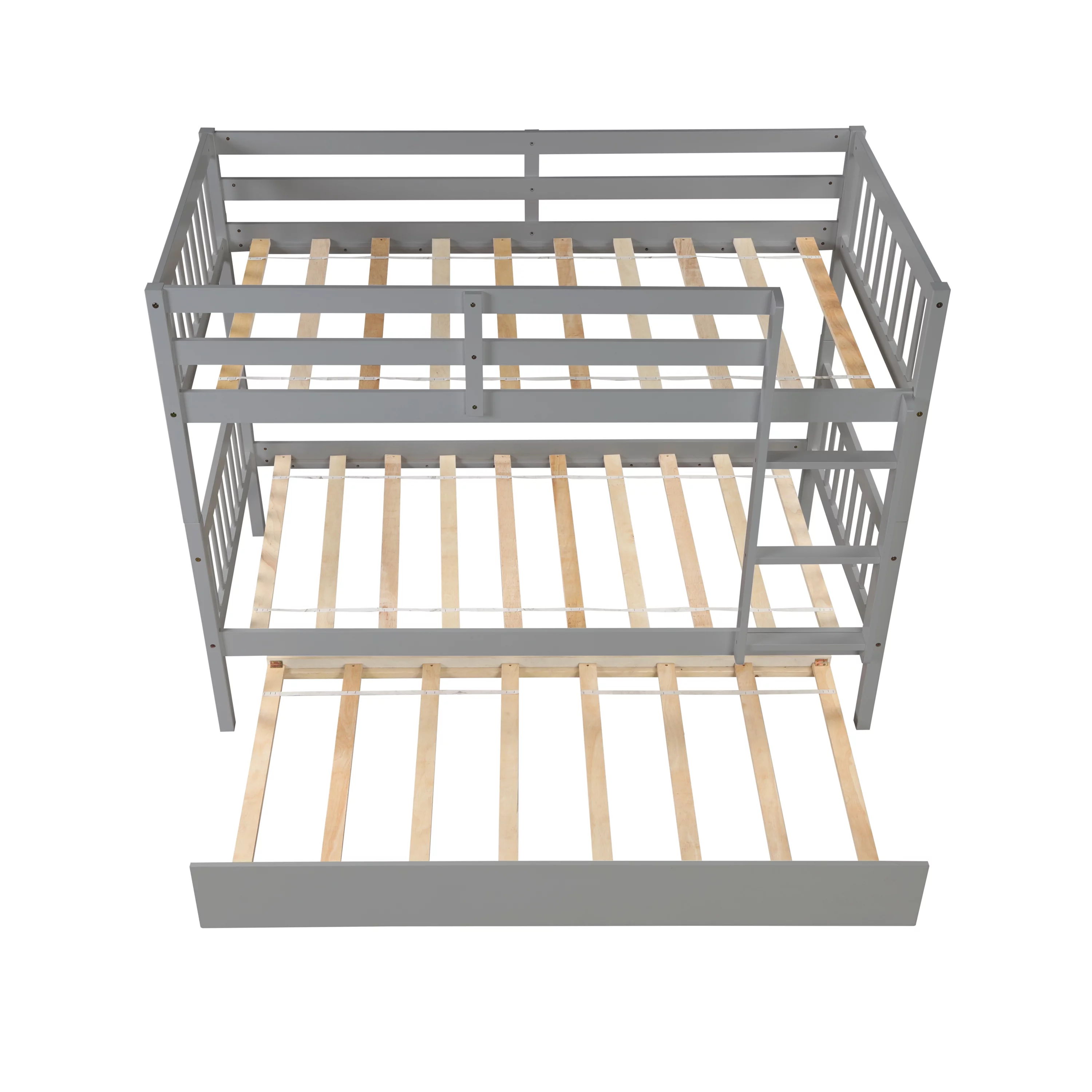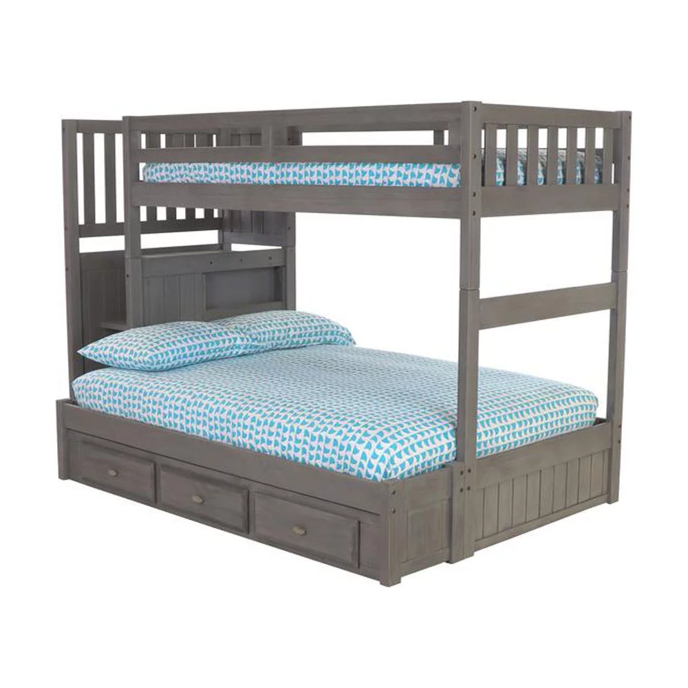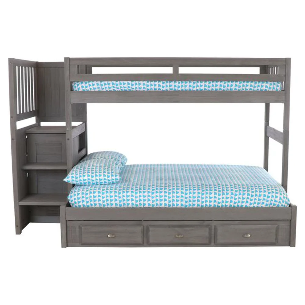 Solid Pine Staircase Twin over Twin Bunk Bed/Chest/Twin Trundle in Charcoal Gray