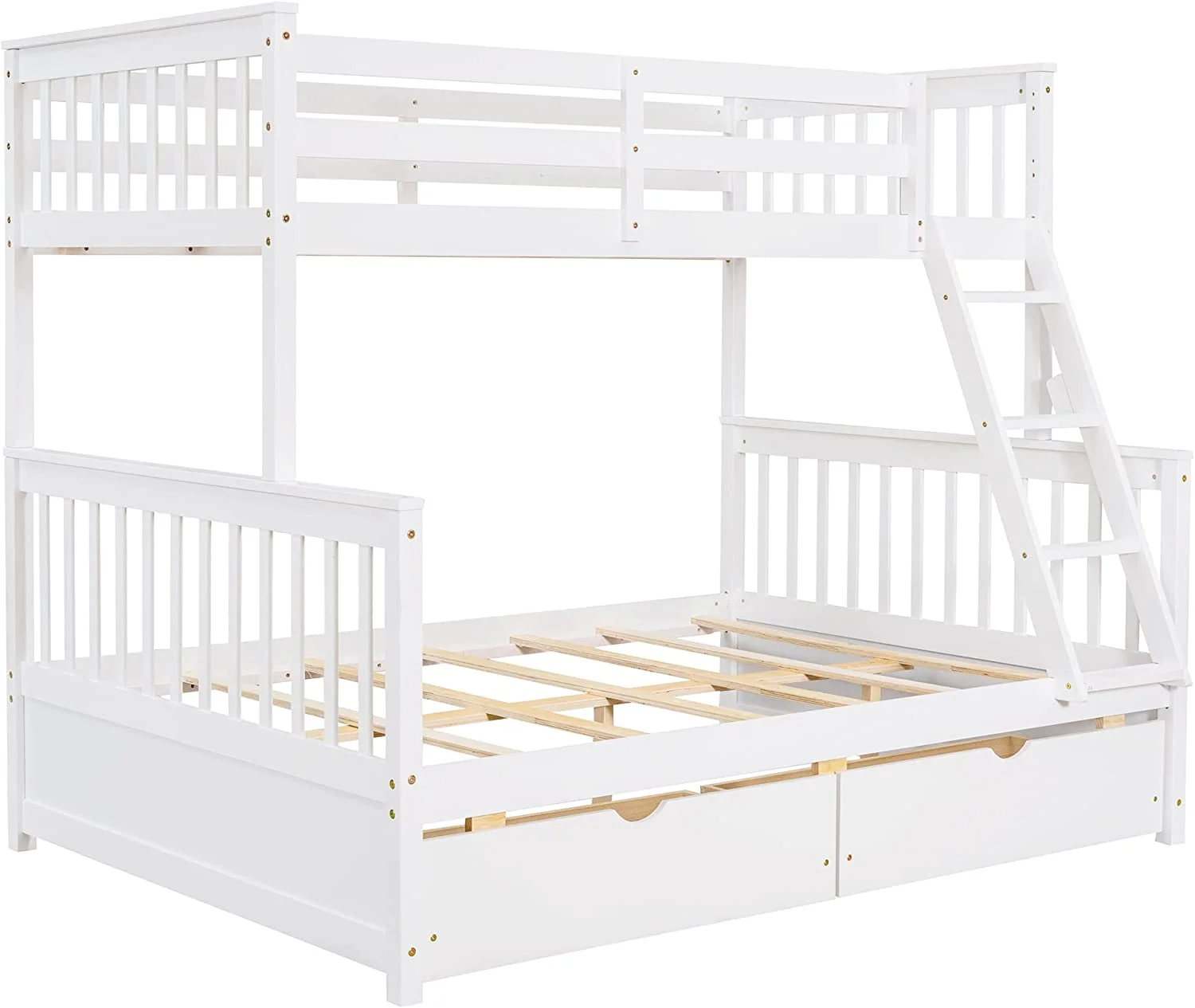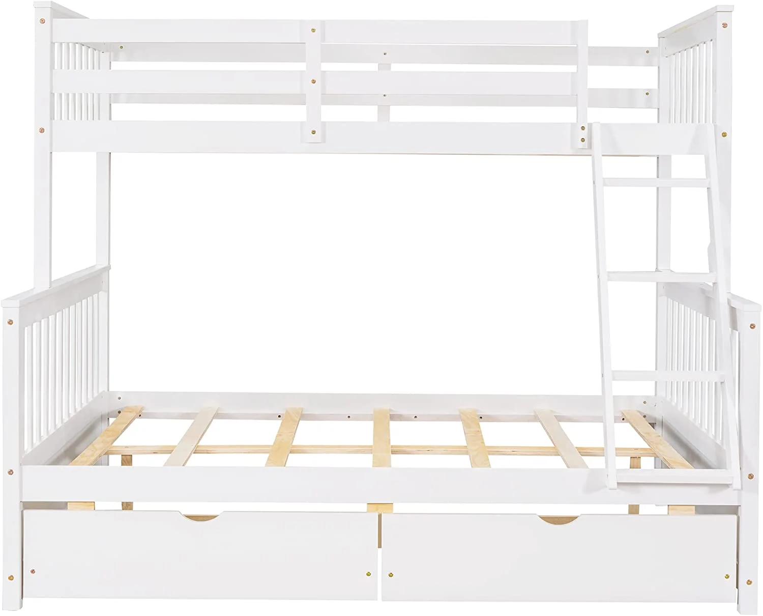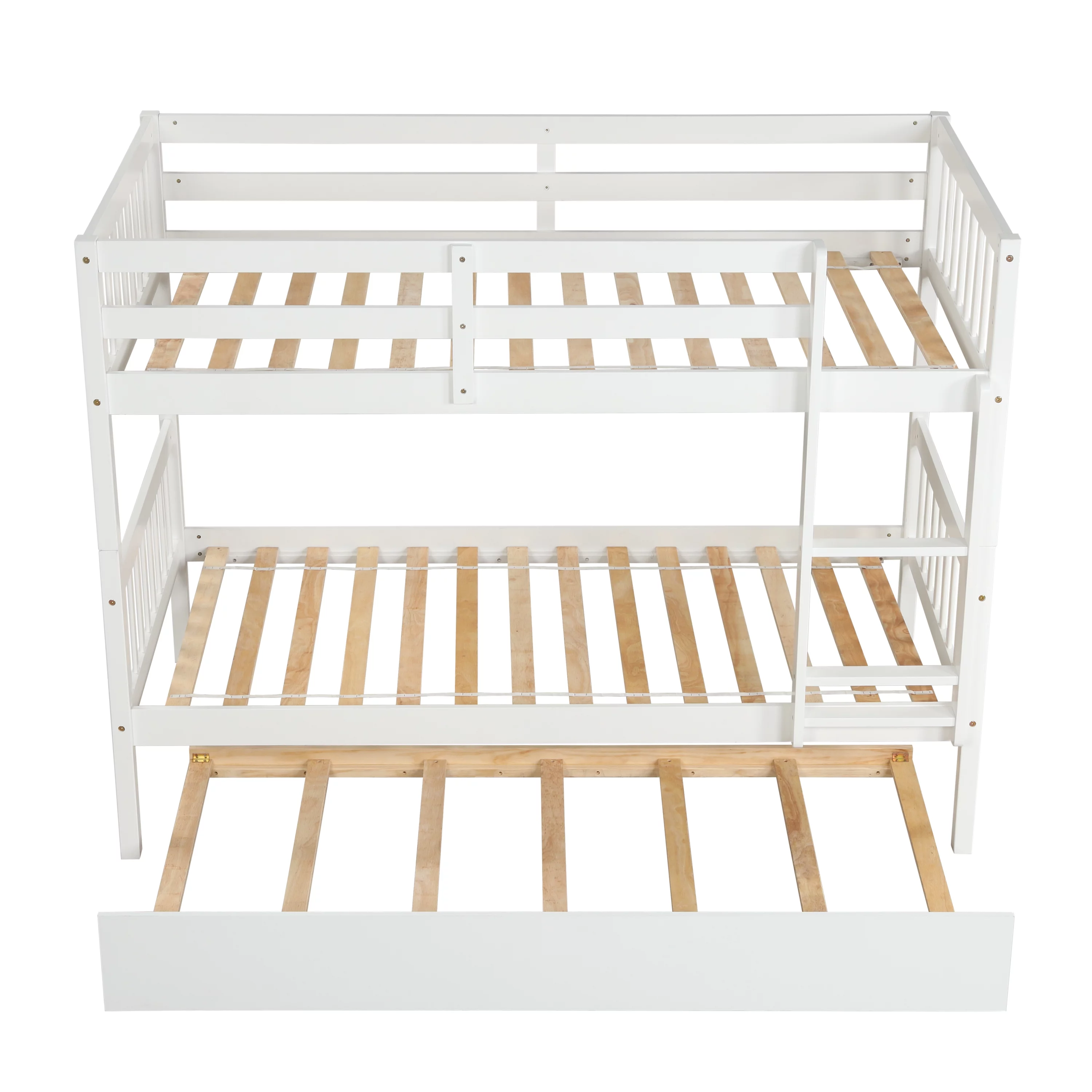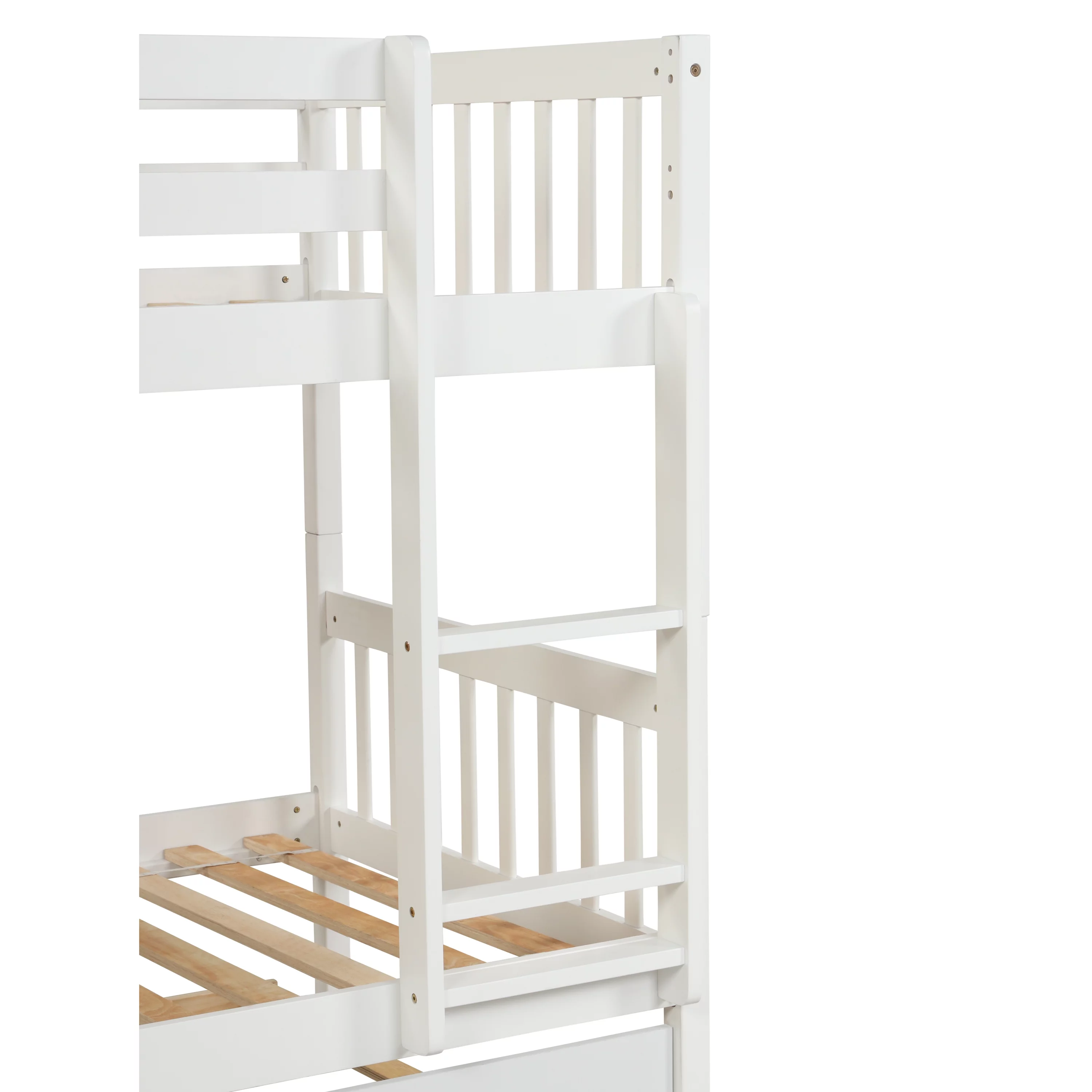 BenJara Asin Twin Bunk Bed with Front Facing Ladder, Solid Pine Wood, White Finish