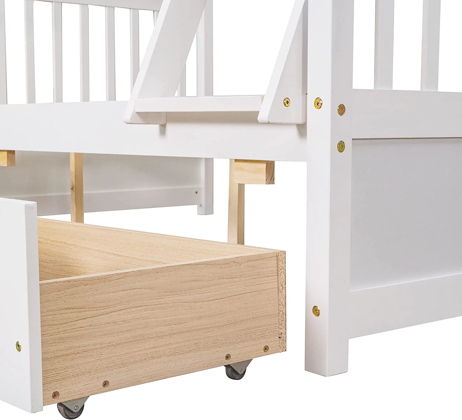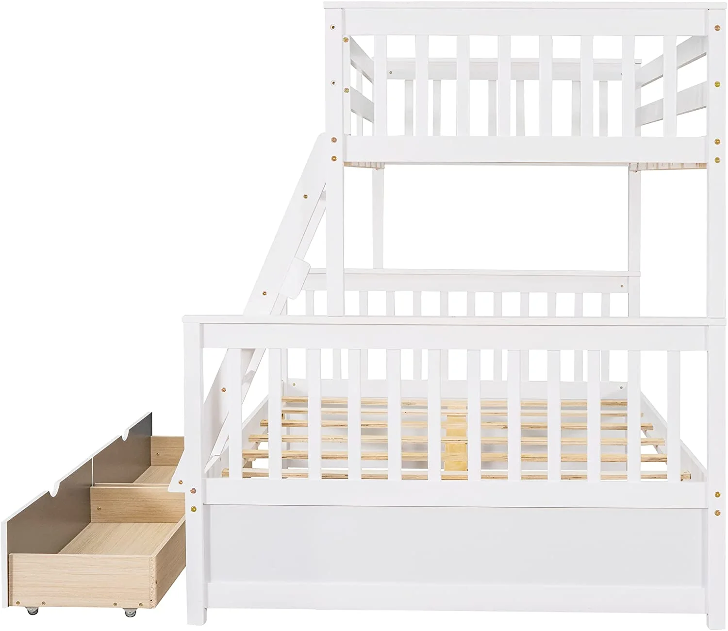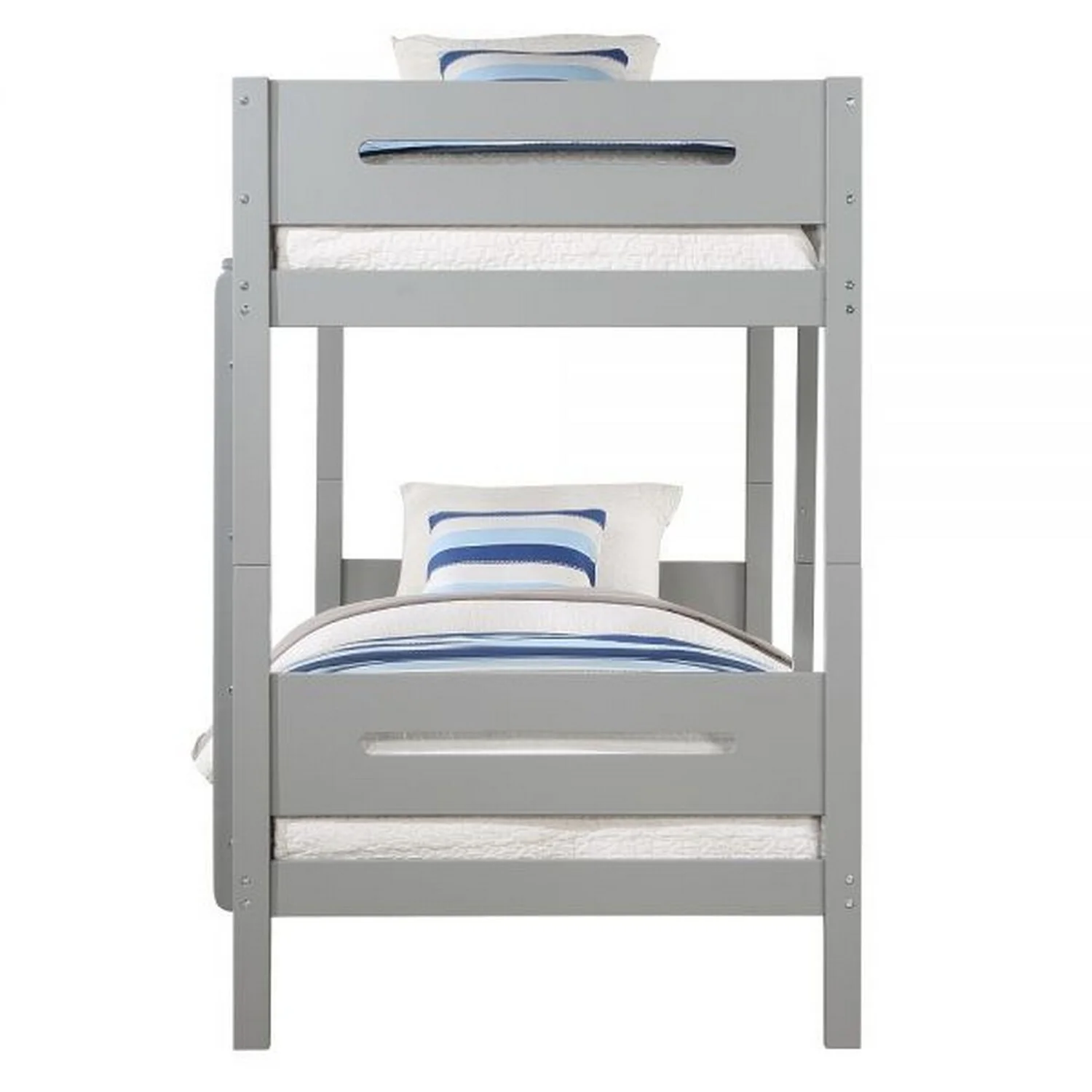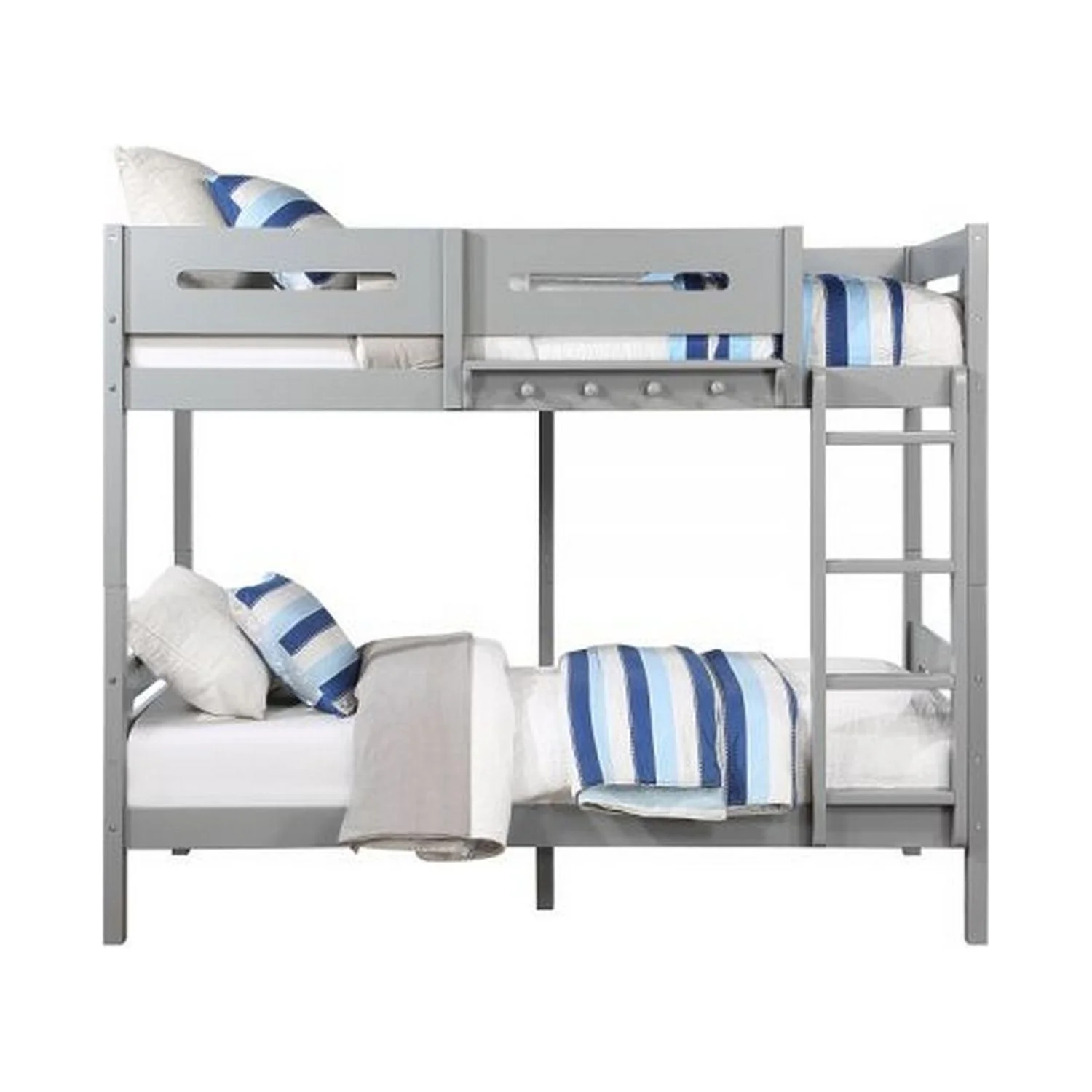 BenJara Asin Twin Bunk Bed with Front Facing Ladder, Solid Pine Wood, White Finish