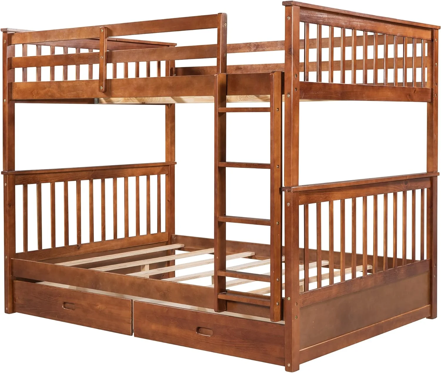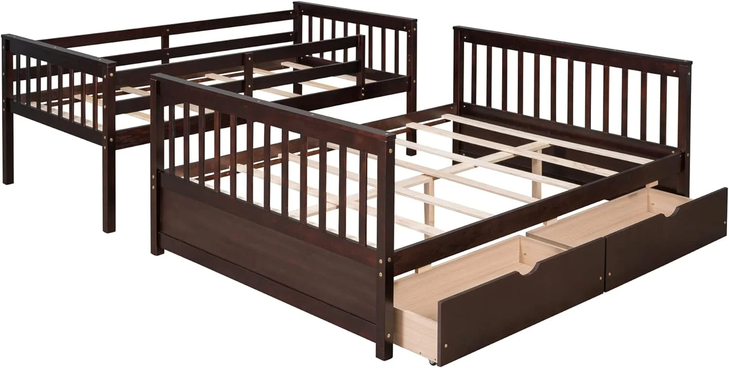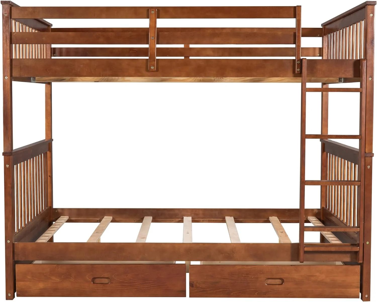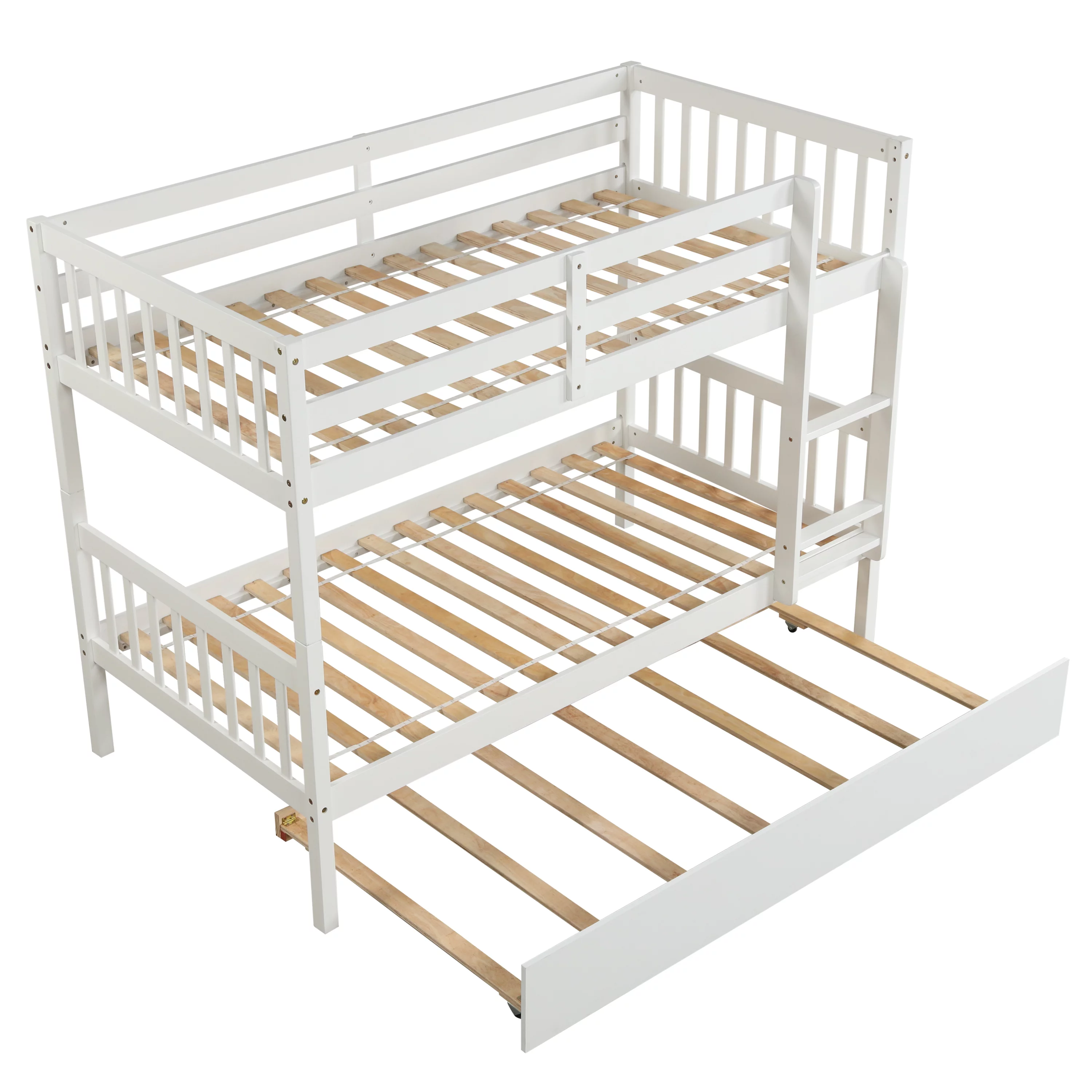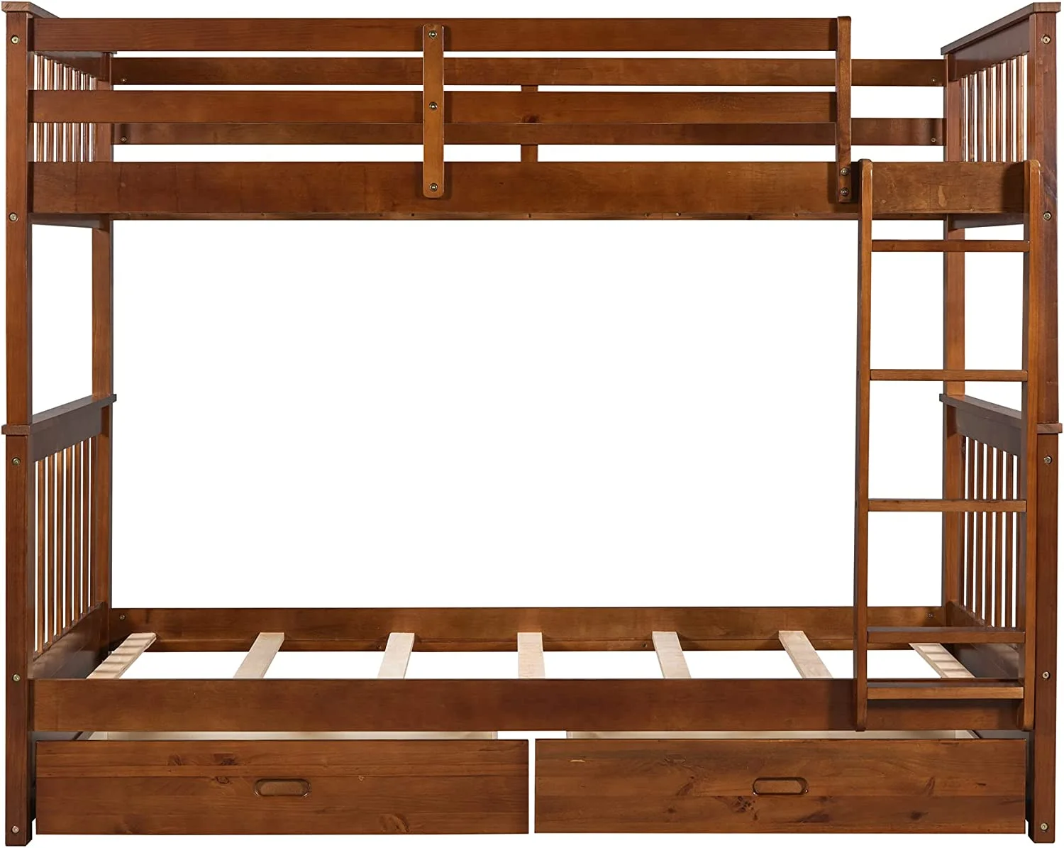 Bunk Beds Twin Over Twin Size with Safety Guardrail, Pine Wood Frame, Solid Wood Bunk Bed with Trundle for Kids and Toddler