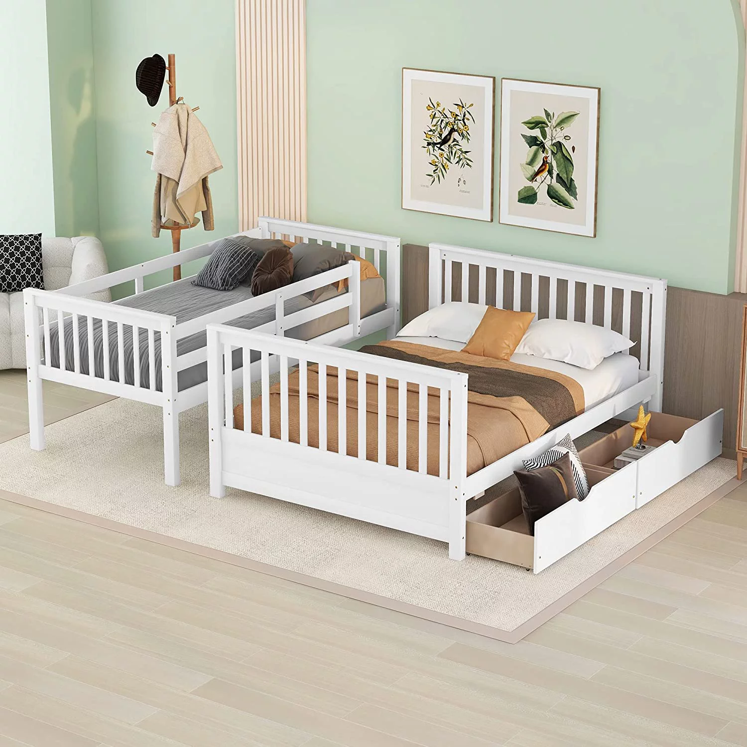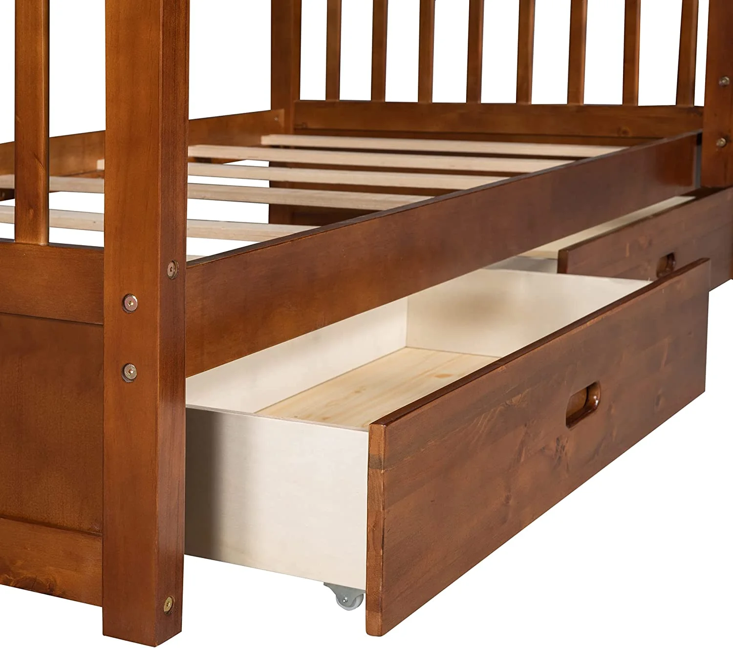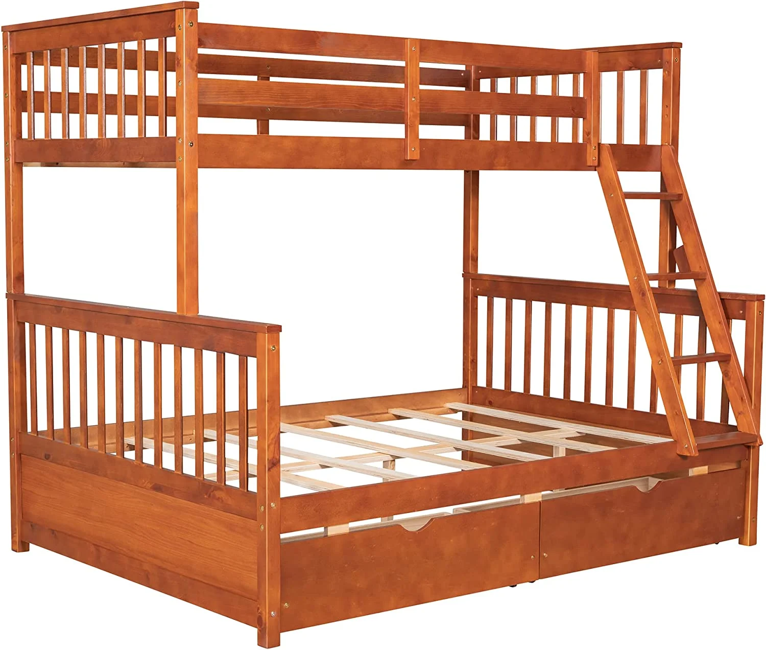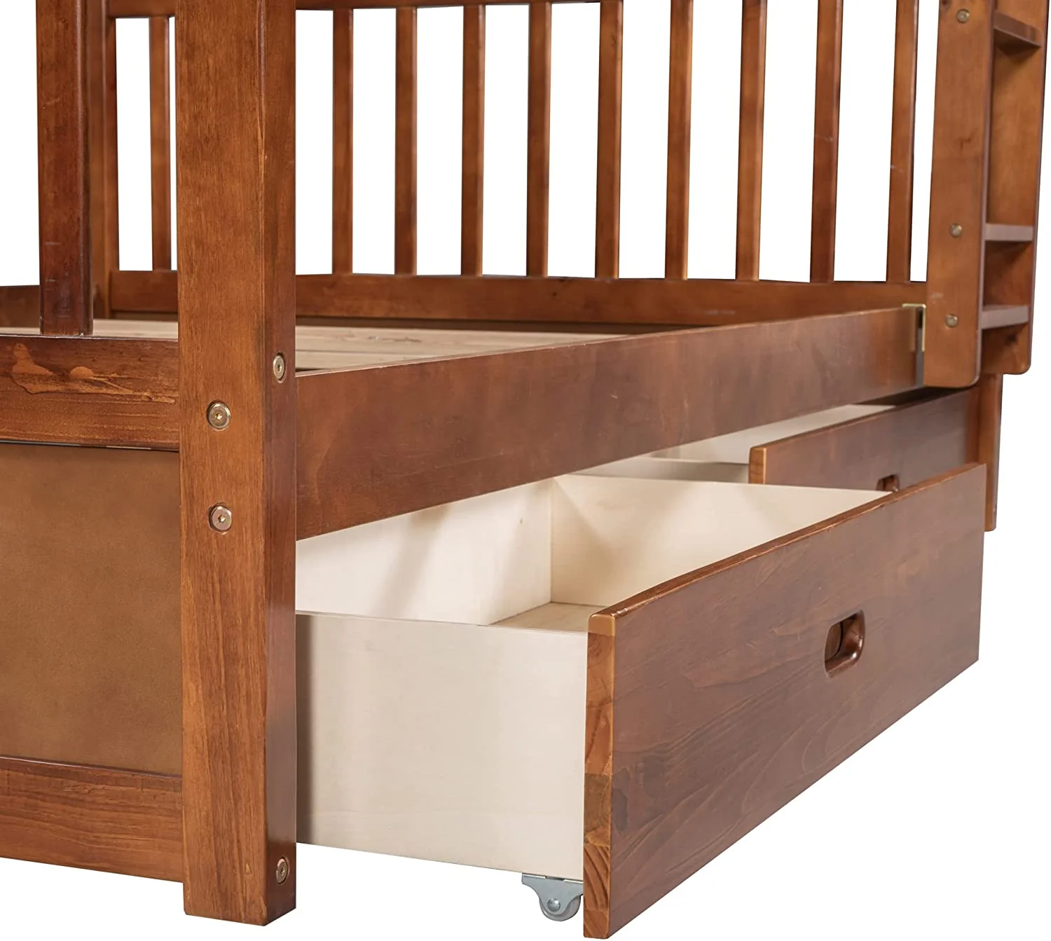 Bunk Beds Twin Over Twin Size with Safety Guardrail, Pine Wood Frame, Solid Wood Bunk Bed with Trundle for Kids and Toddler