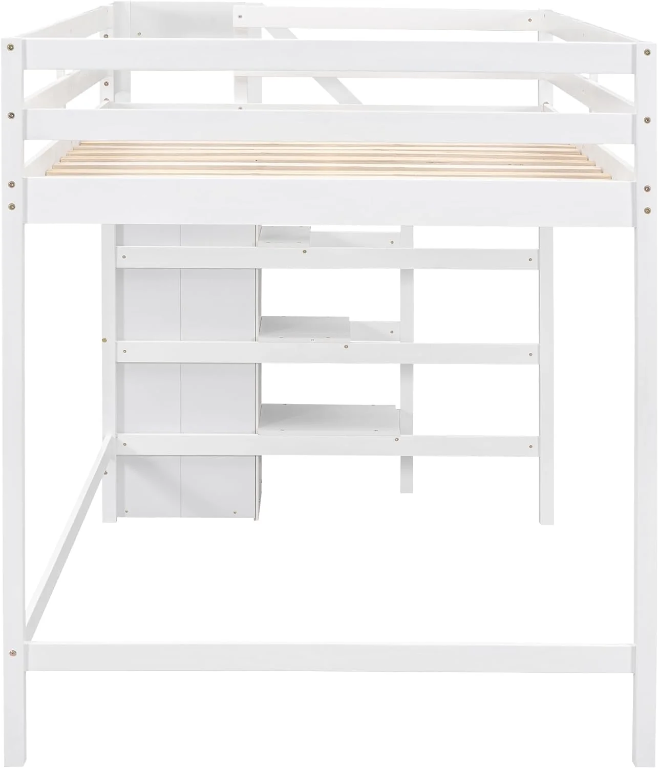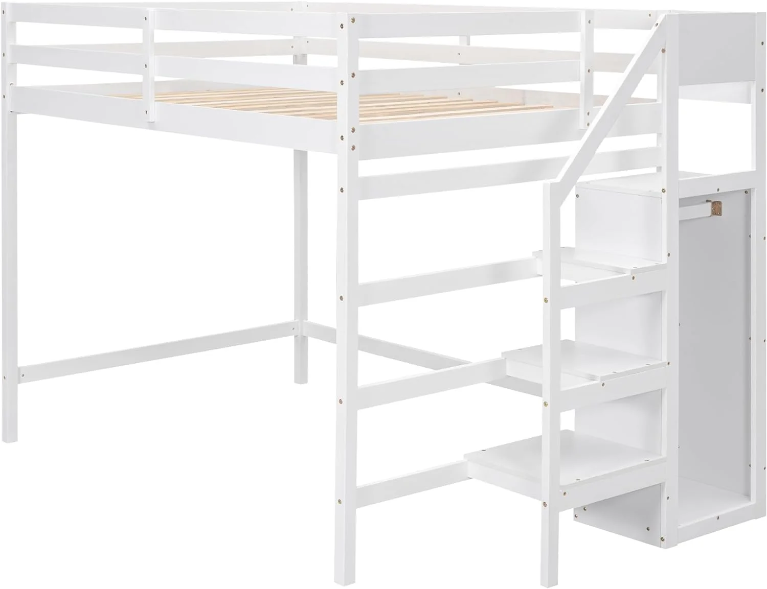 Full Size Loft Bed With Wardrobe And Staircase, Wooden Full Loft Bed Frame, High Loft Bed For Kids Teens Adults, White