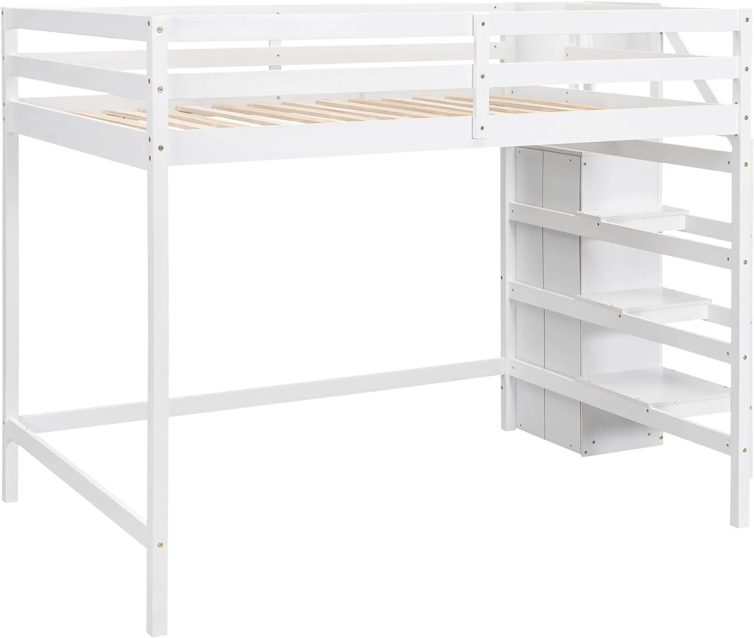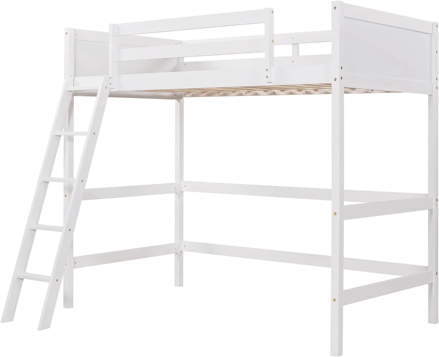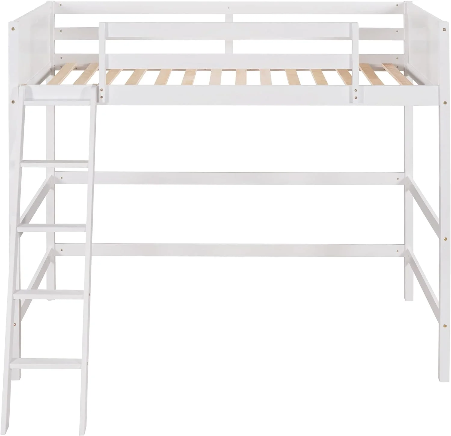 Size Loft Bed With Ladder, Wooden Loft Bed Size With Guardrails For Kids Teens Adults, No Box Spring Needed, White