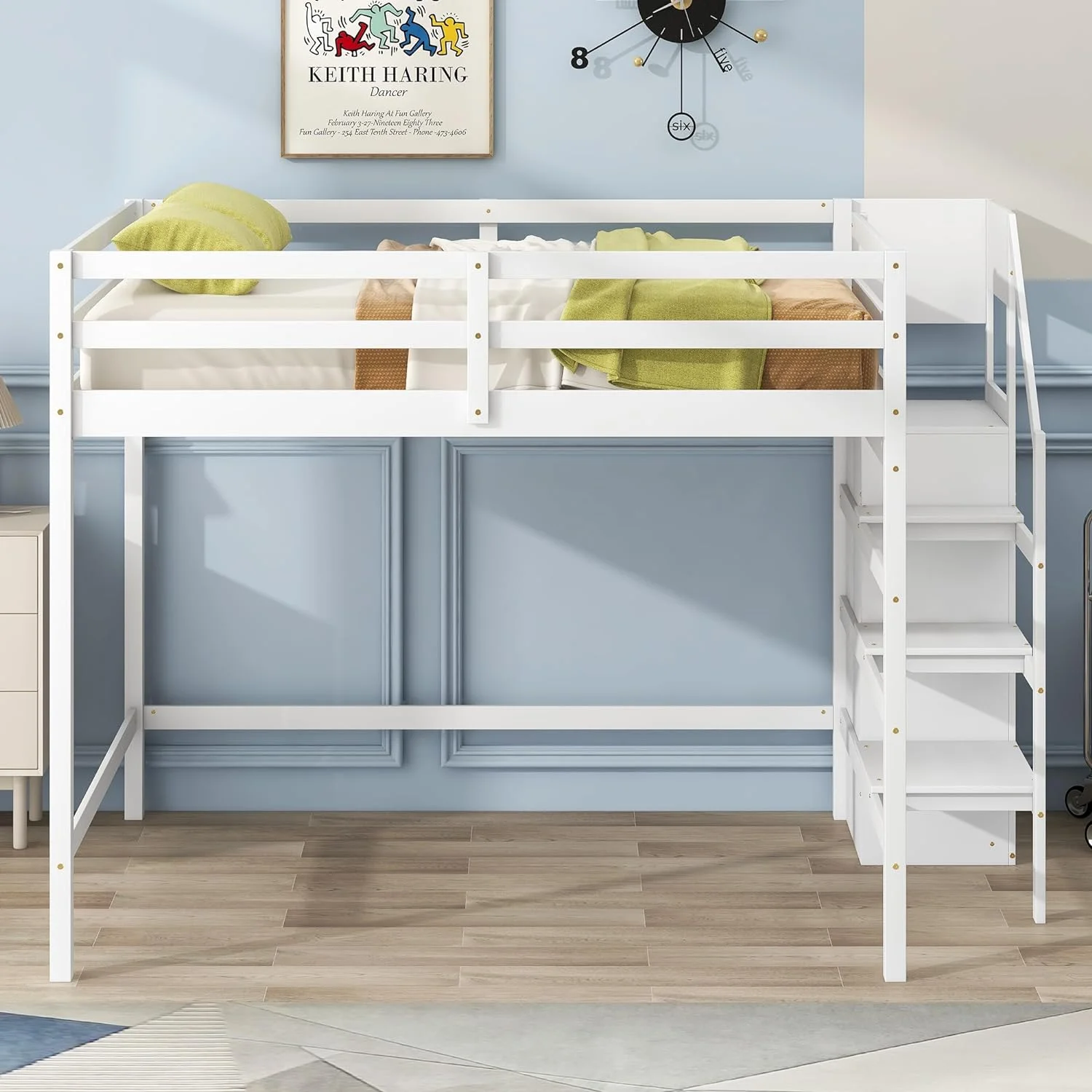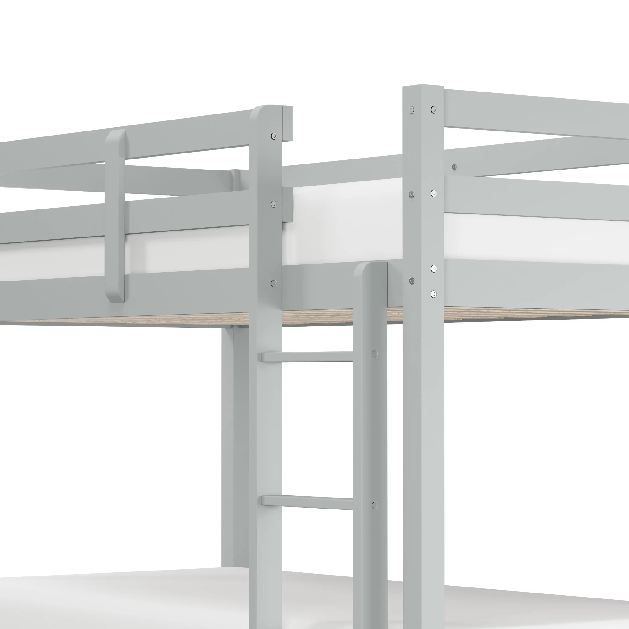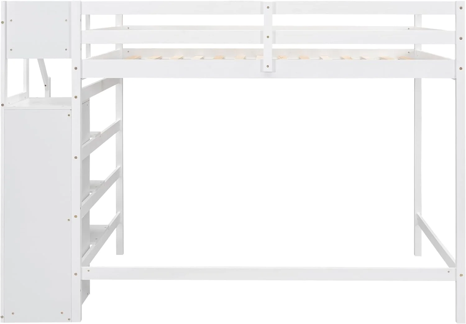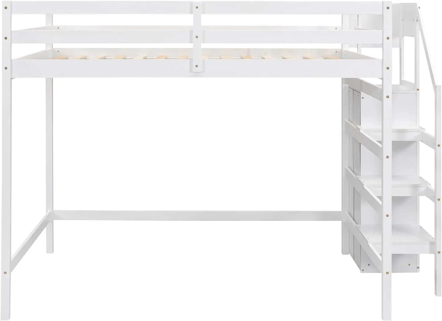 Size Loft Bed With Ladder, Wooden Loft Bed Size With Guardrails For Kids Teens Adults, No Box Spring Needed, White