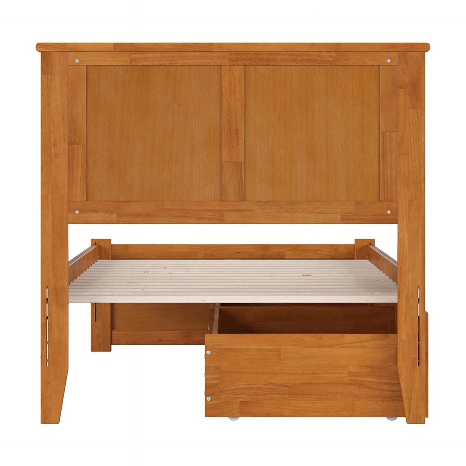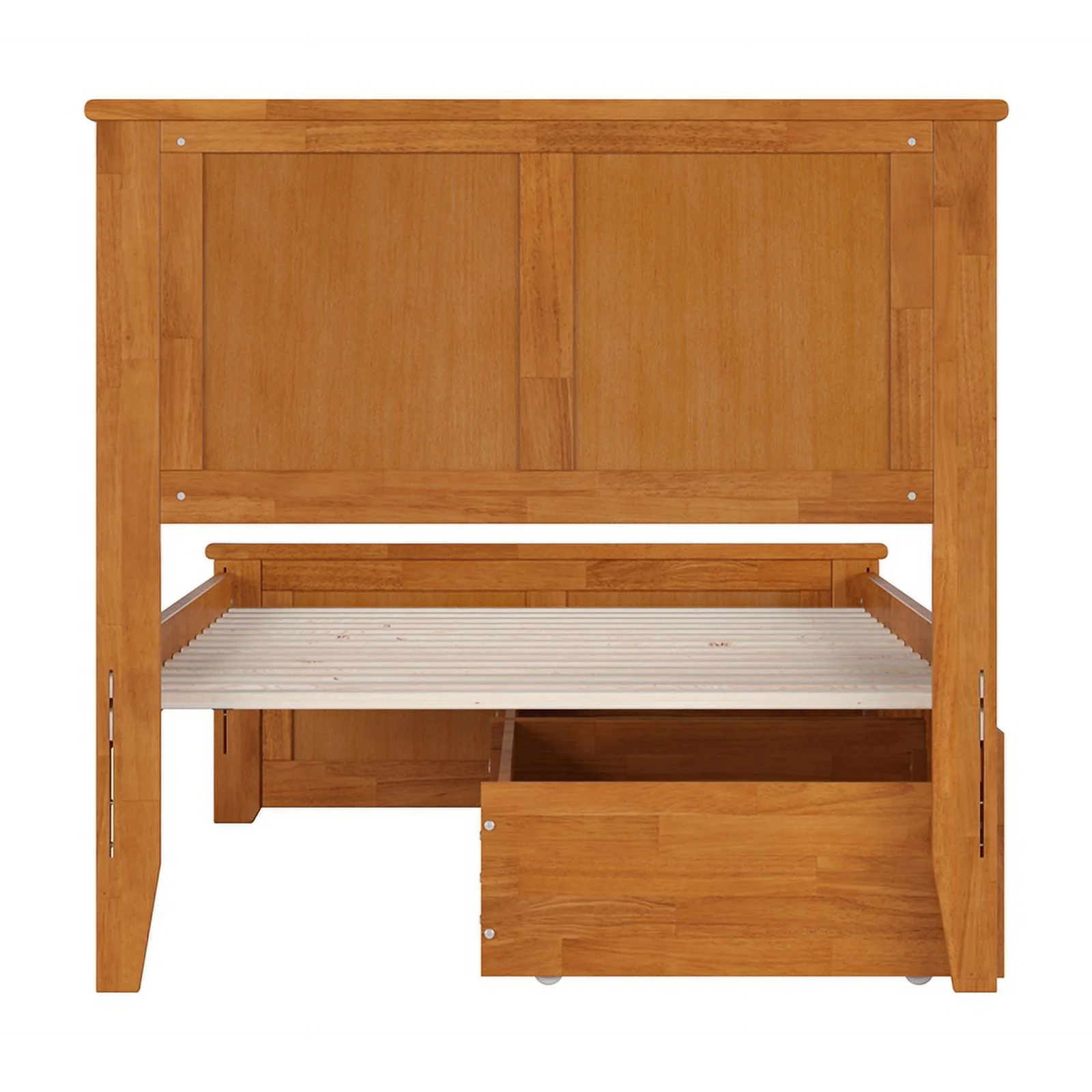 Madison Twin XL Wood Platform Bed with Footboard and Drawers in Light Toffee