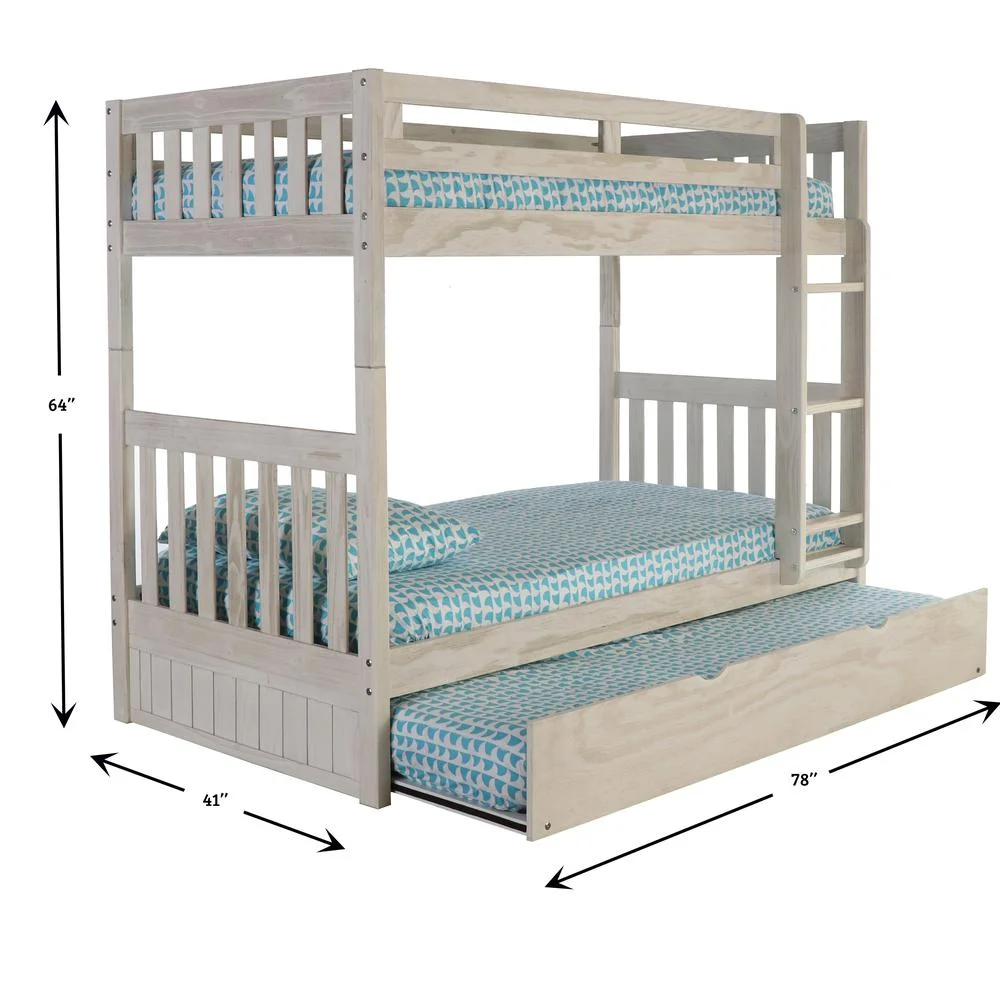 American Furniture Classics Solid Pine Twin/Twin Bunk Bed with Twin Trundle