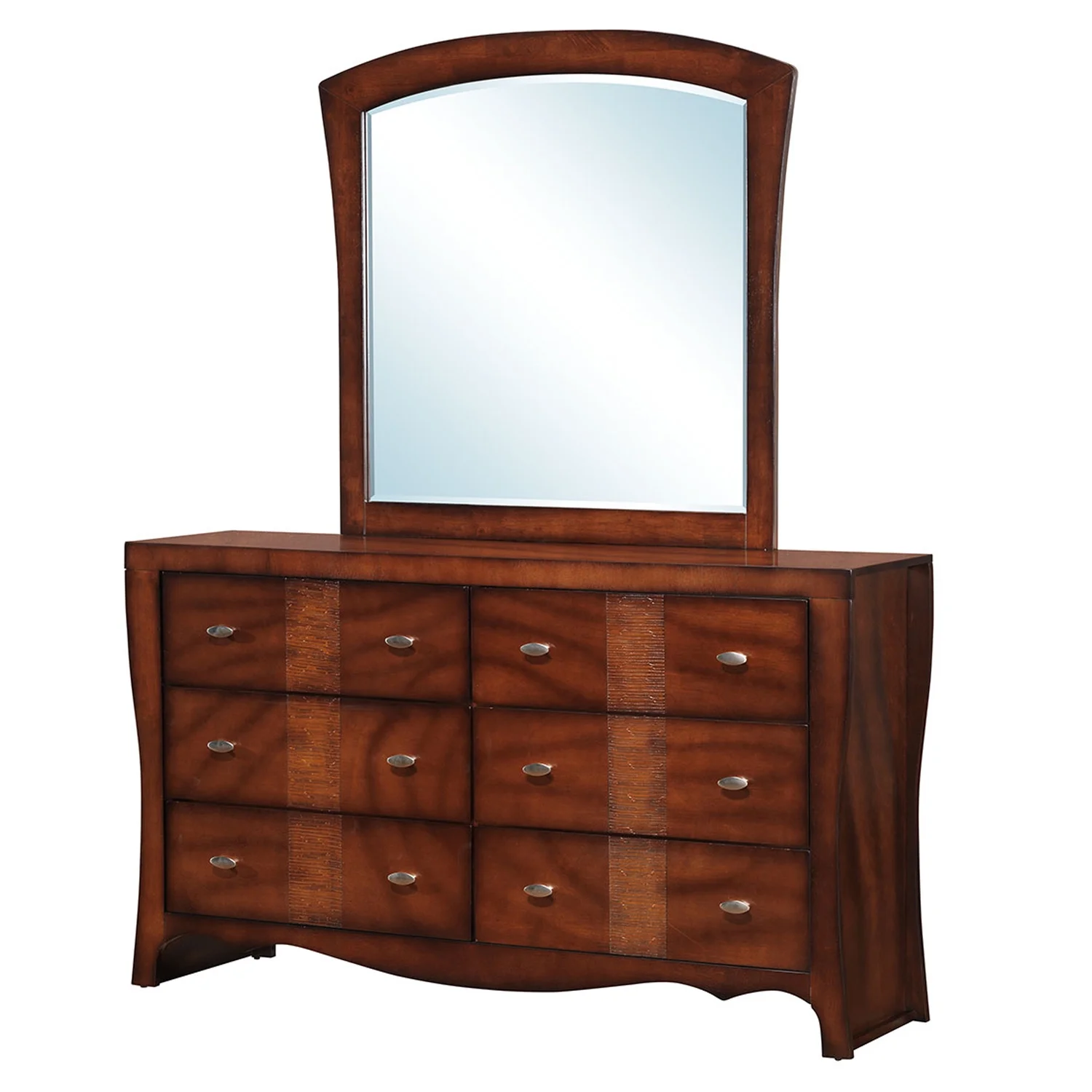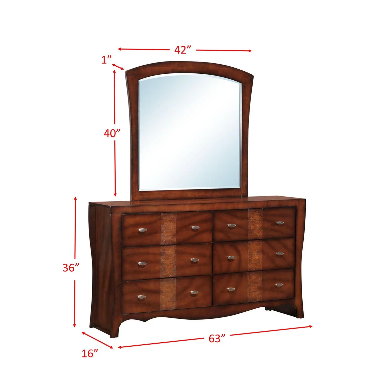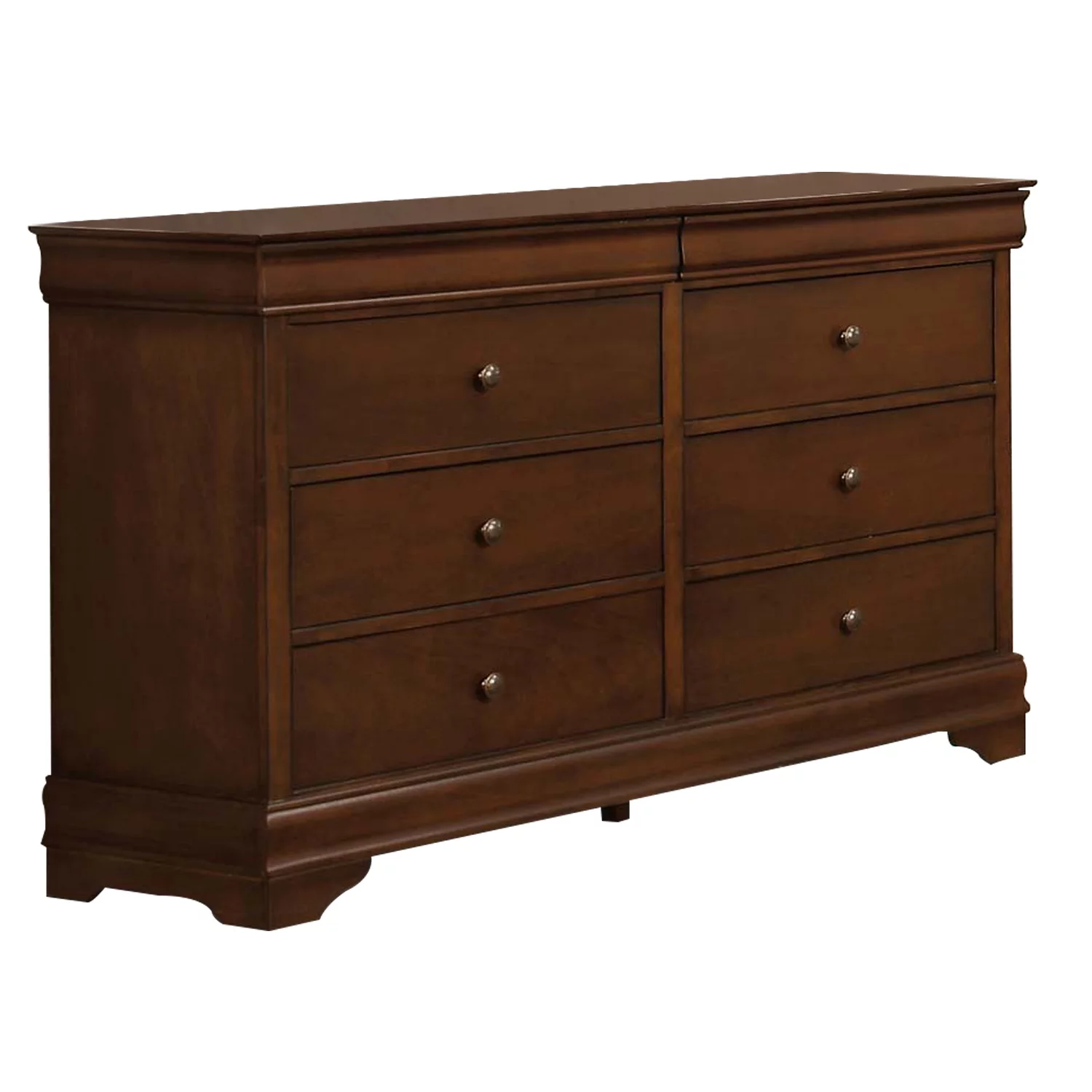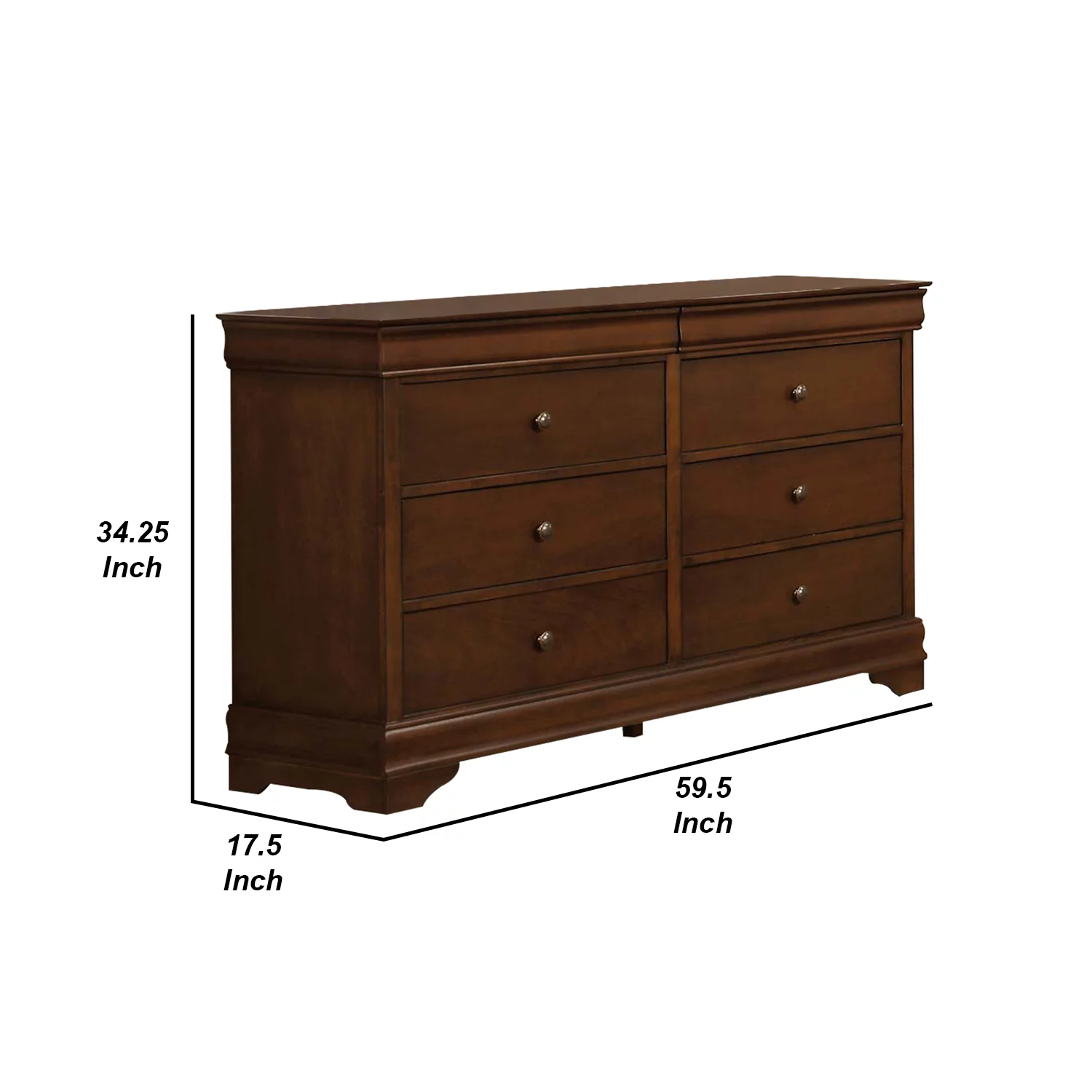 Benjara Wooden Dresser with 6 Drawers and Chamfered Legs, Cherry Brown