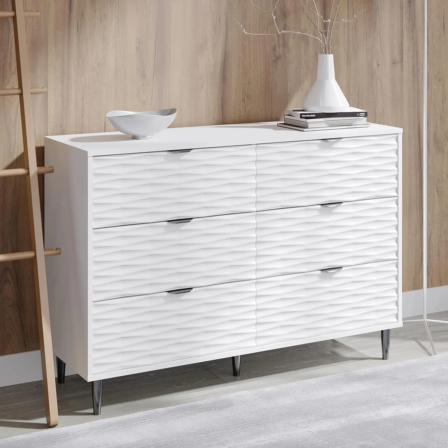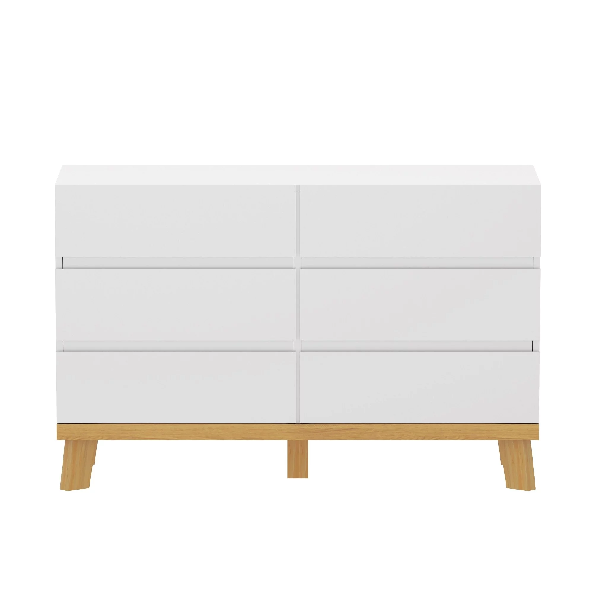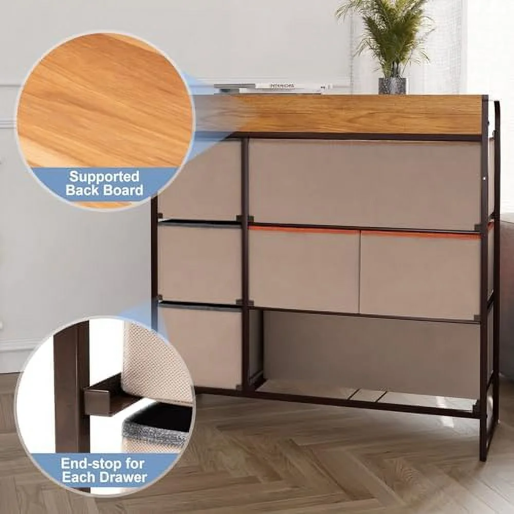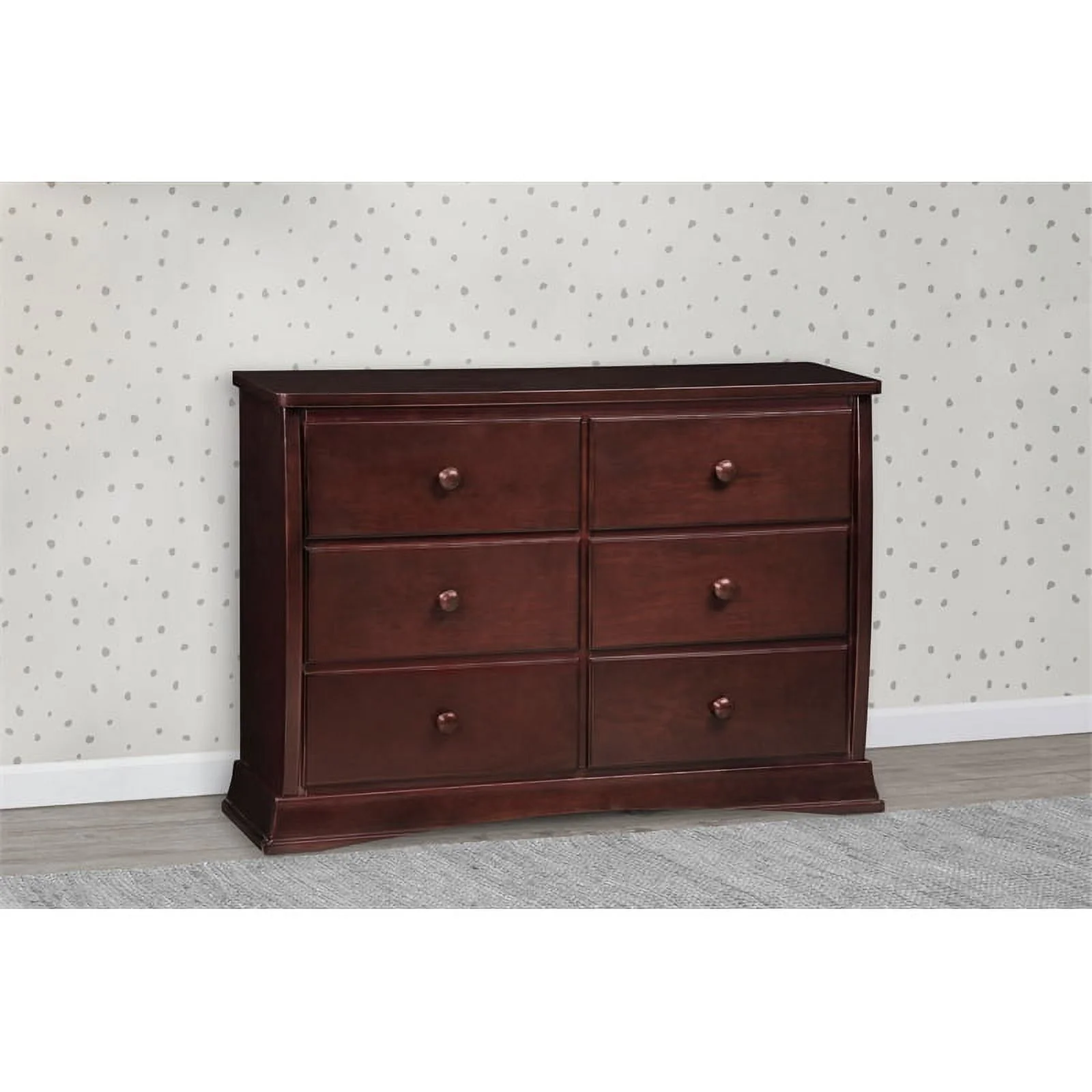 Benjara Wooden Dresser with 6 Drawers and Chamfered Legs, Cherry Brown