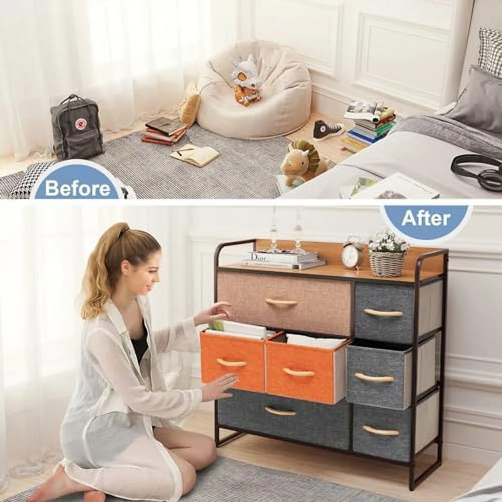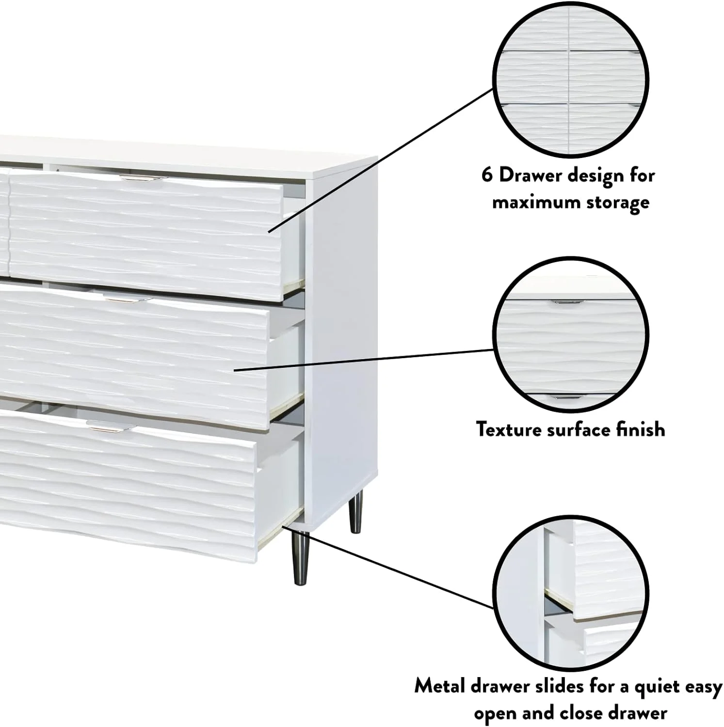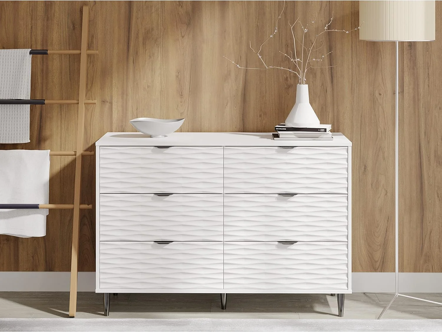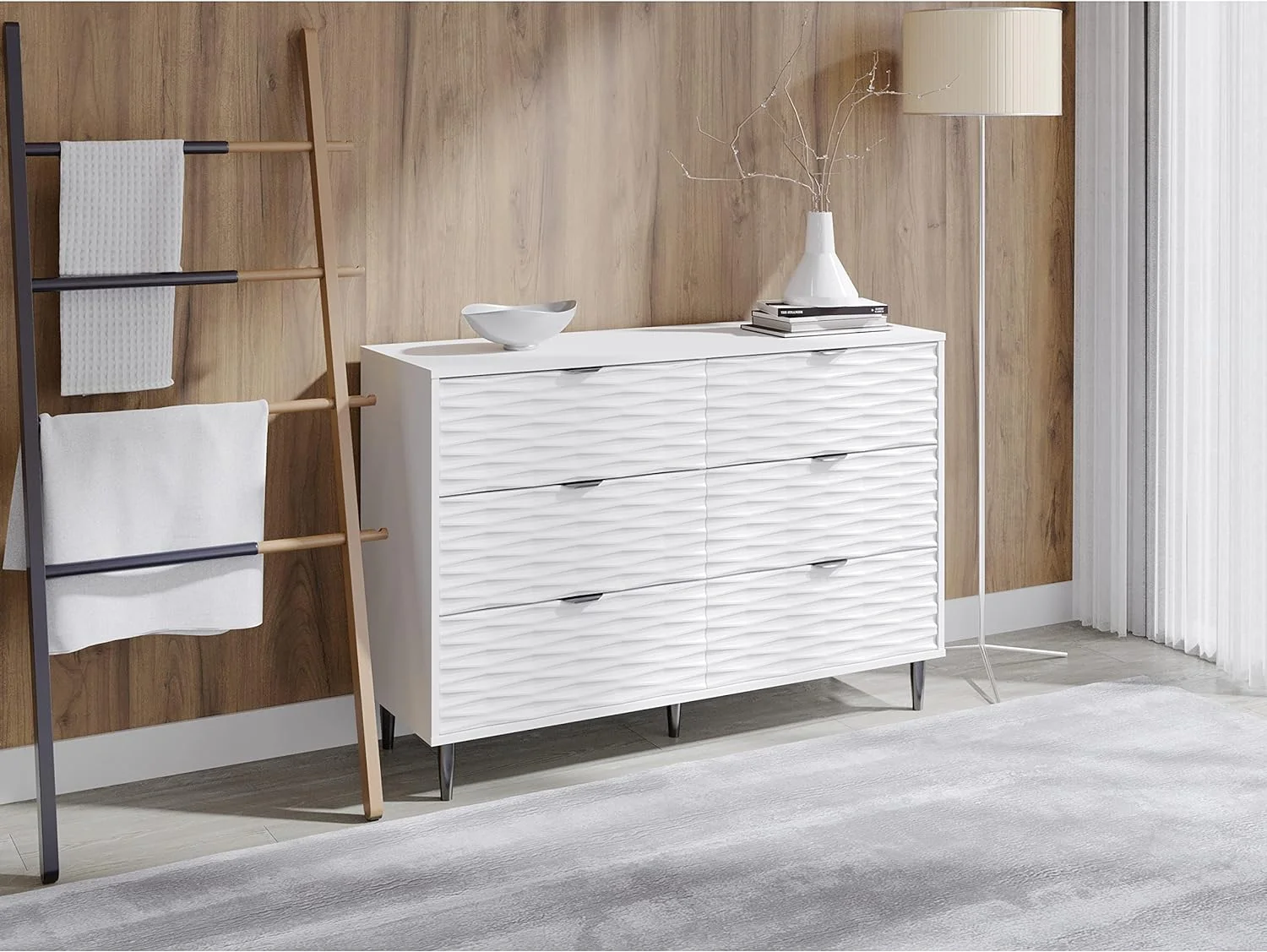 Benjara Wooden Dresser with 6 Drawers and Chamfered Legs, Cherry Brown