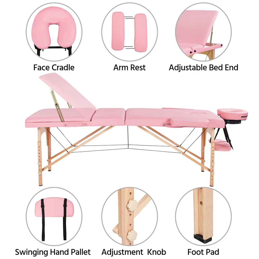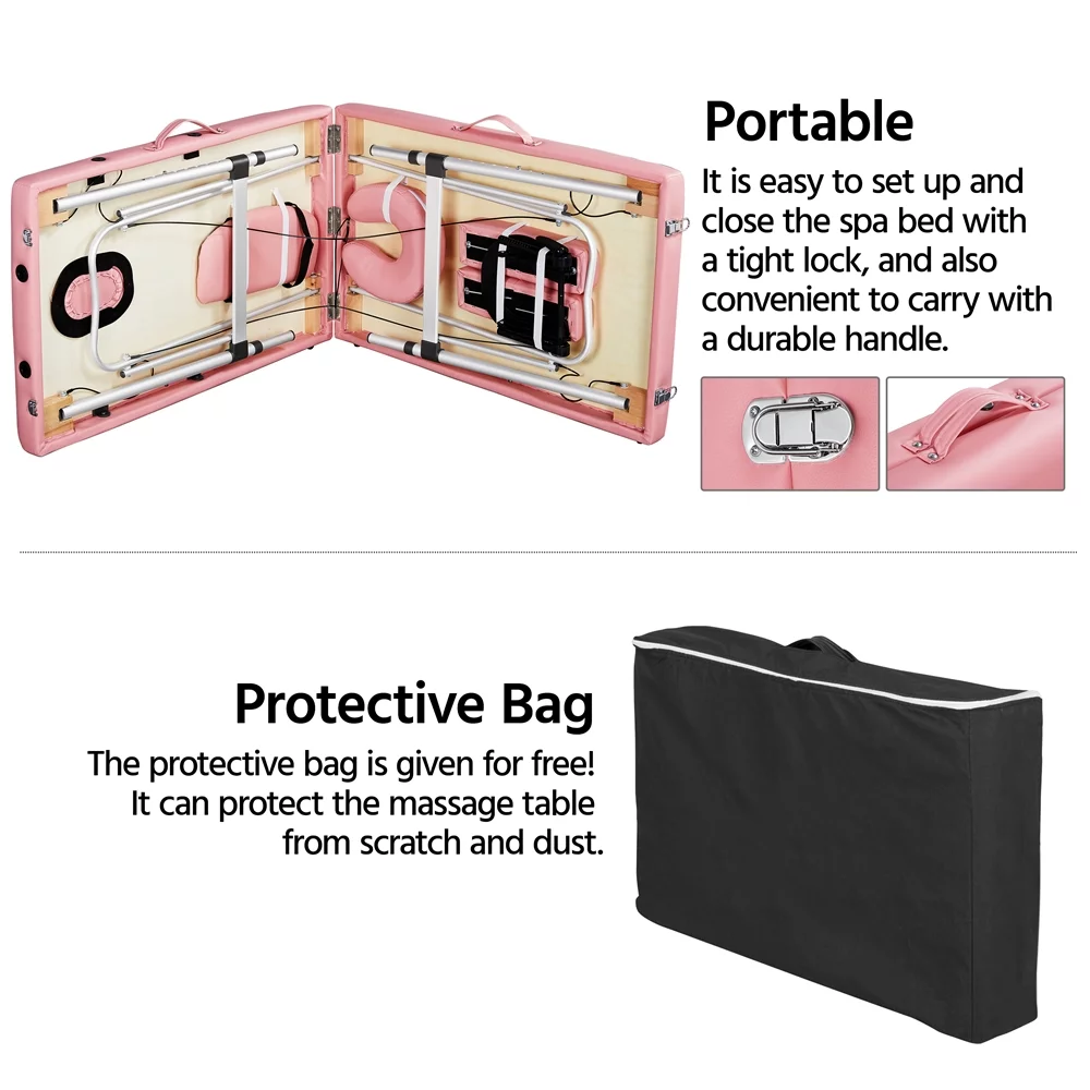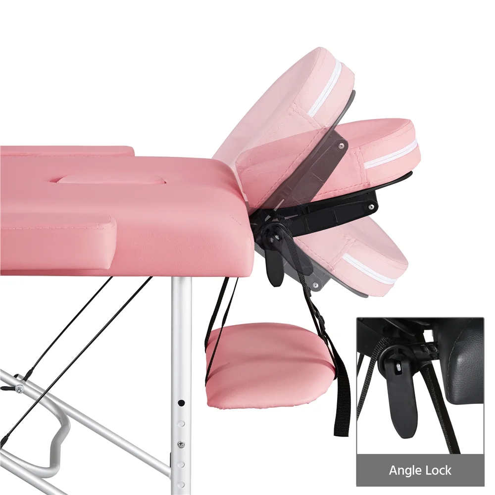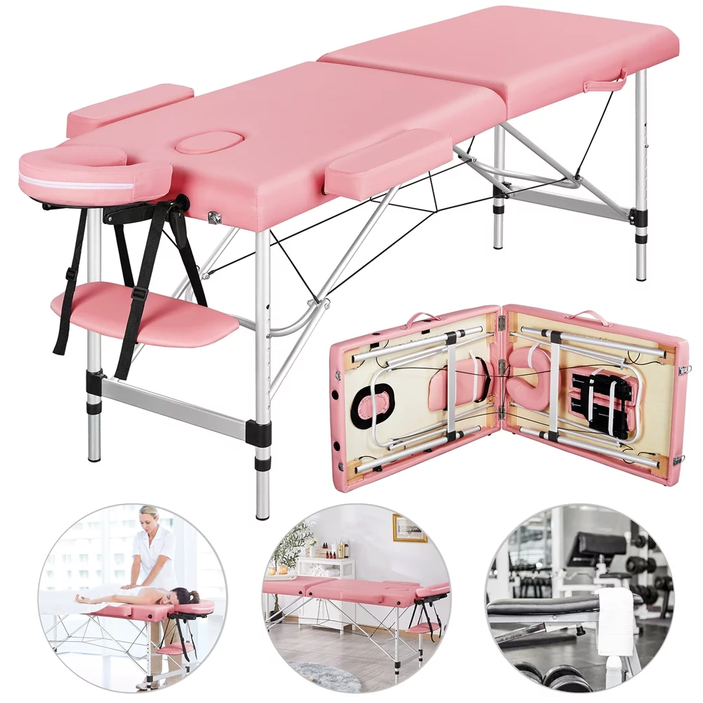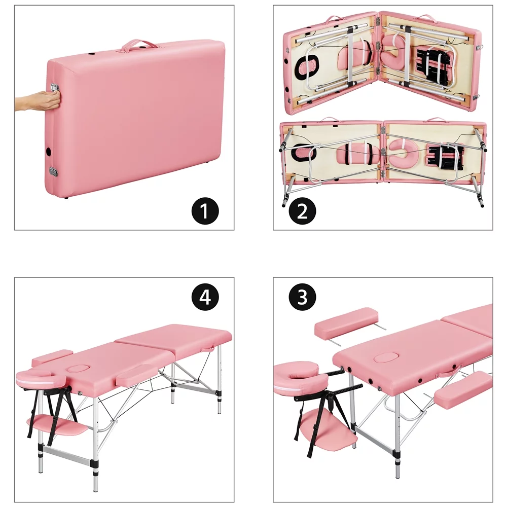 SmileMart 84" Portable Aluminum 3 Section Massage Table with Headrest Armrest, Pink