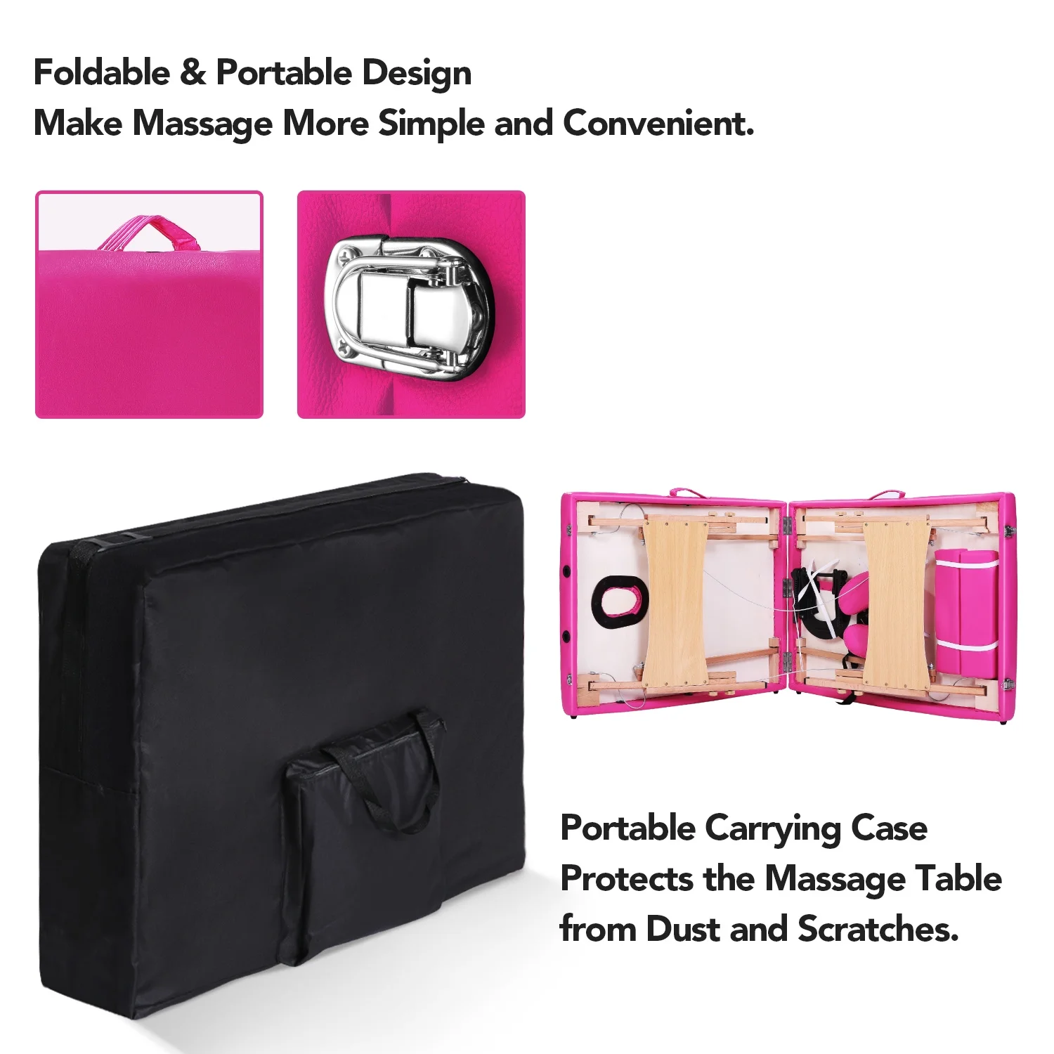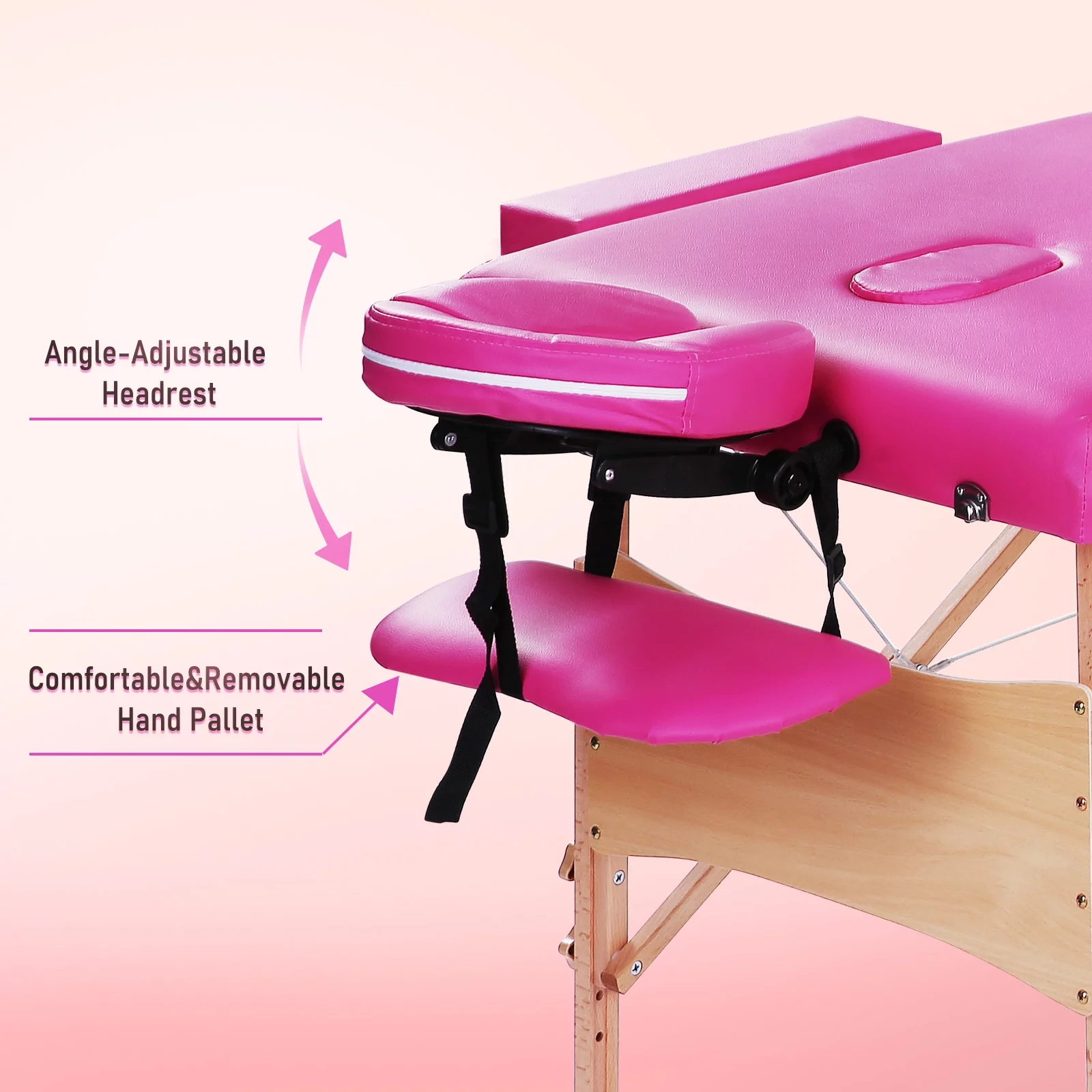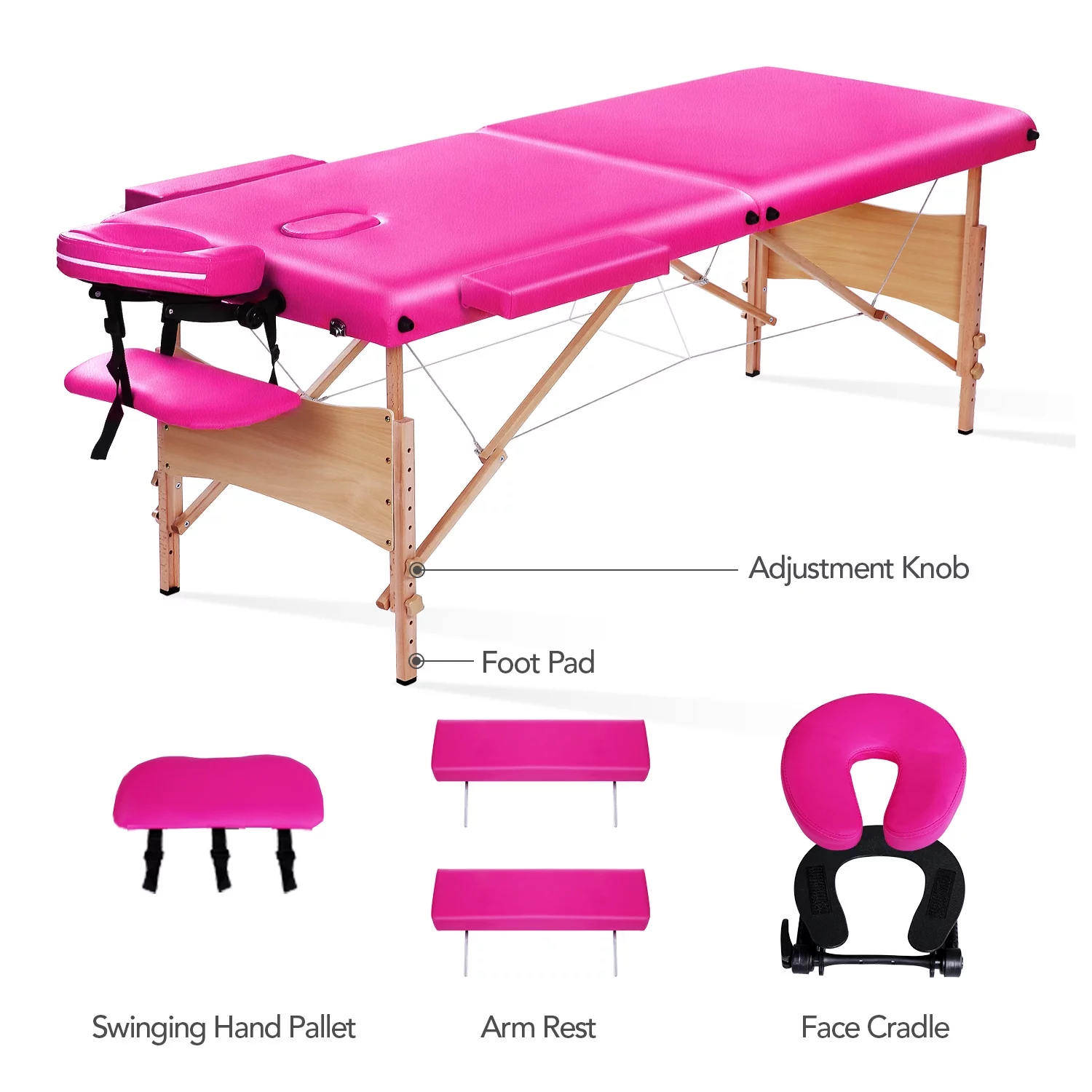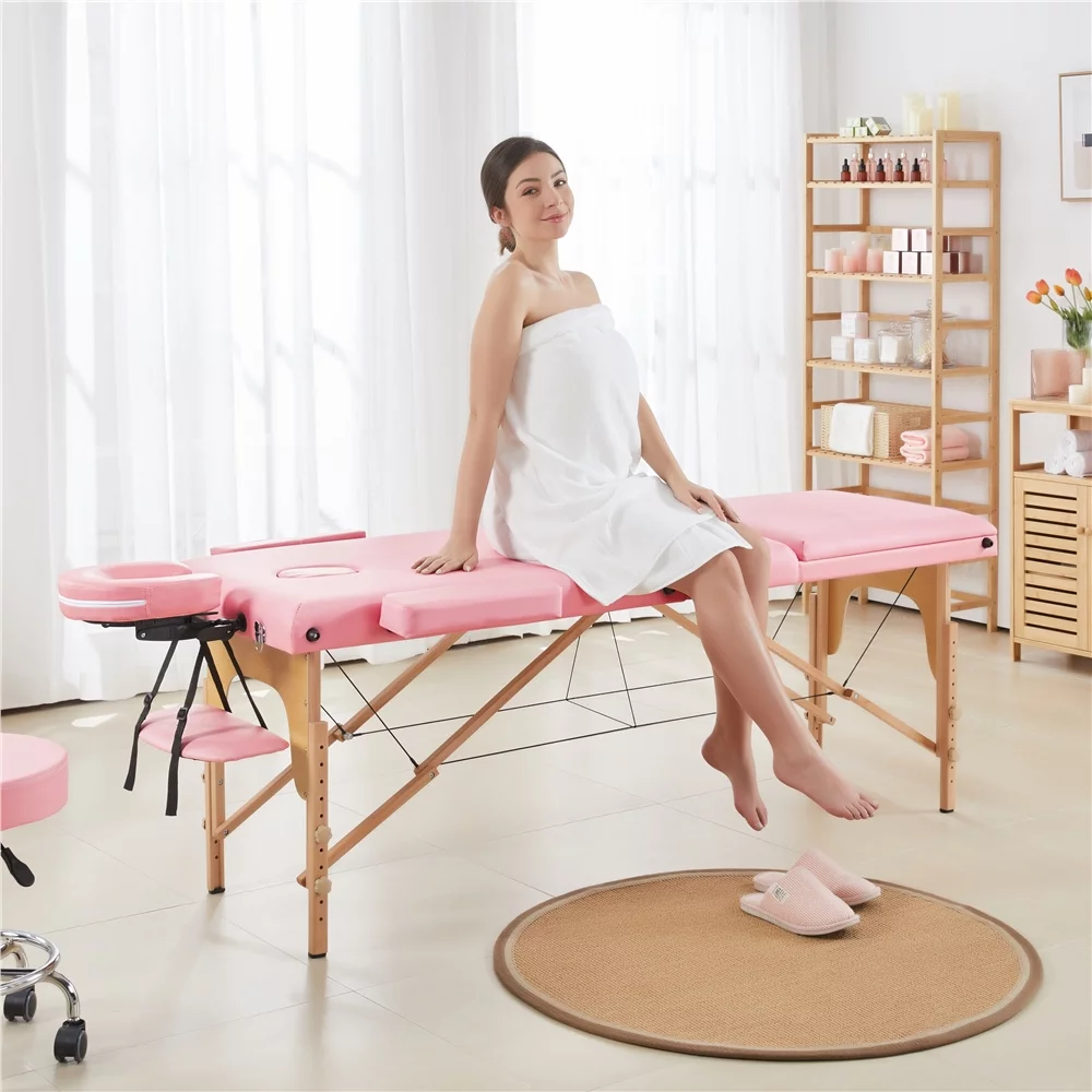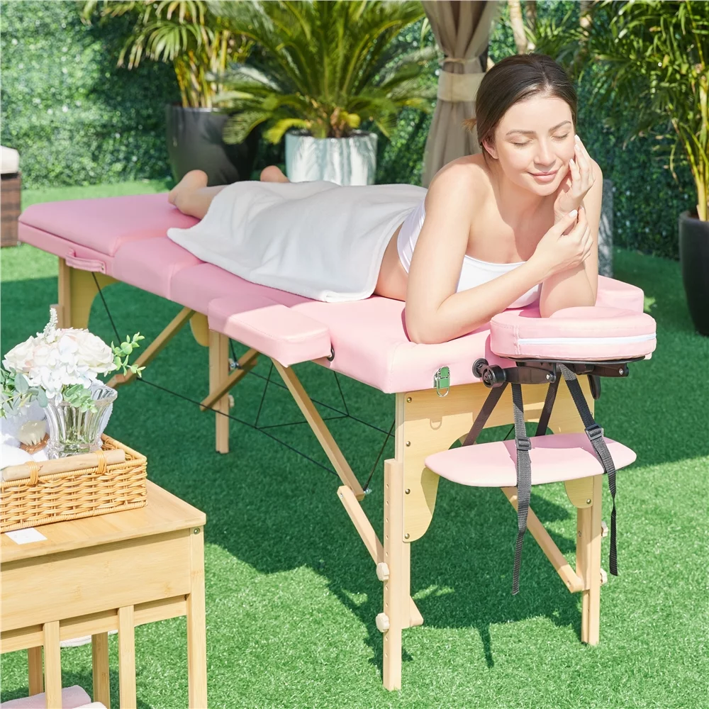 SmileMart 84" Portable Aluminum 3 Section Massage Table with Headrest Armrest, Pink