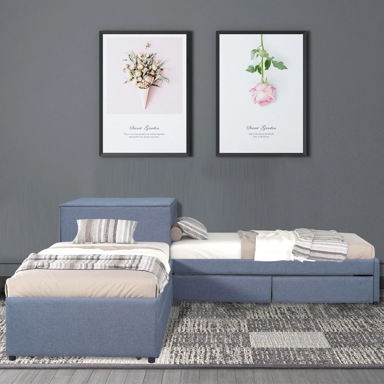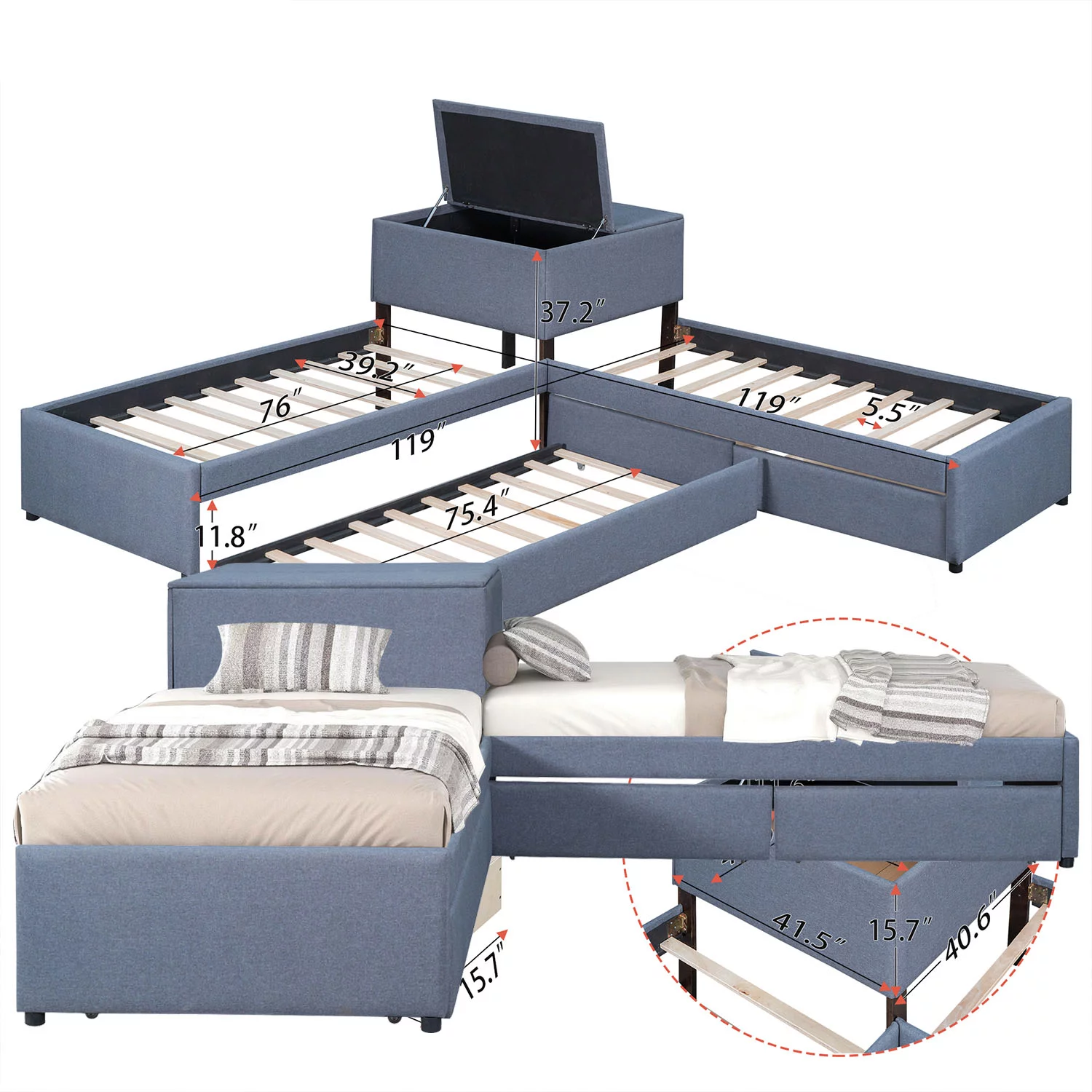 Hillsdale Furniture Pulse L Shaped with Storage and Trundle Unit Gray