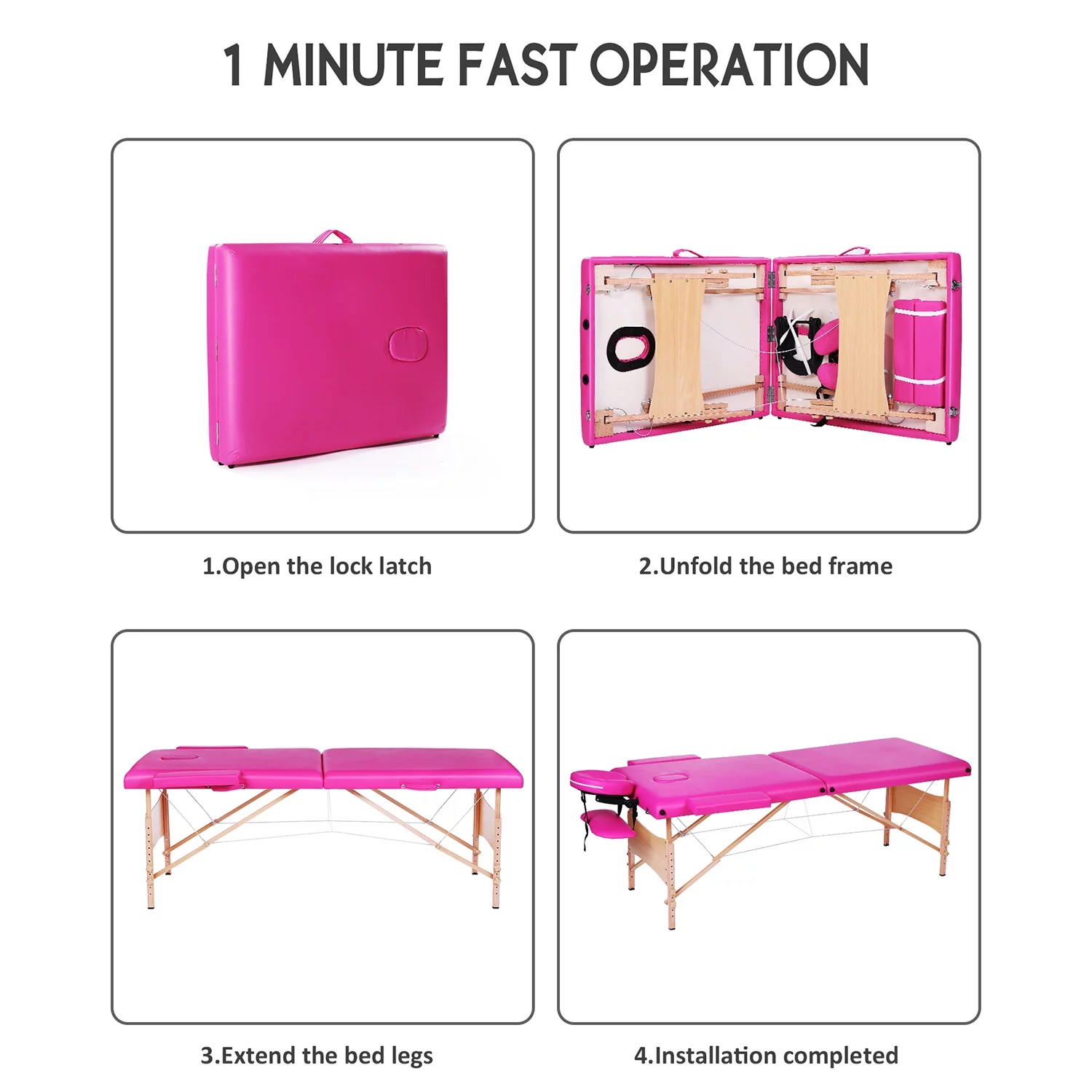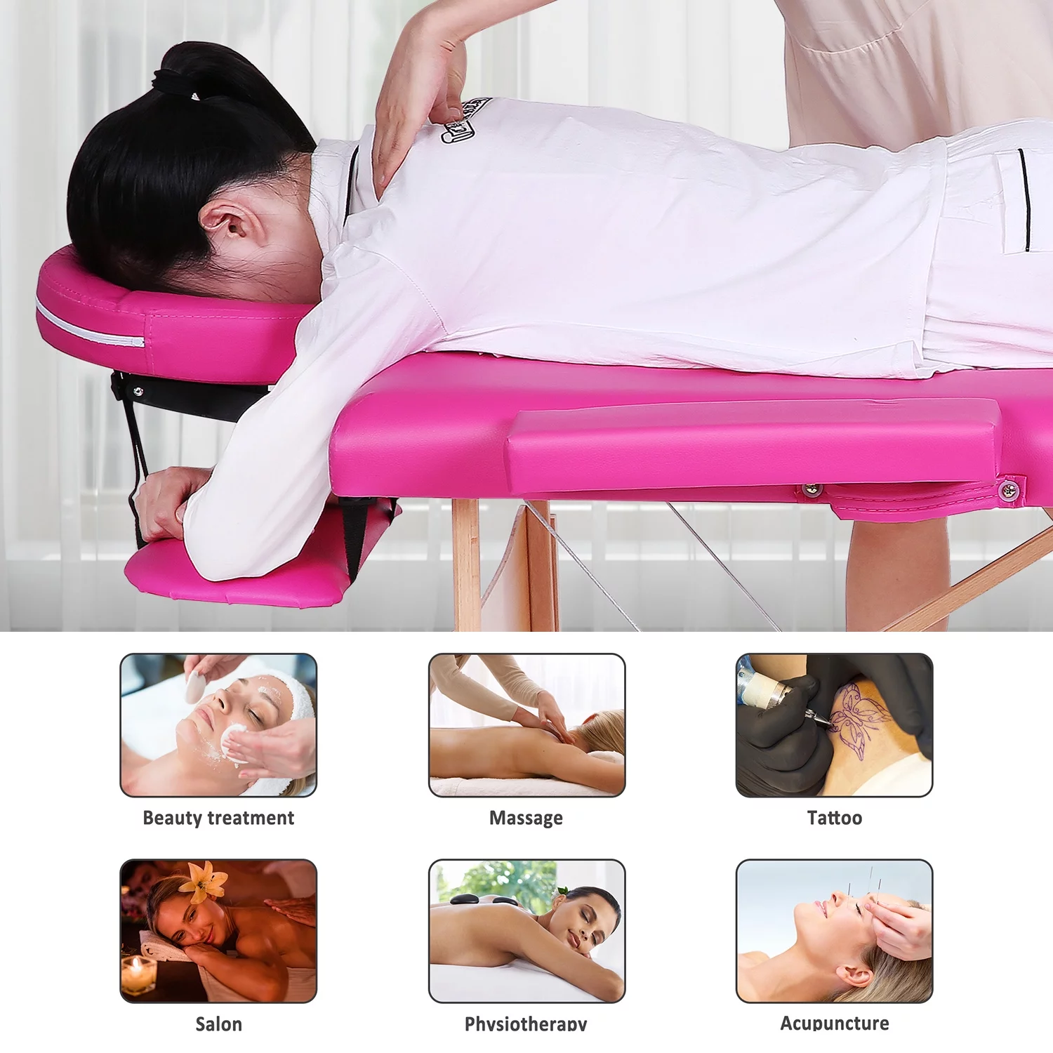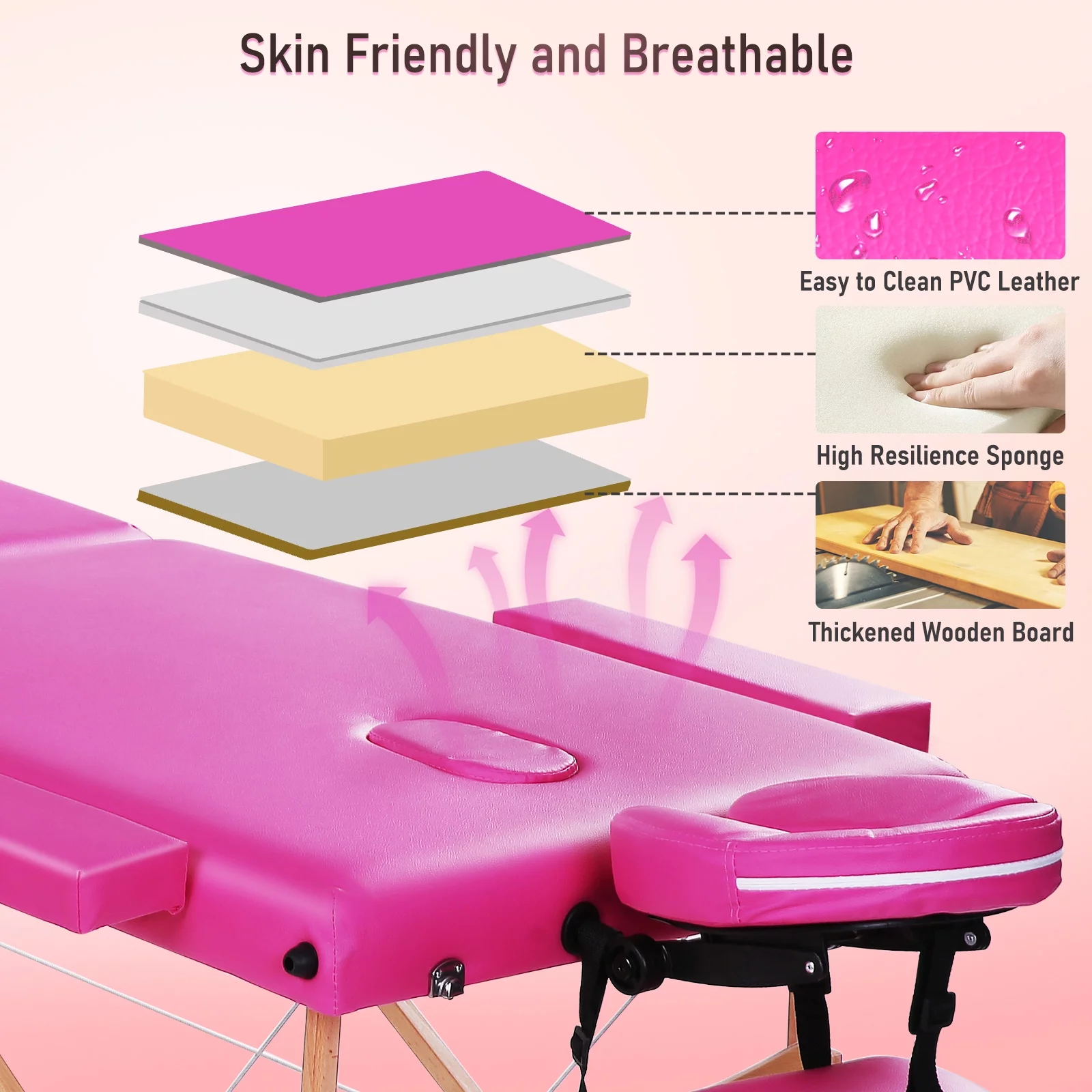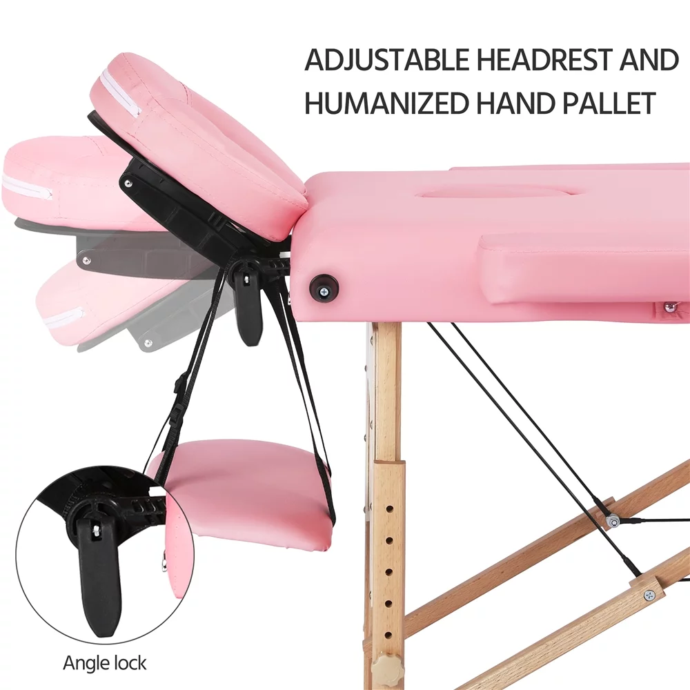 Easyfashion Adjustable Massage Bed Professional Salon Beauty Bed Spa Table with Headrest, Pink