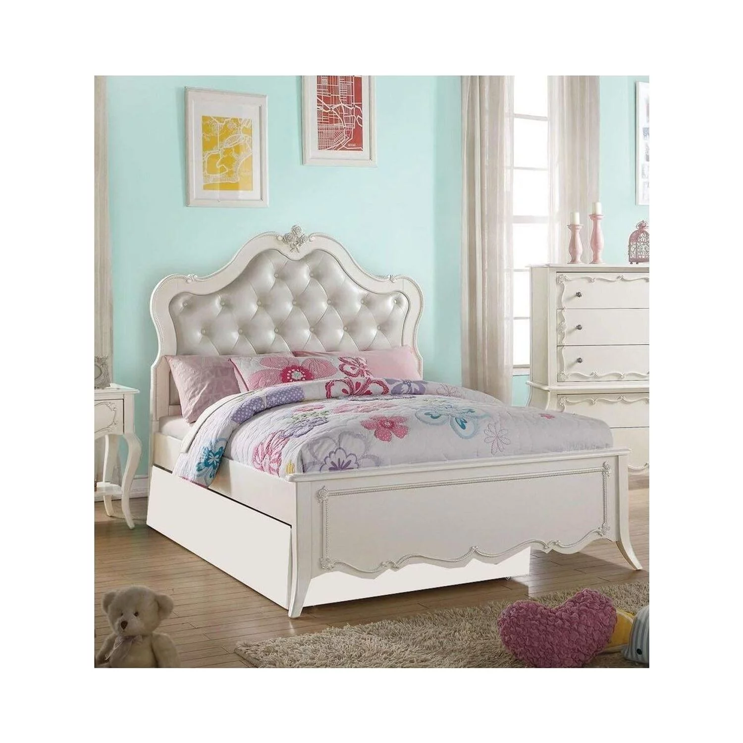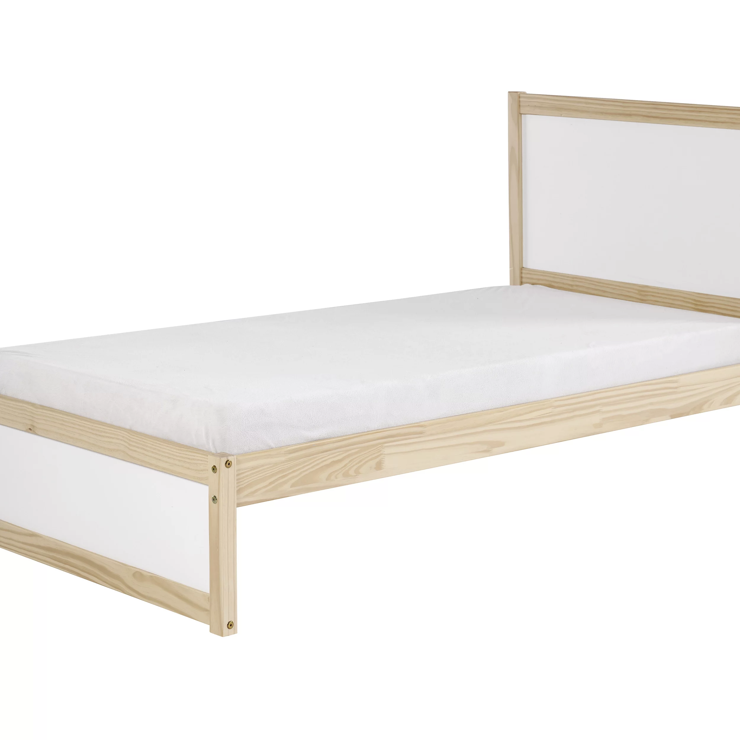 Benzara Pine Wood Twin Bed with Button Tufted Headboard - Pearl White