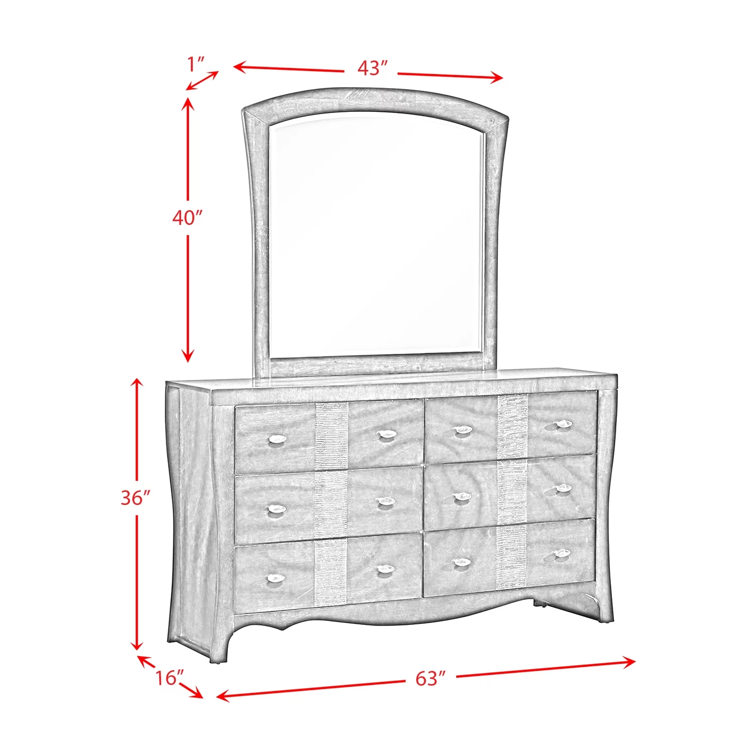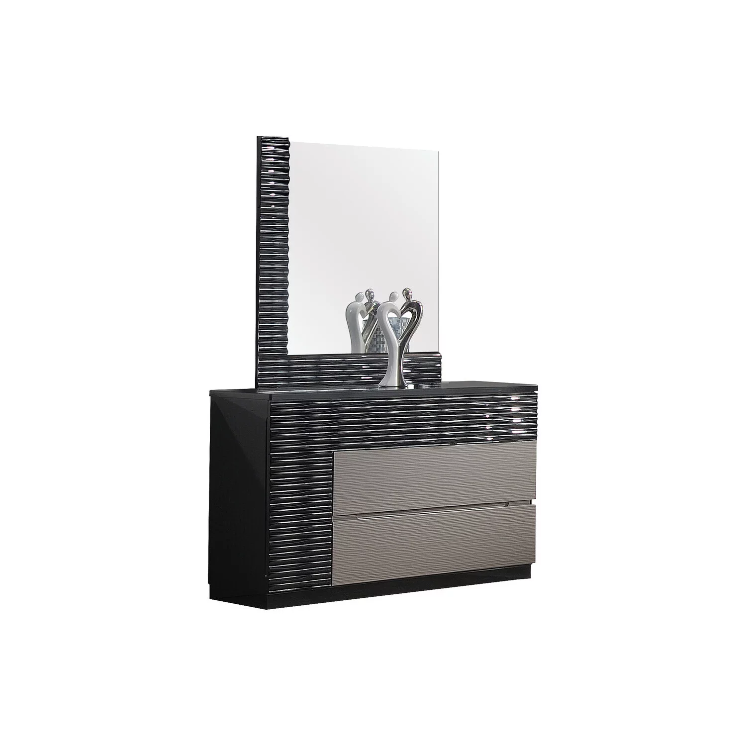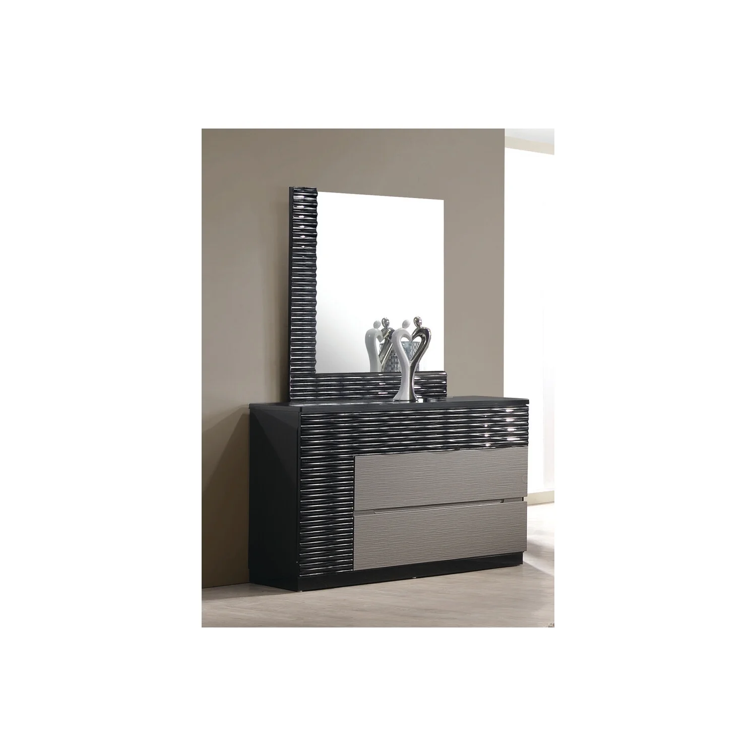 Best Master Romania 2-Pc Poplar Wood Dresser and Mirror Set in Black/Zebra Gray