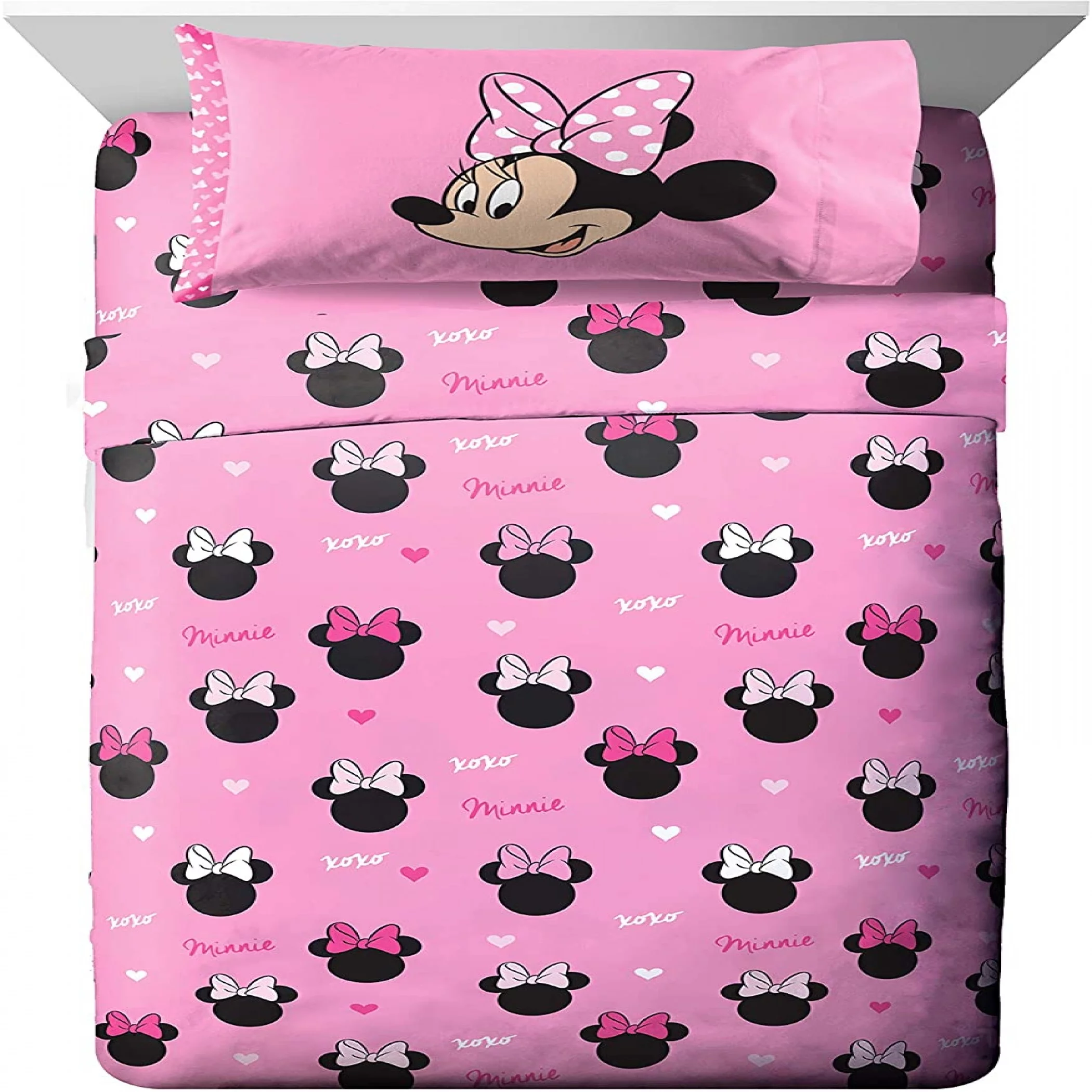 Disney Minnie Mouse Hearts N Love Pink 4 Piece Twin Bed Set, 100% Microfiber