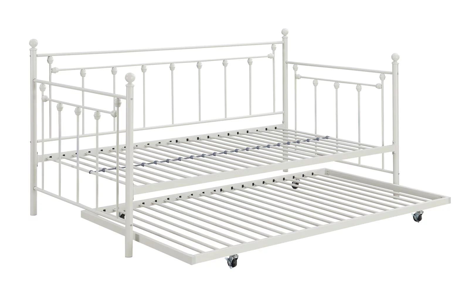 Gewnee Metal Daybed with Trundle, Twin Size Bed Frame for Kids Room Guest Room,White