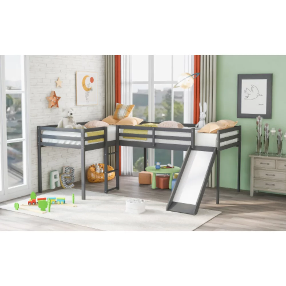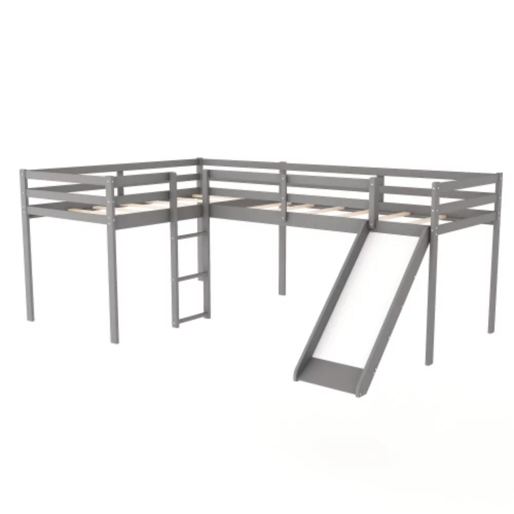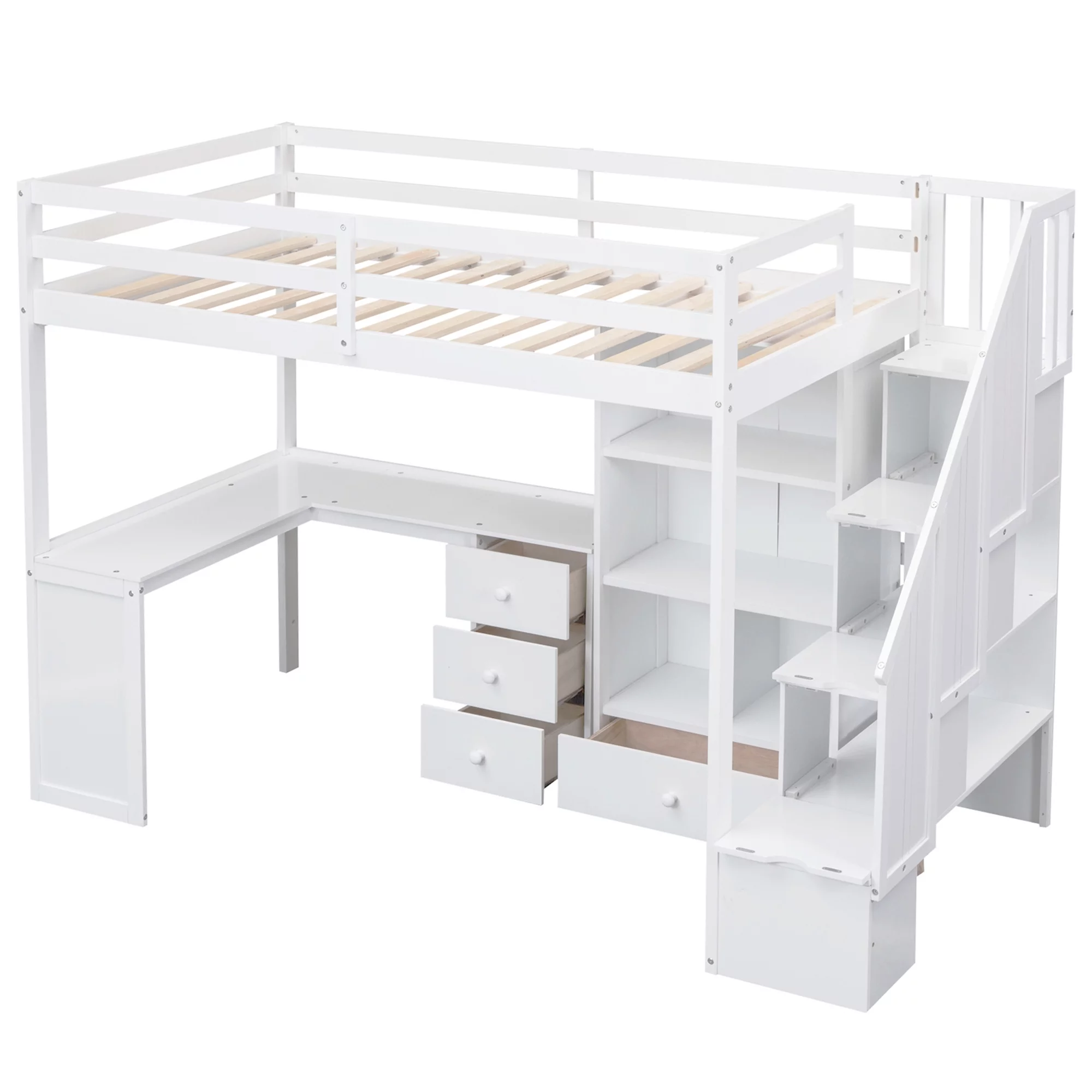 CoSoTower Twin Size Loft Bed with L-Shaped Desk and Drawers, Cabinet and Storage Staircase, White