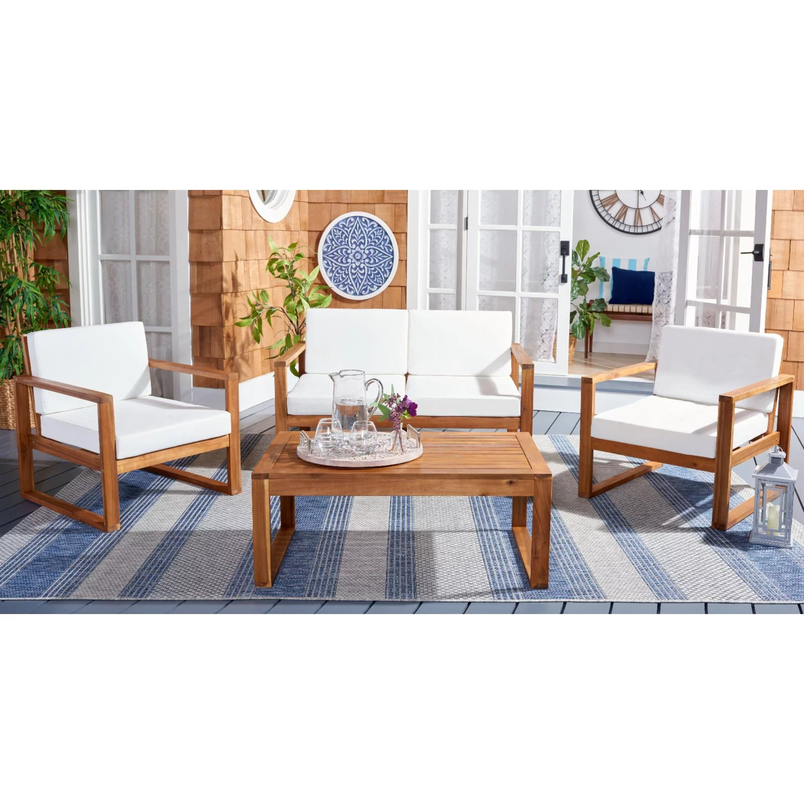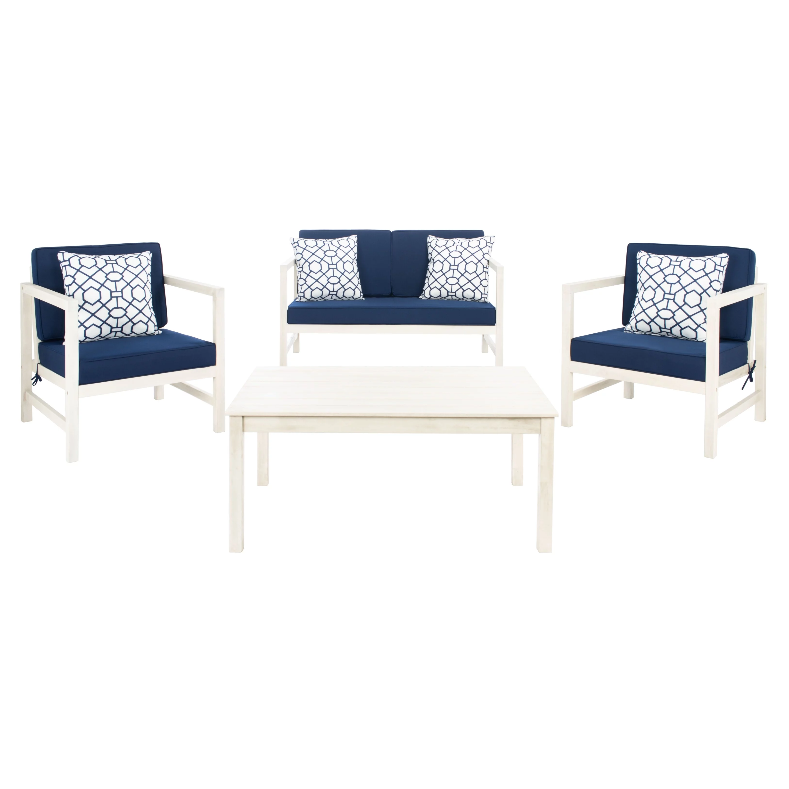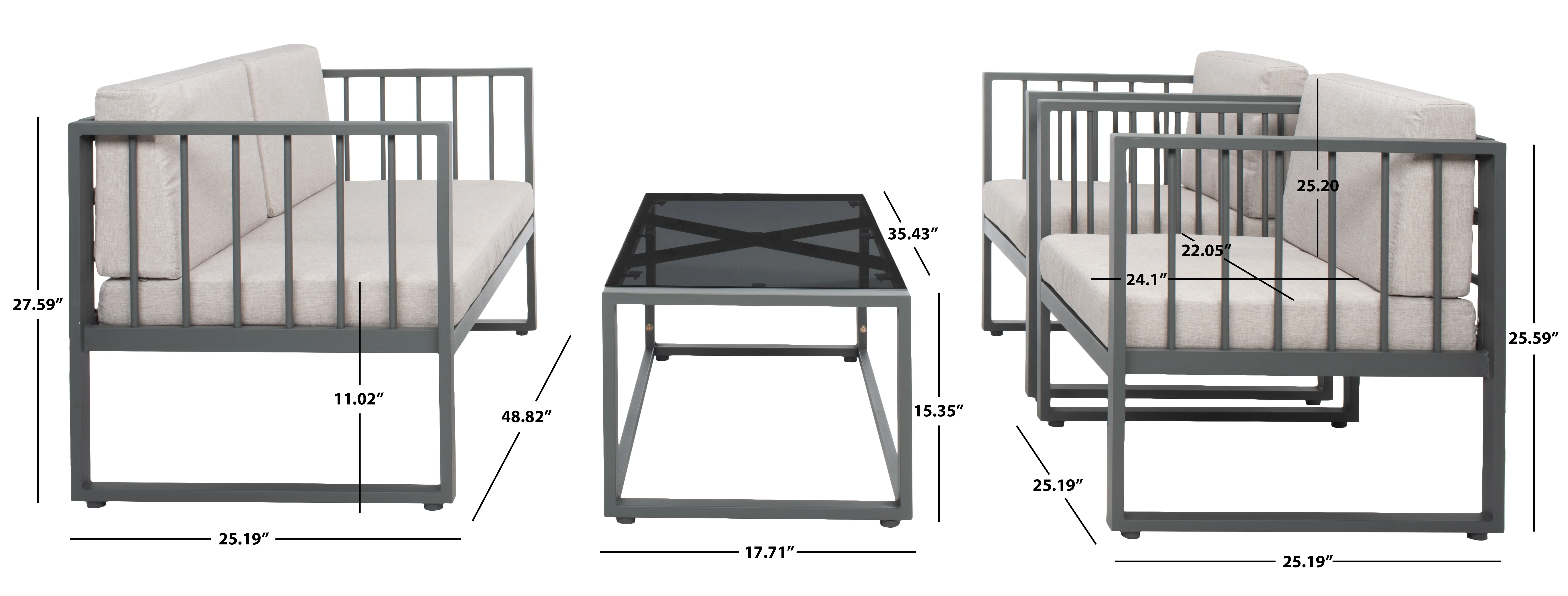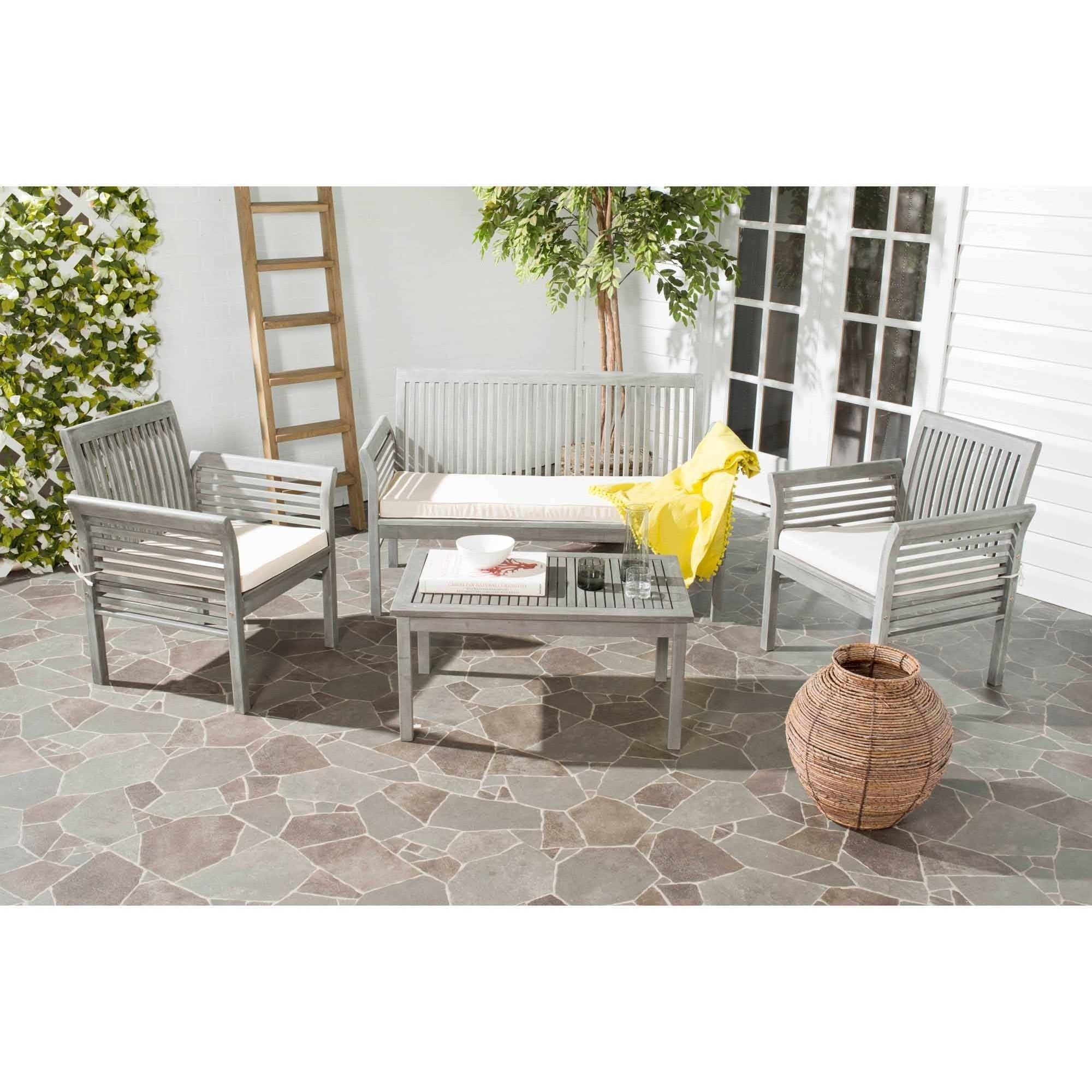 Safavieh Del Mar Outdoor Contemporary 4 Piece Living Set with Cushion