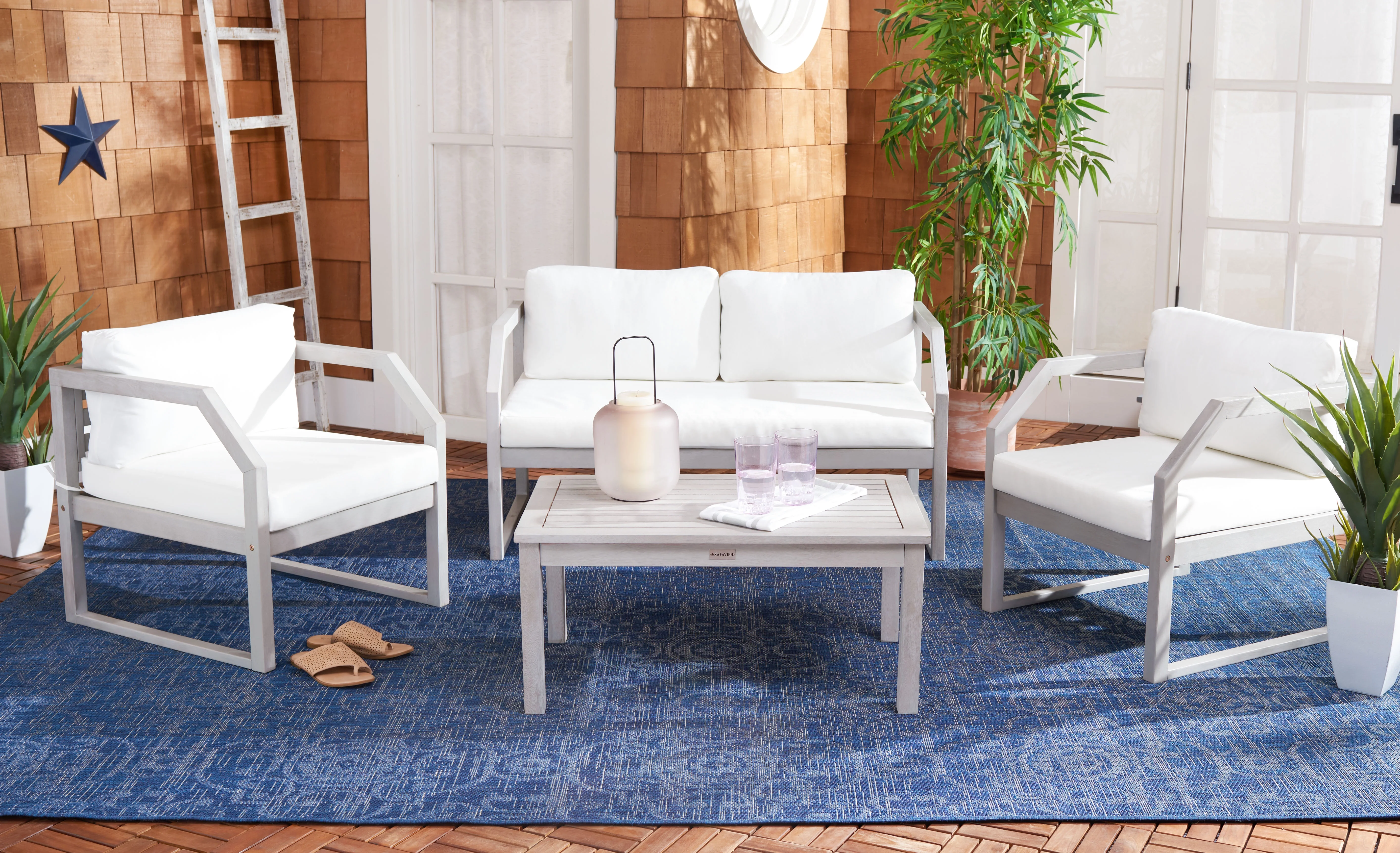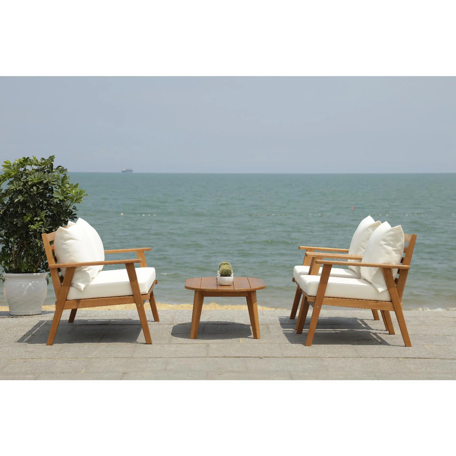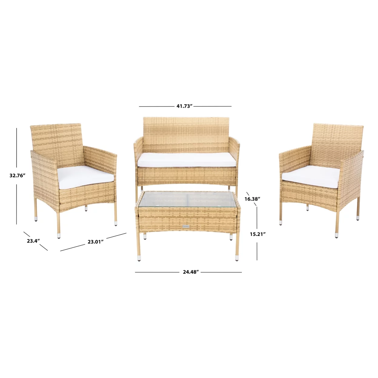 Safavieh Del Mar Outdoor Contemporary 4 Piece Living Set with Cushion