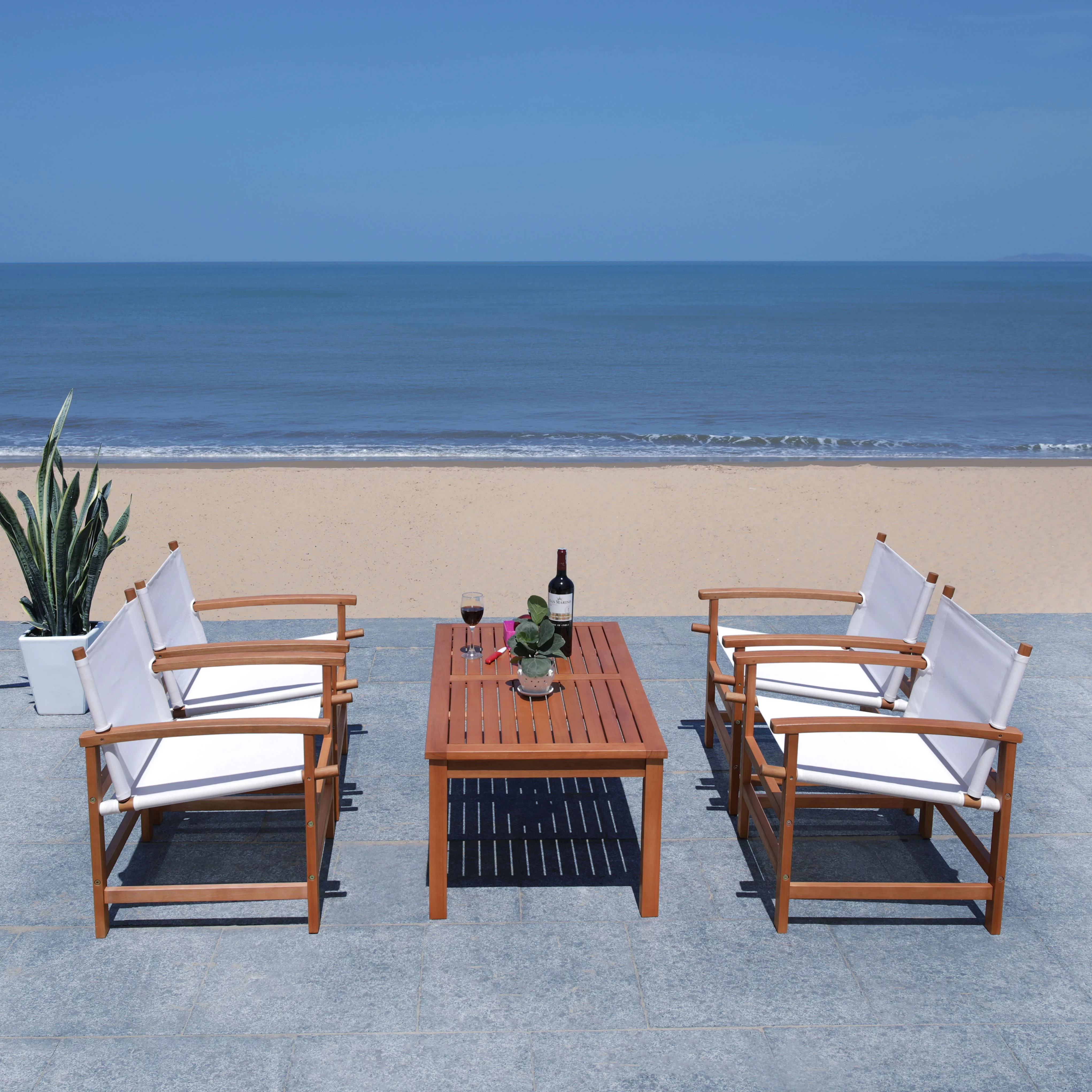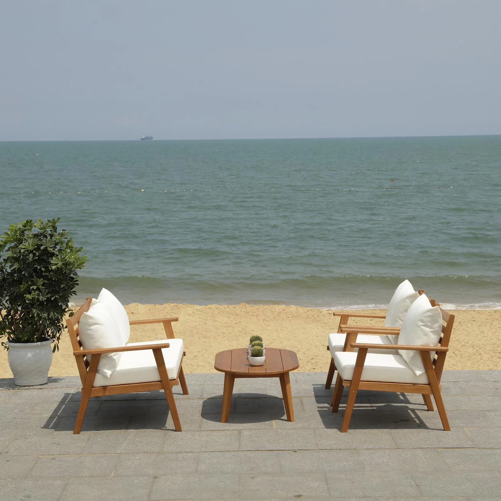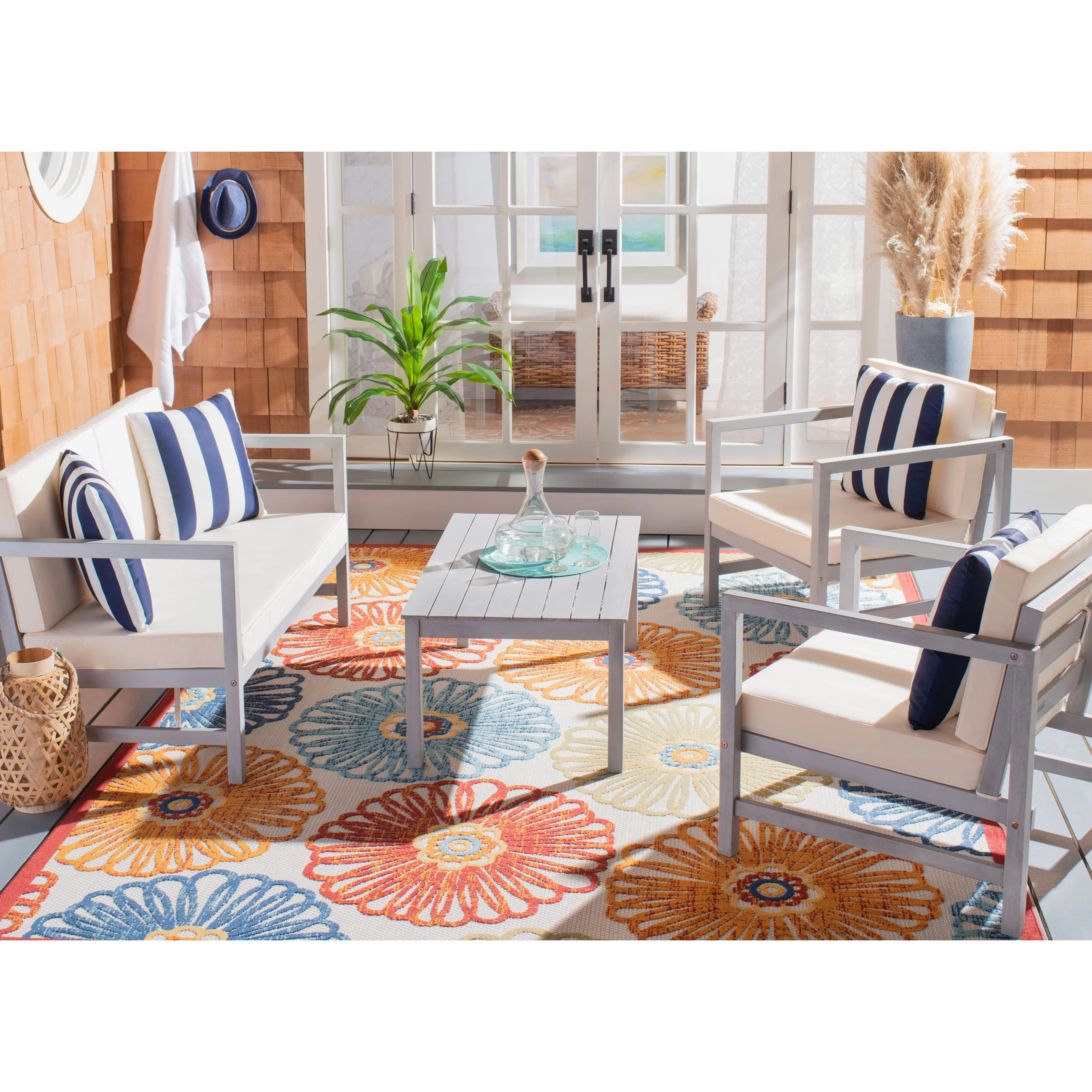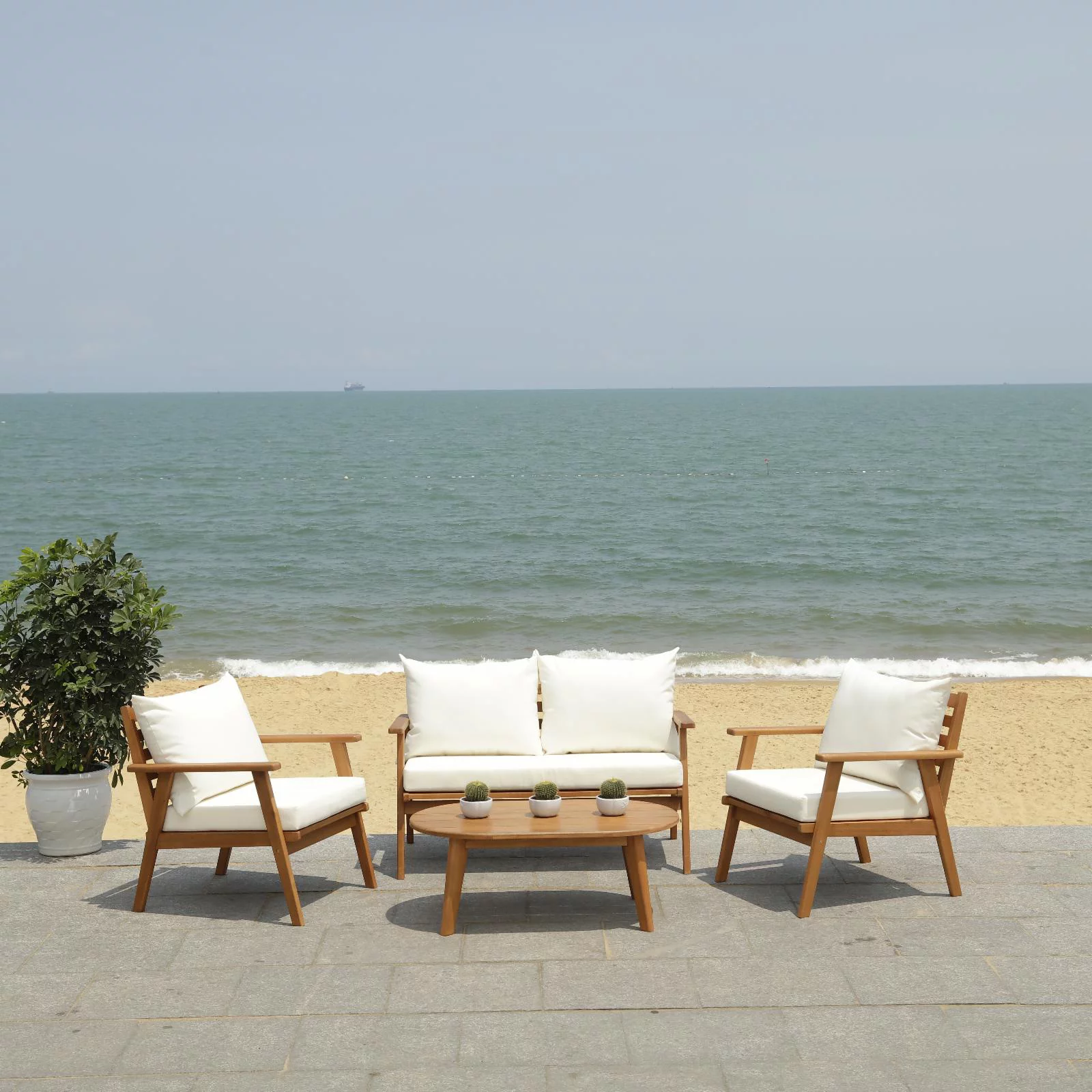 Safavieh Del Mar Outdoor Contemporary 4 Piece Living Set with Cushion