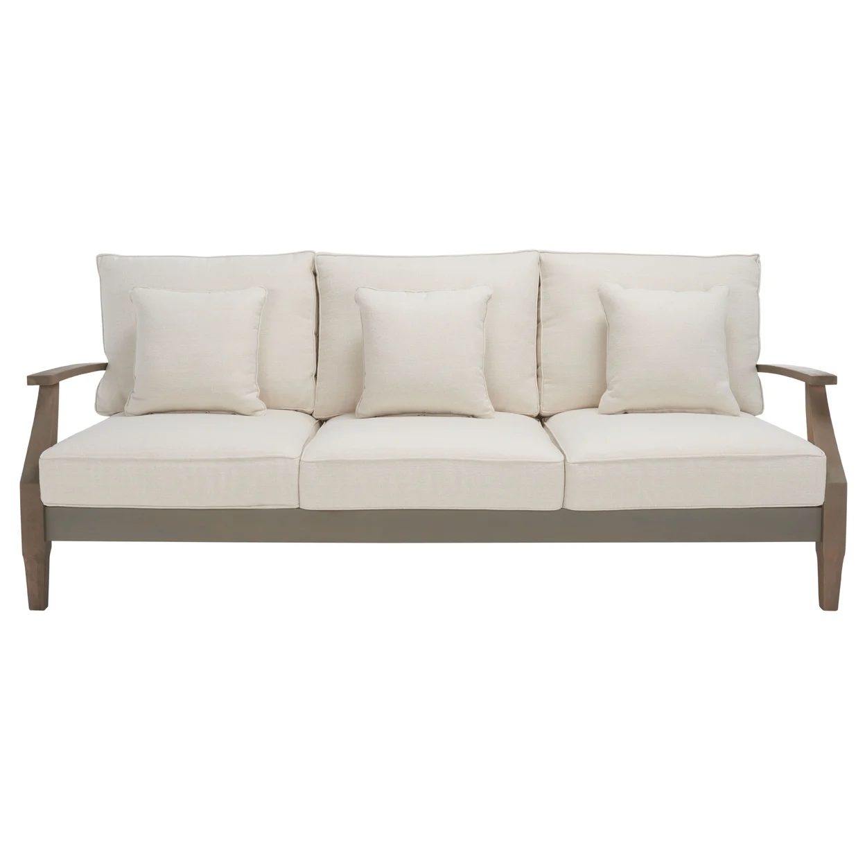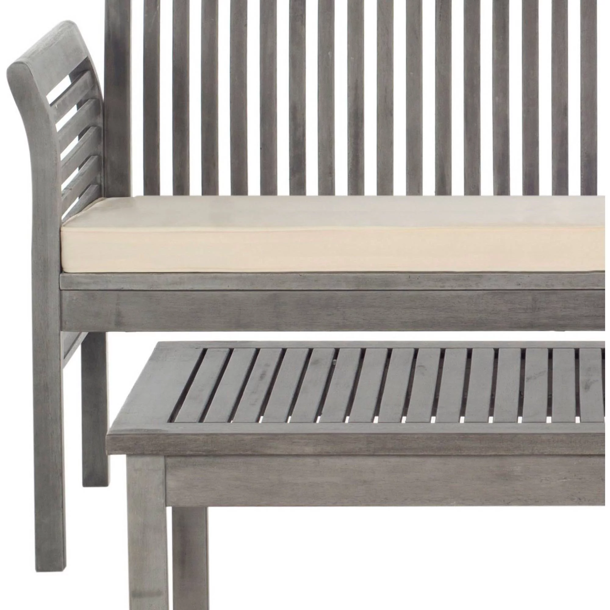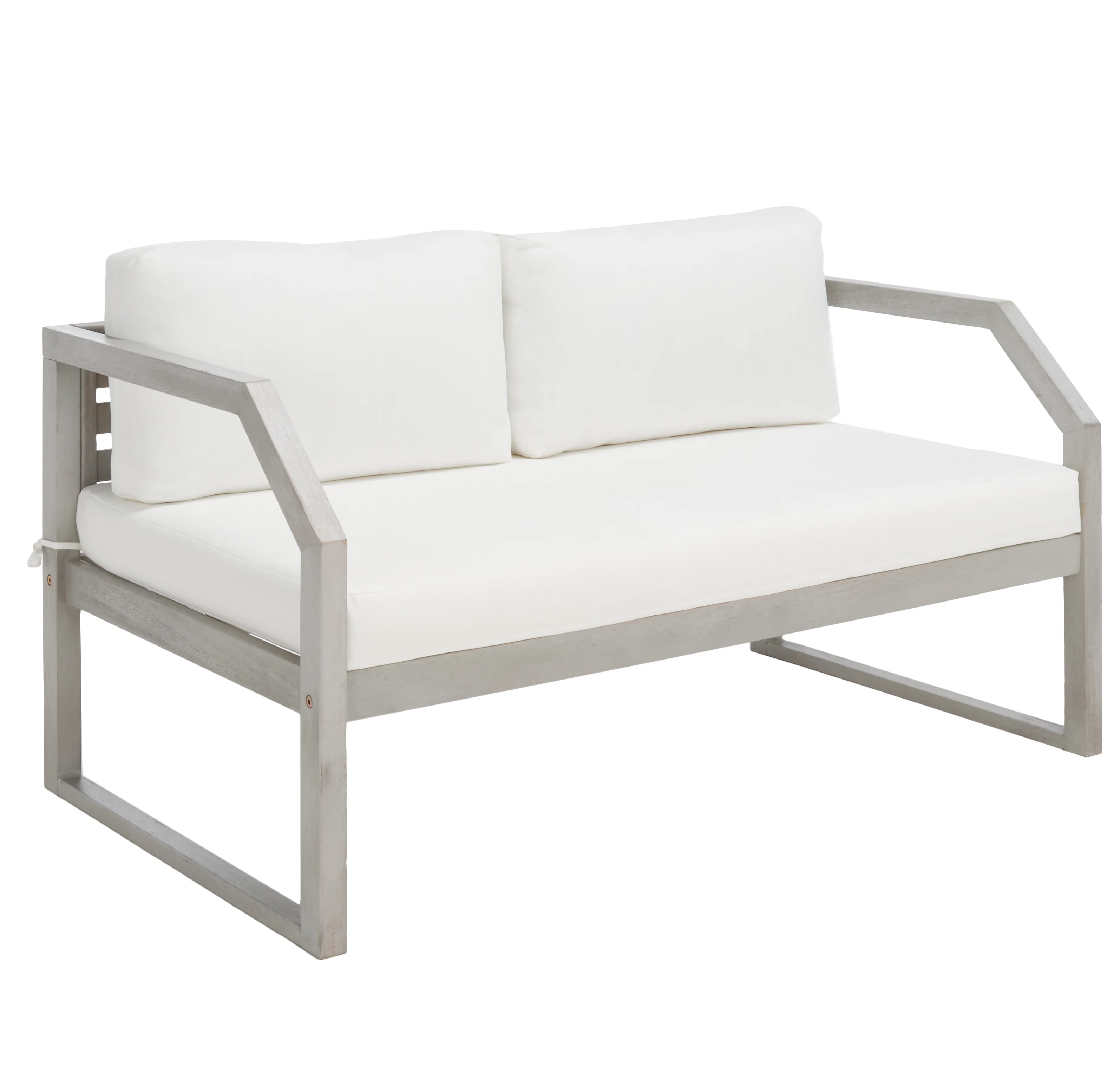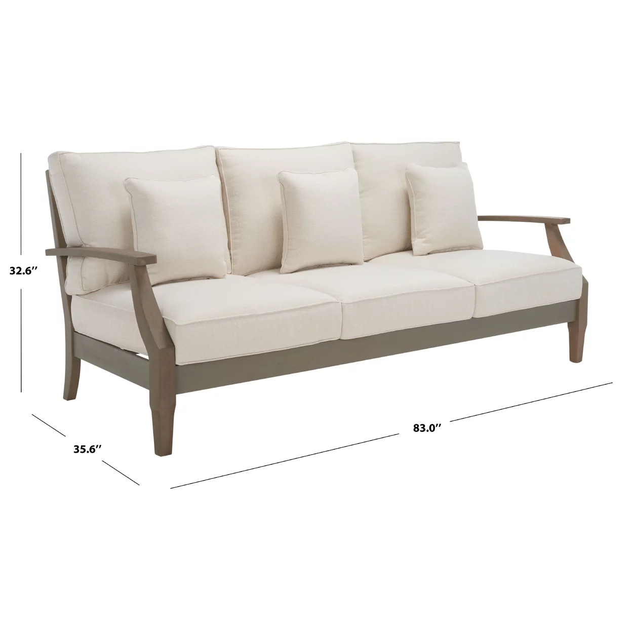 SAFAVIEH OUTDOOR COUTURE Martinique Wood Patio Sofa Light Grey / Beige