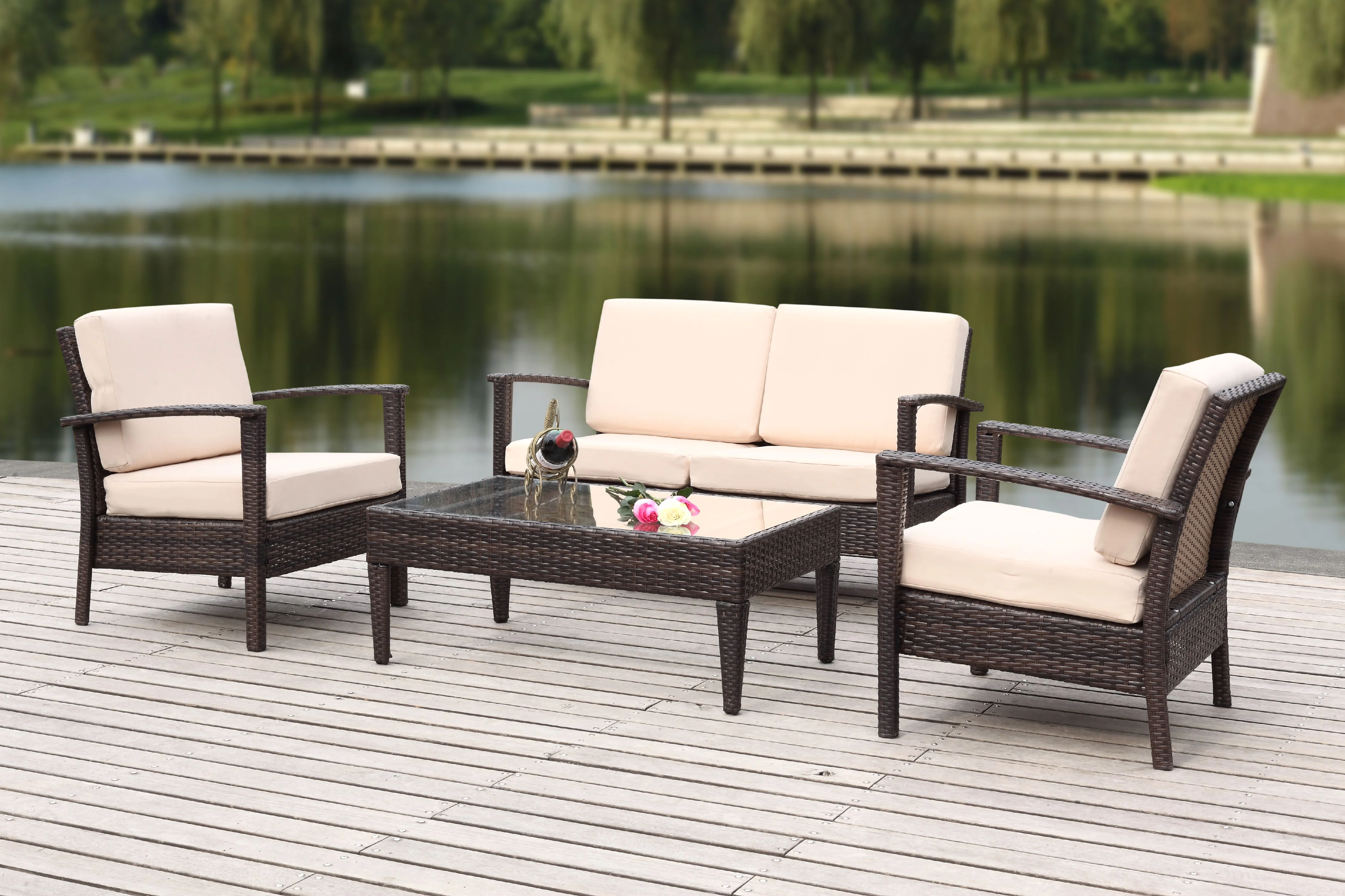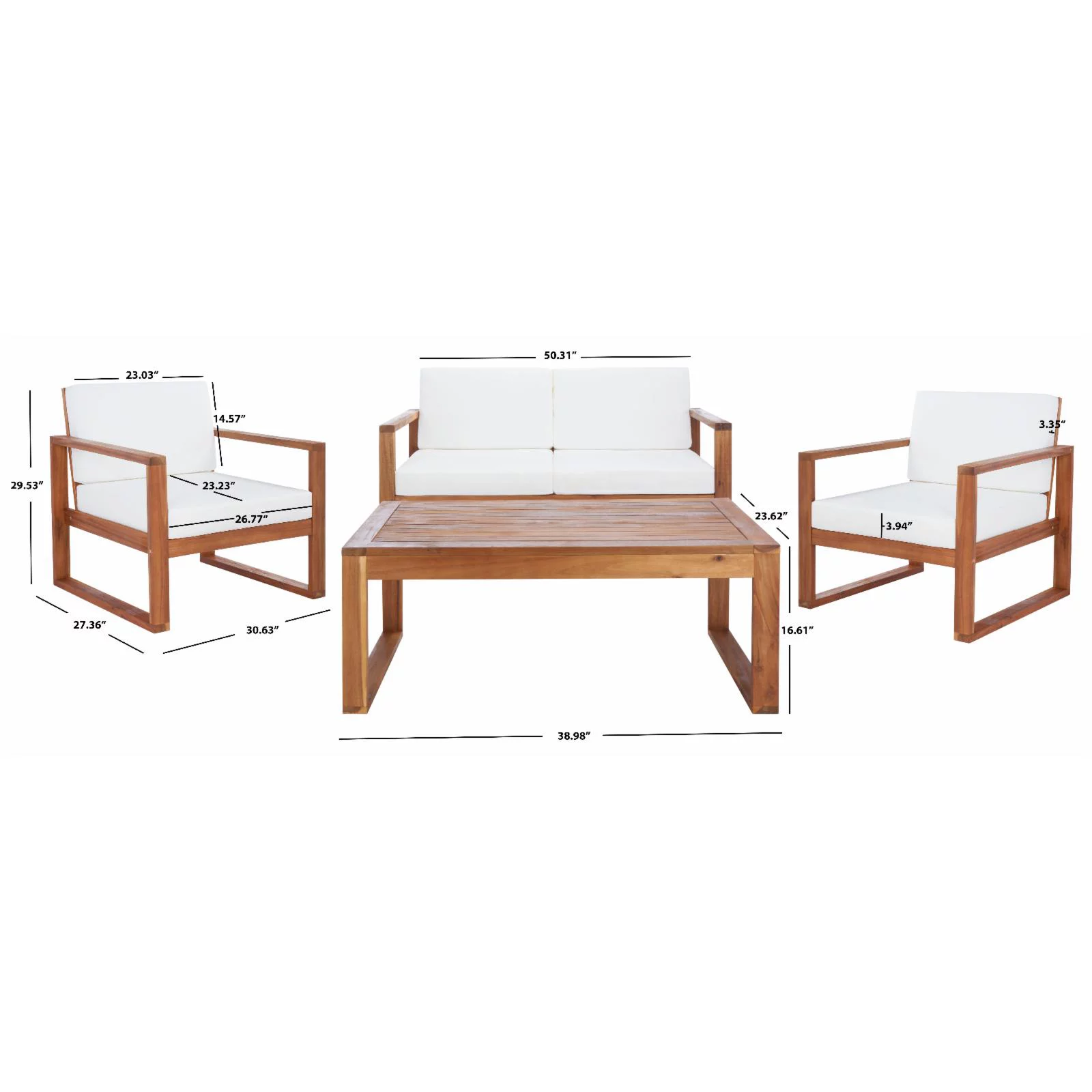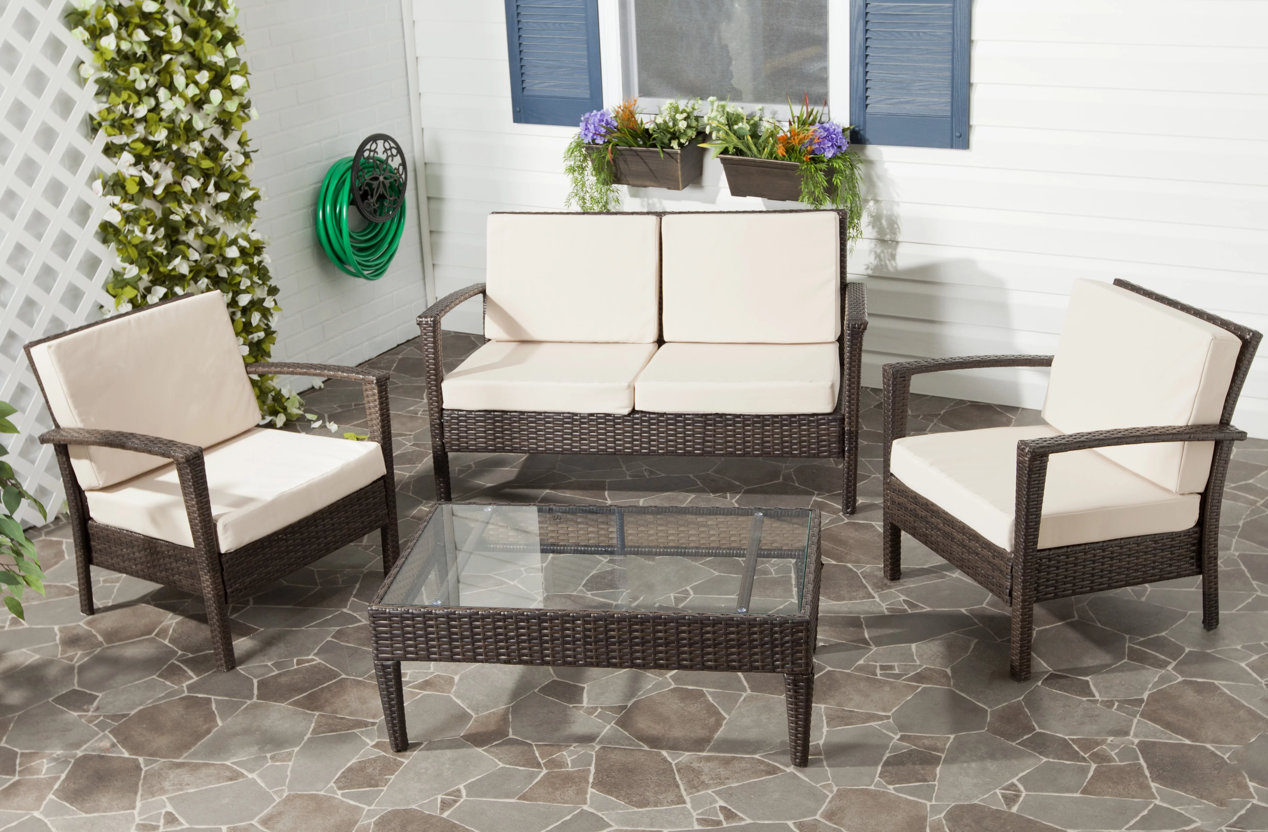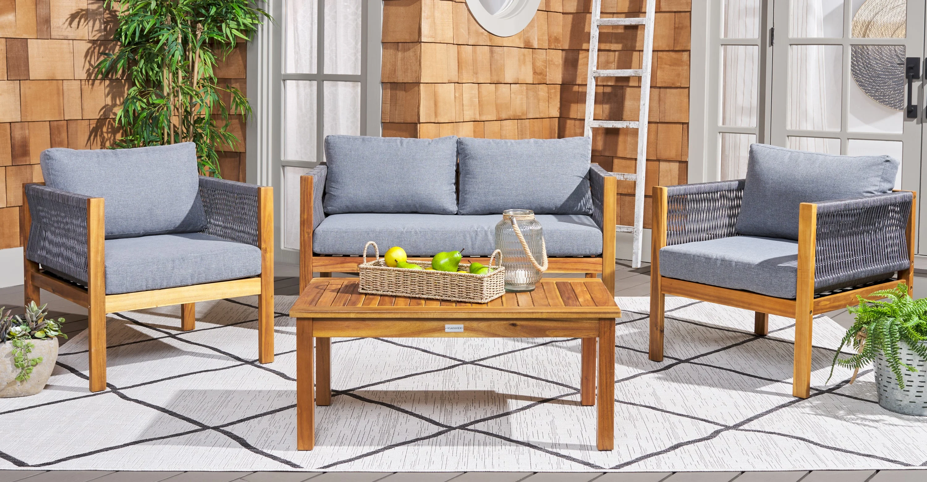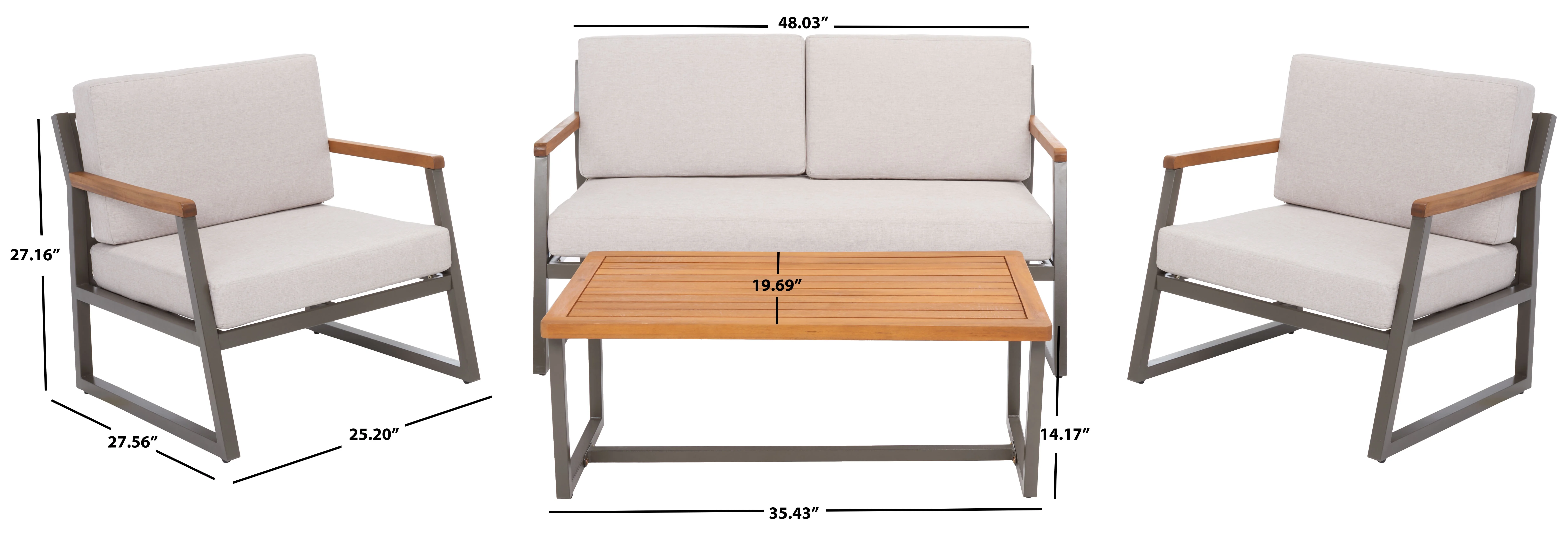 Safavieh Fresno Outdoor Contemporary 4 Piece Living Set with Cushion
