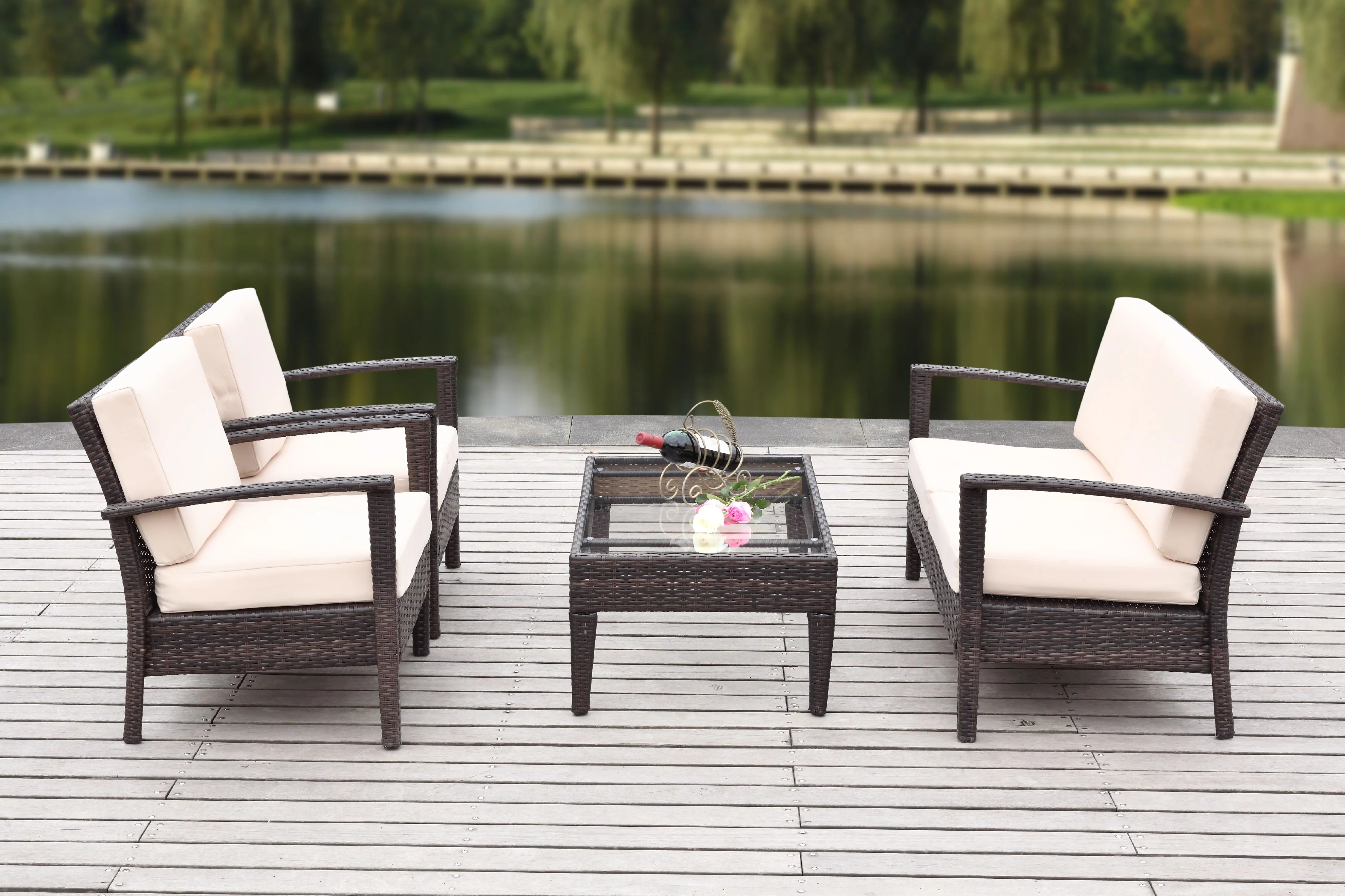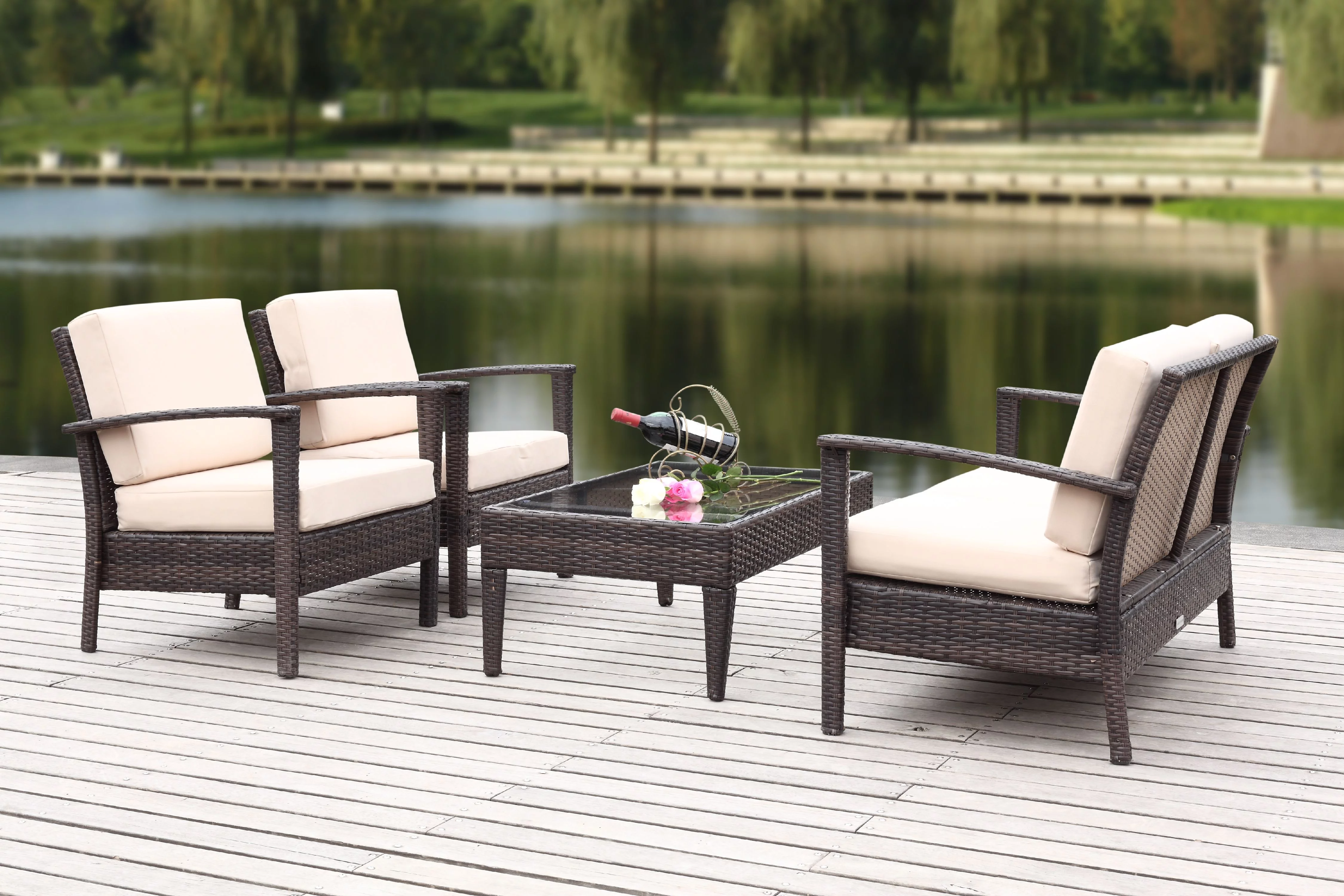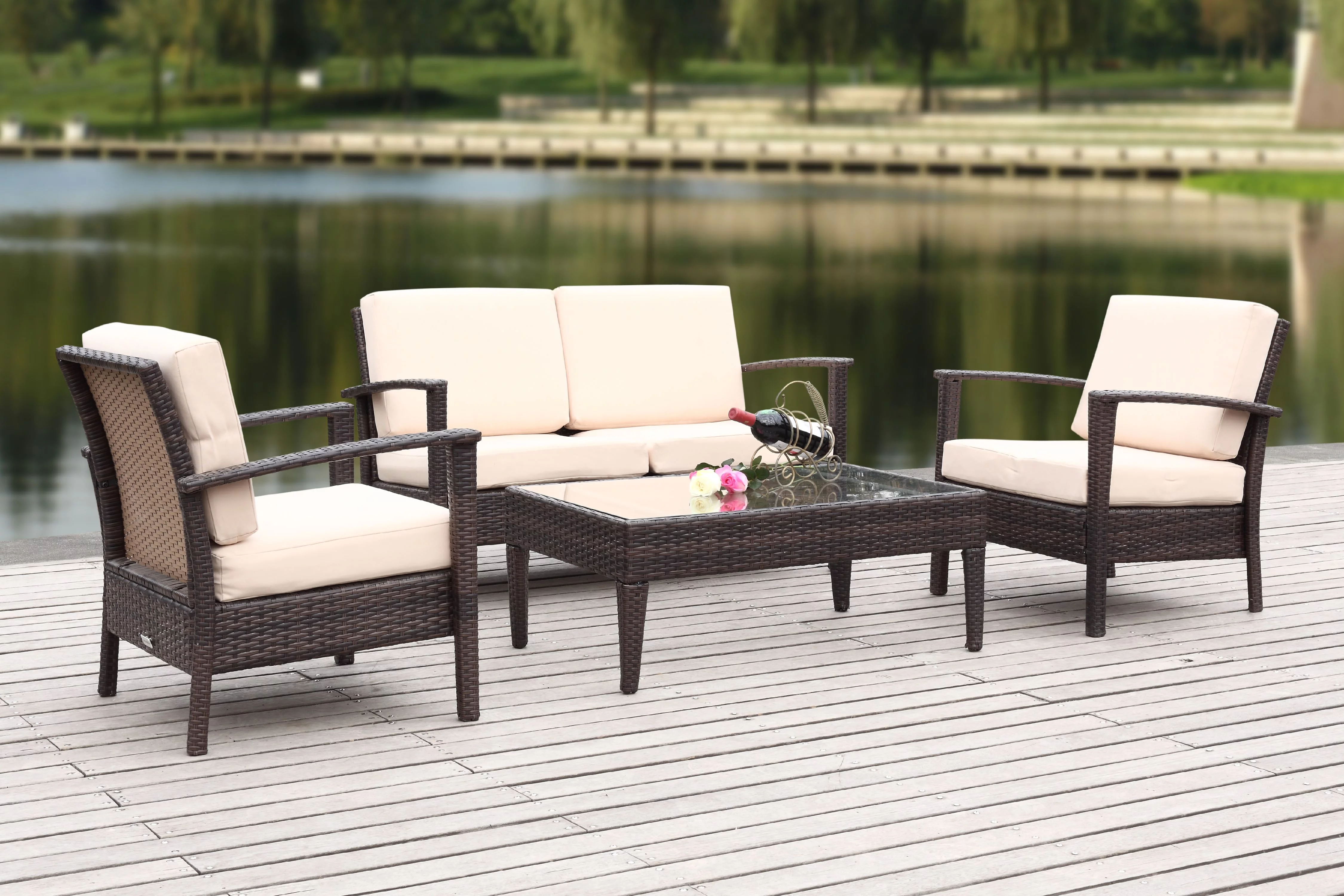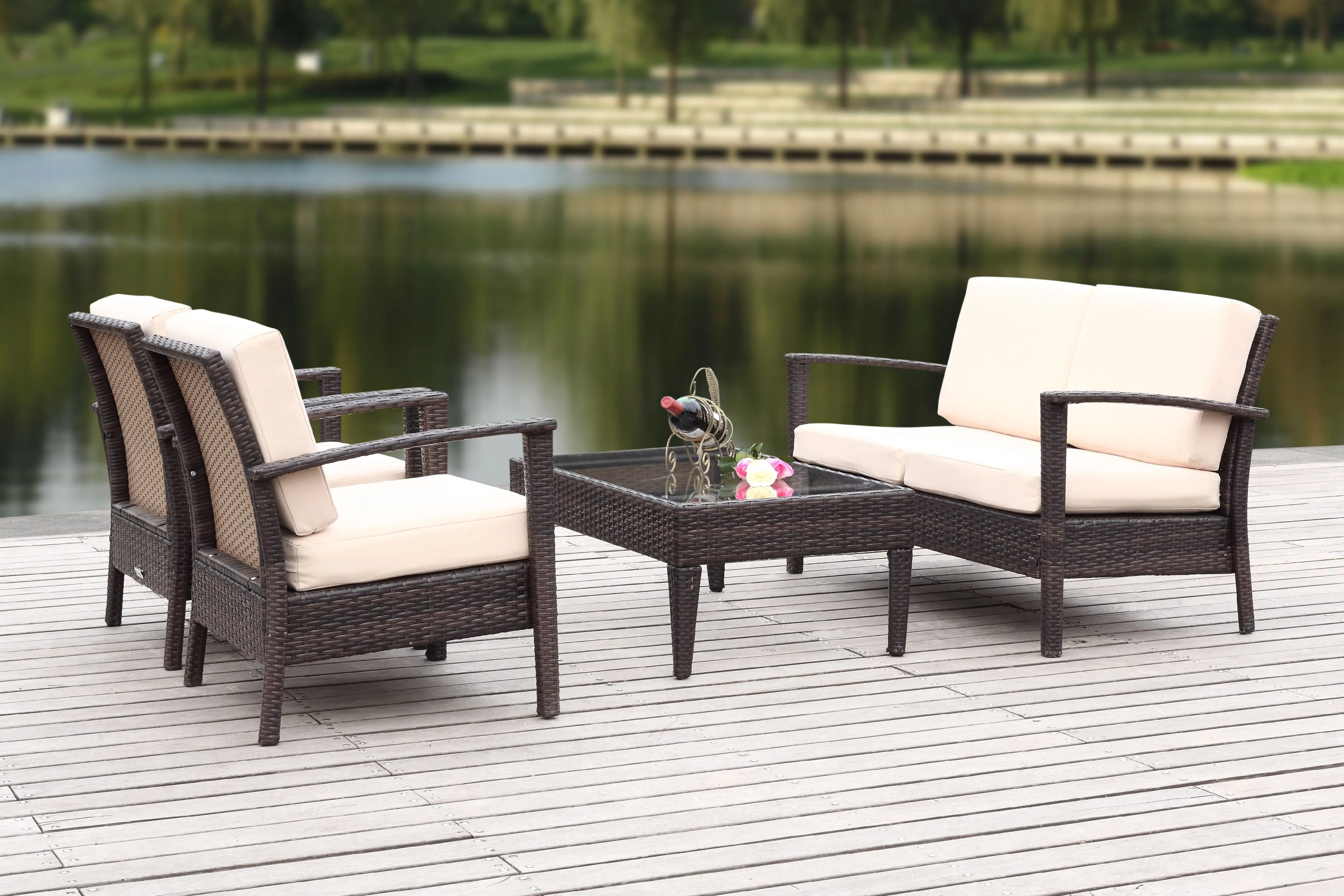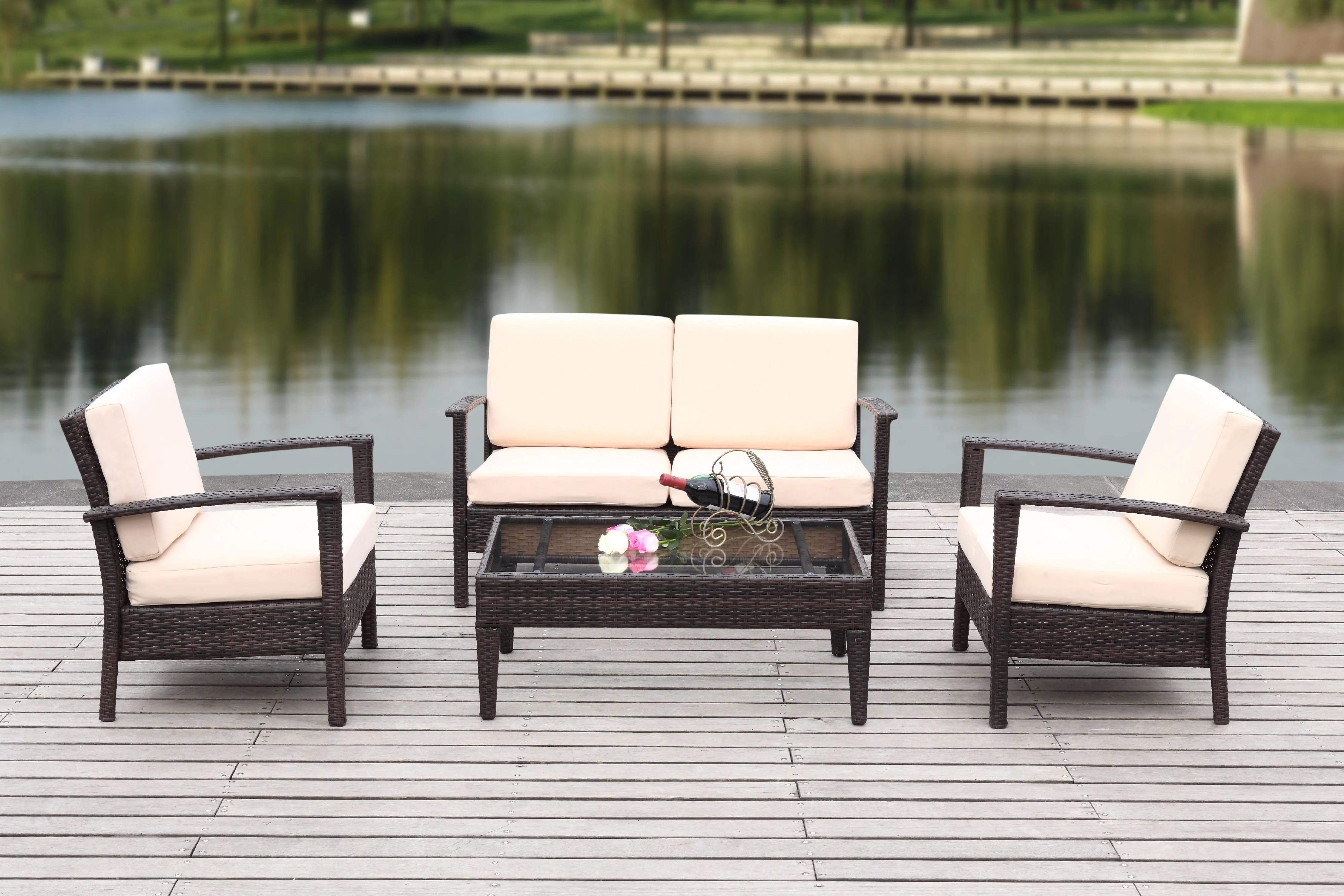 Safavieh Fresno Outdoor Contemporary 4 Piece Living Set with Cushion