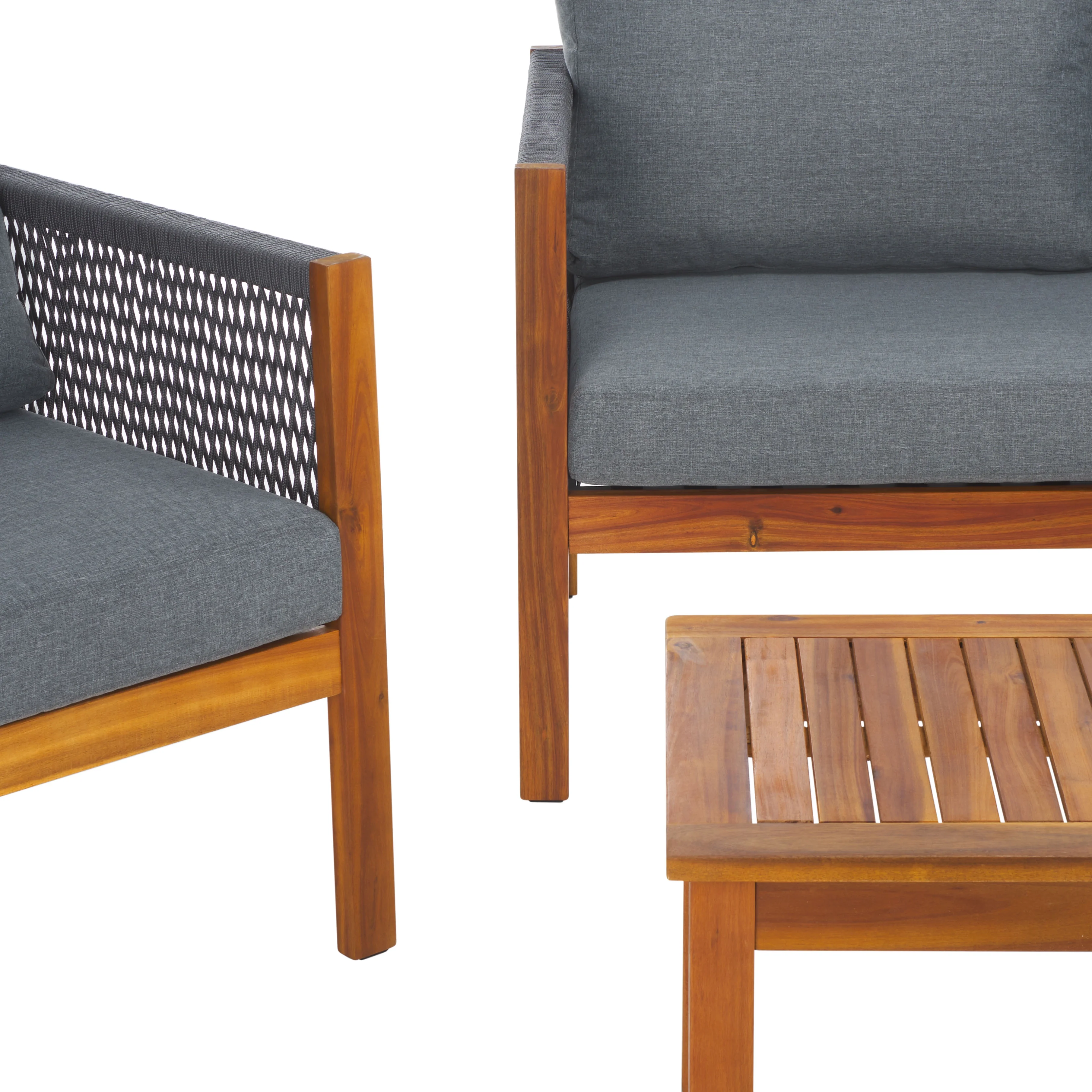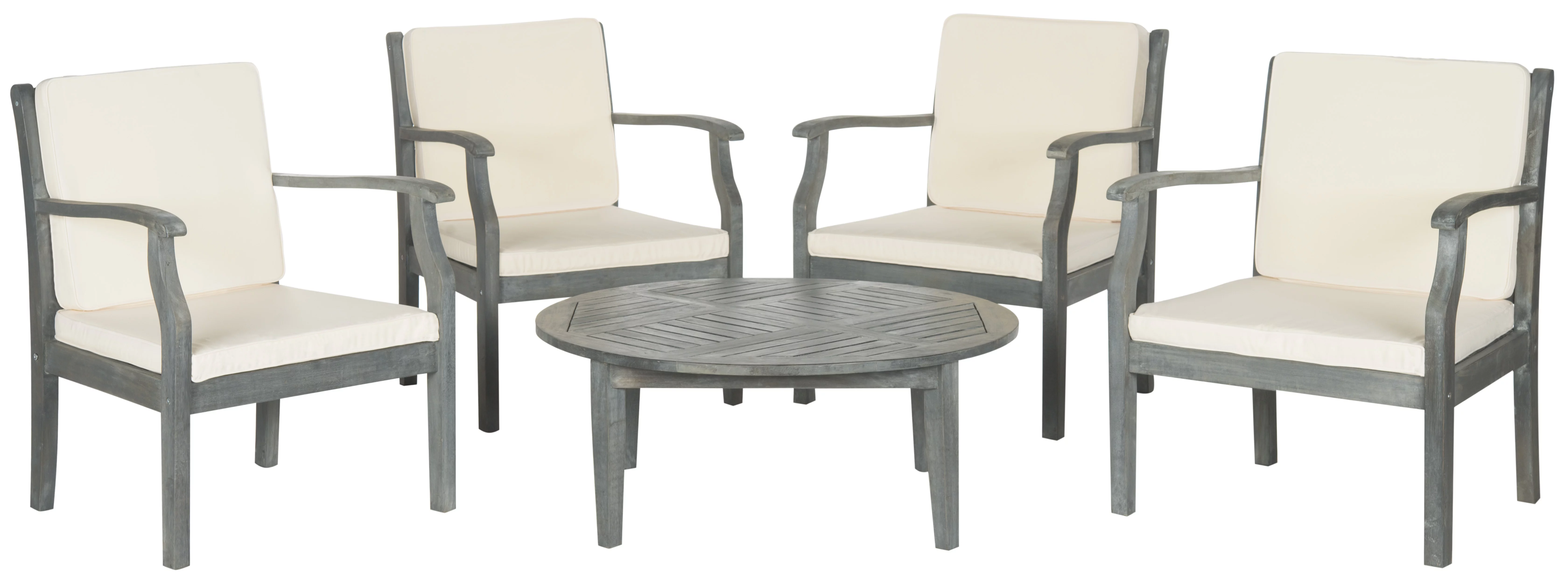 SAFAVIEH Randolph Outdoor Patio 4 Piece Conversation Set, Grey/Light Grey