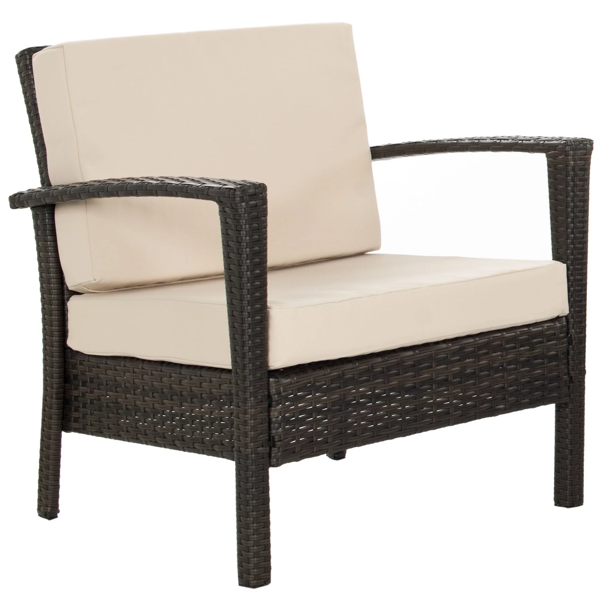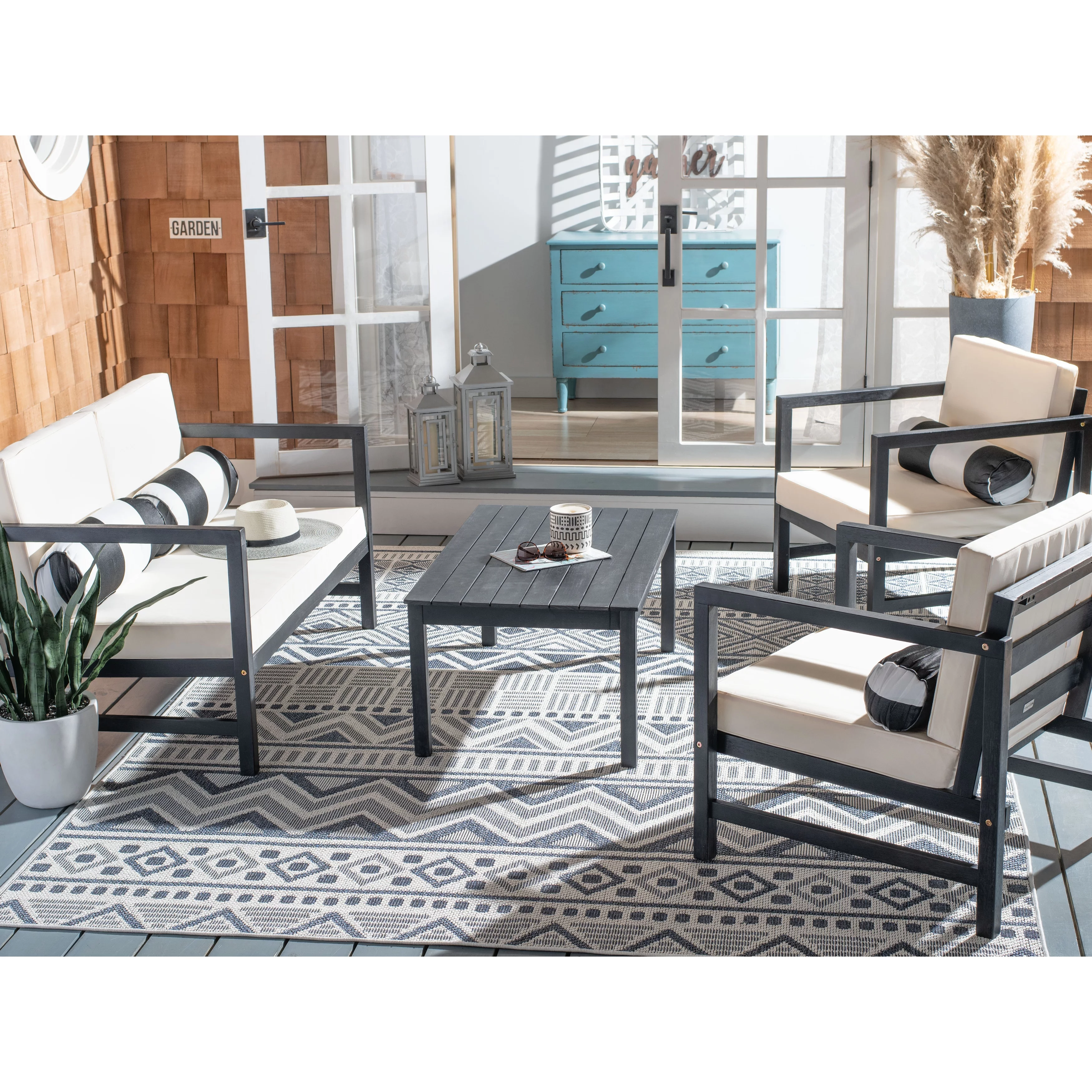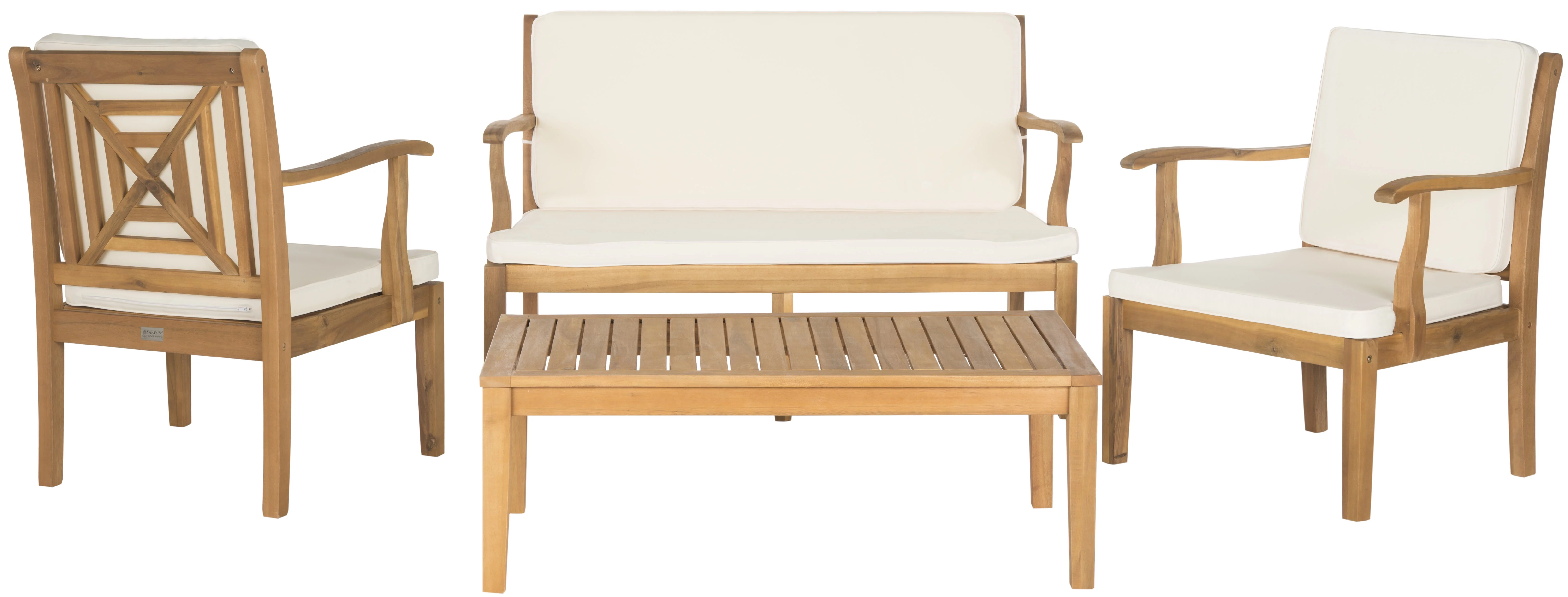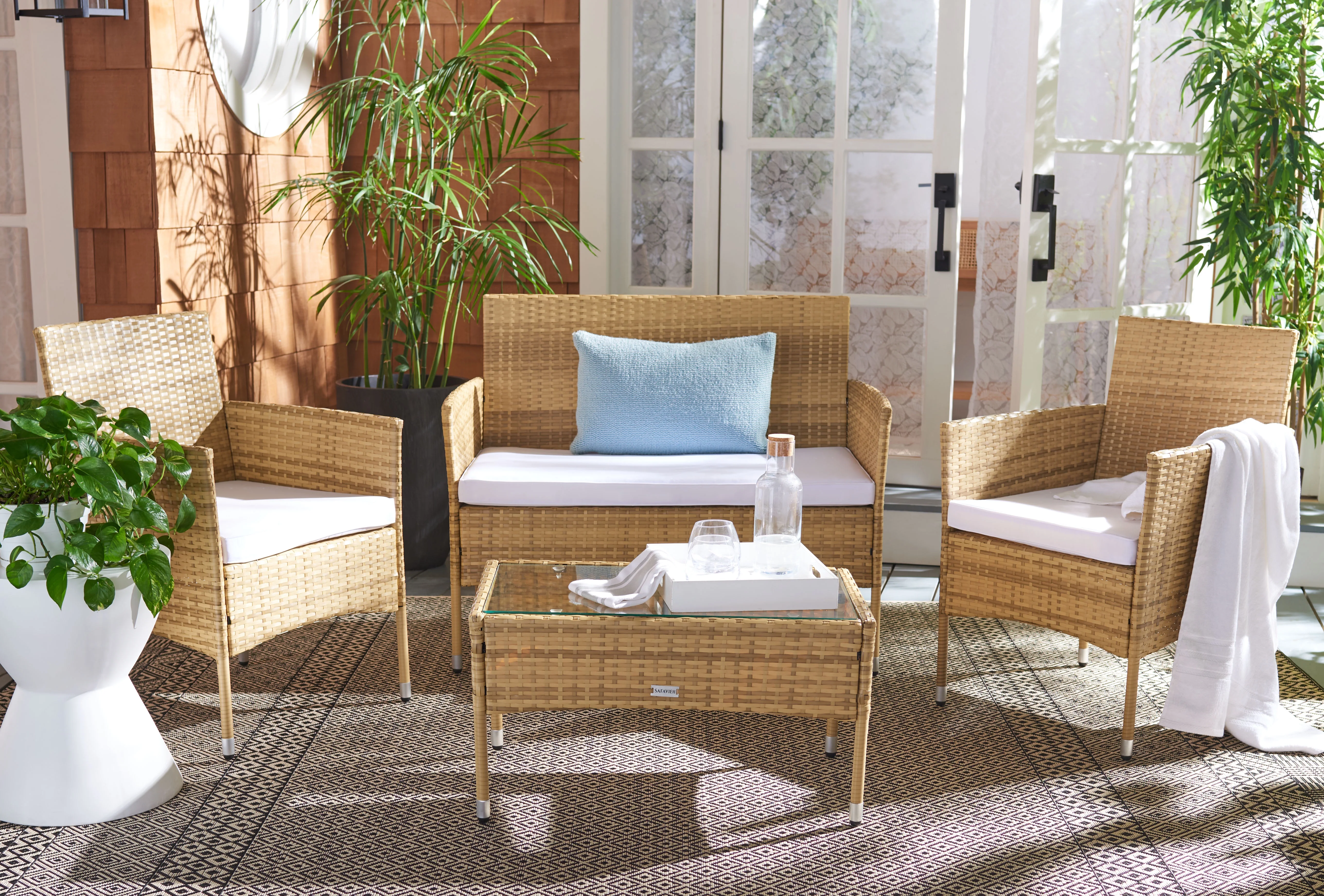 SAFAVIEH Chaston Outdoor 4 Piece Conversational Set, Natural/Beige/Black & White