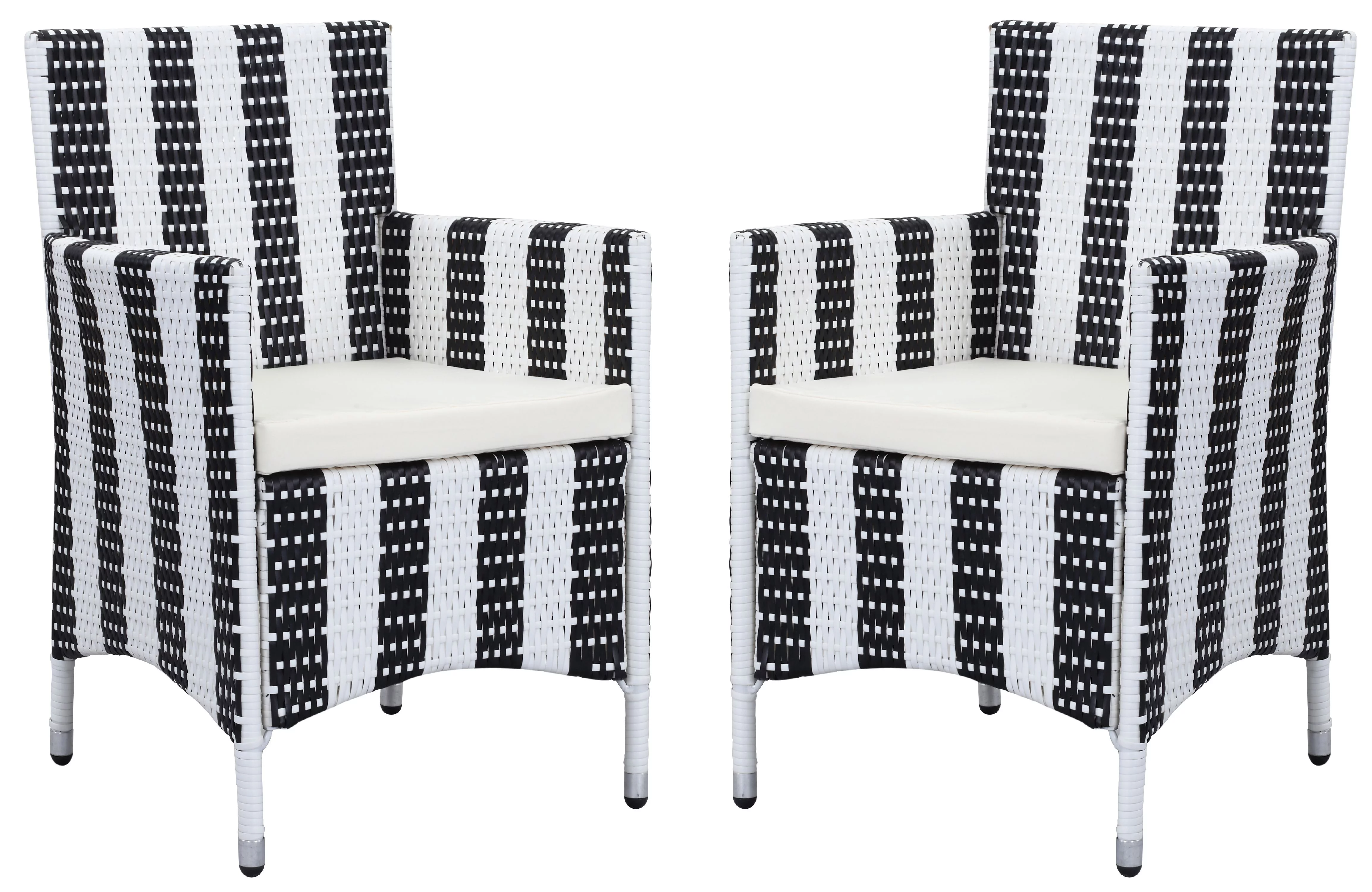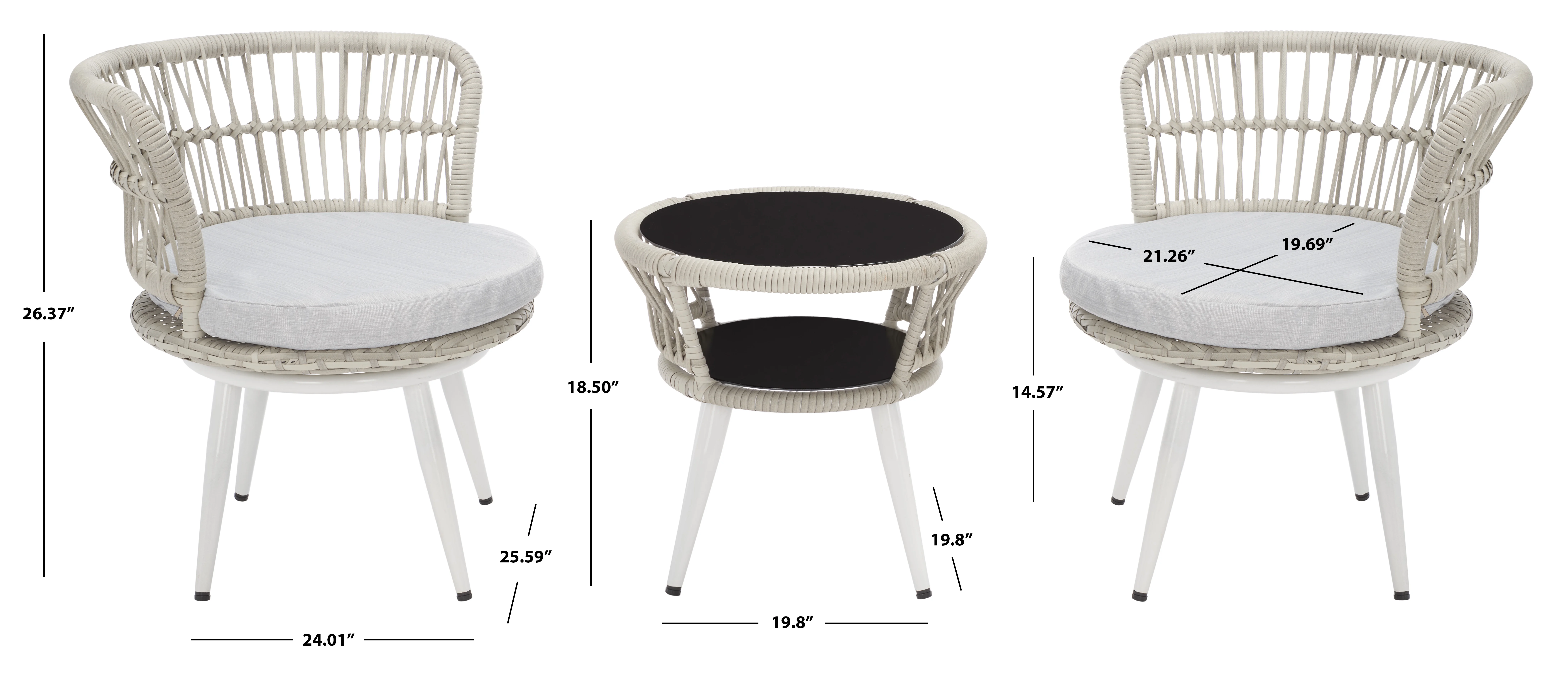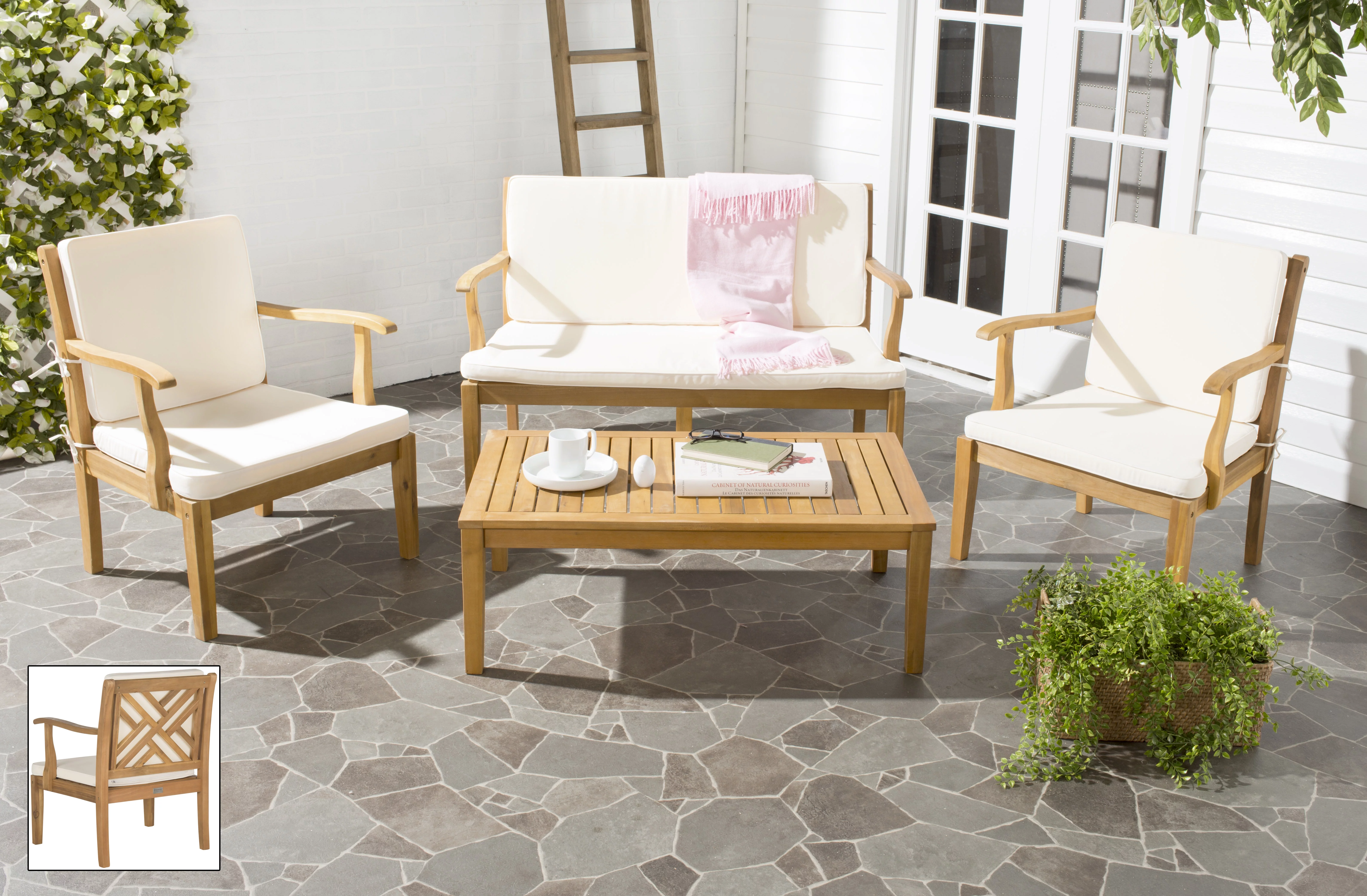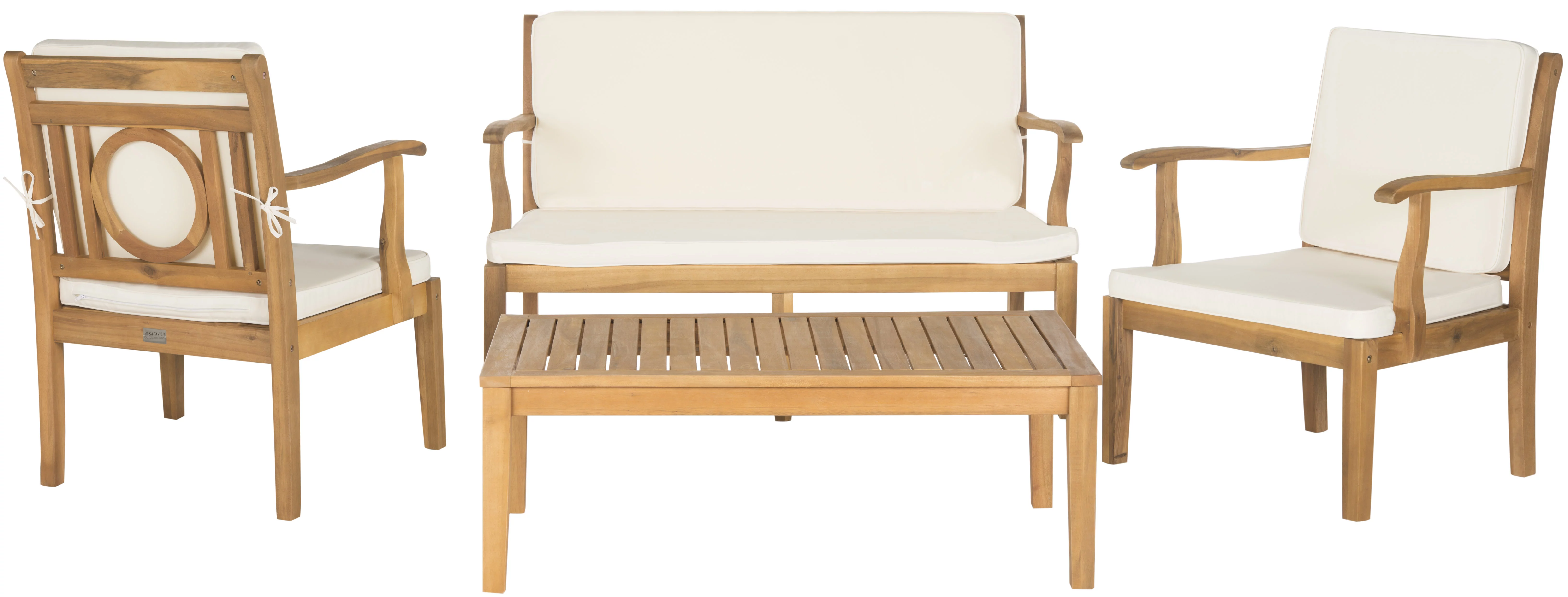 SAFAVIEH Chaston Outdoor 4 Piece Conversational Set, Natural/Beige/Black & White