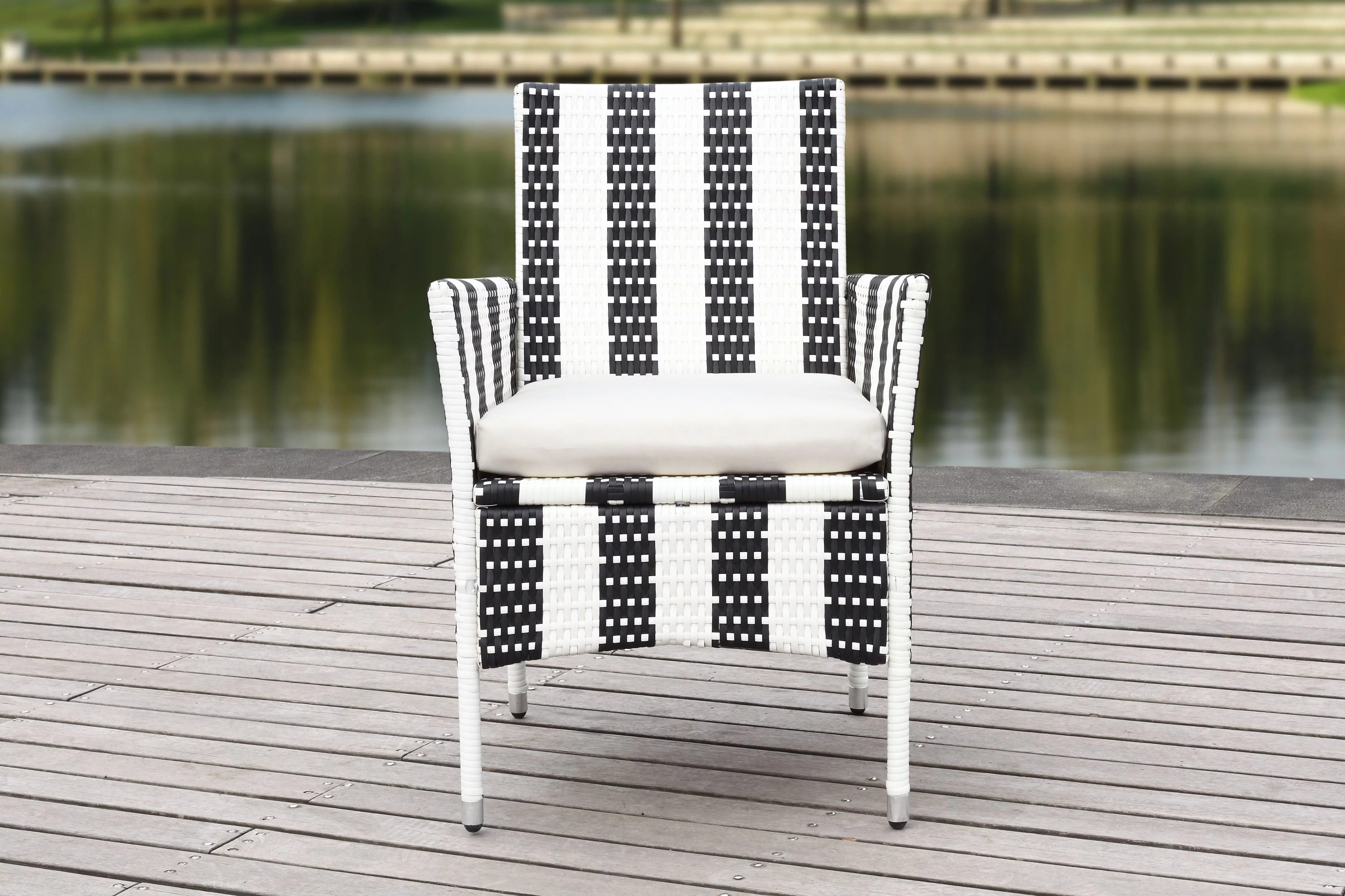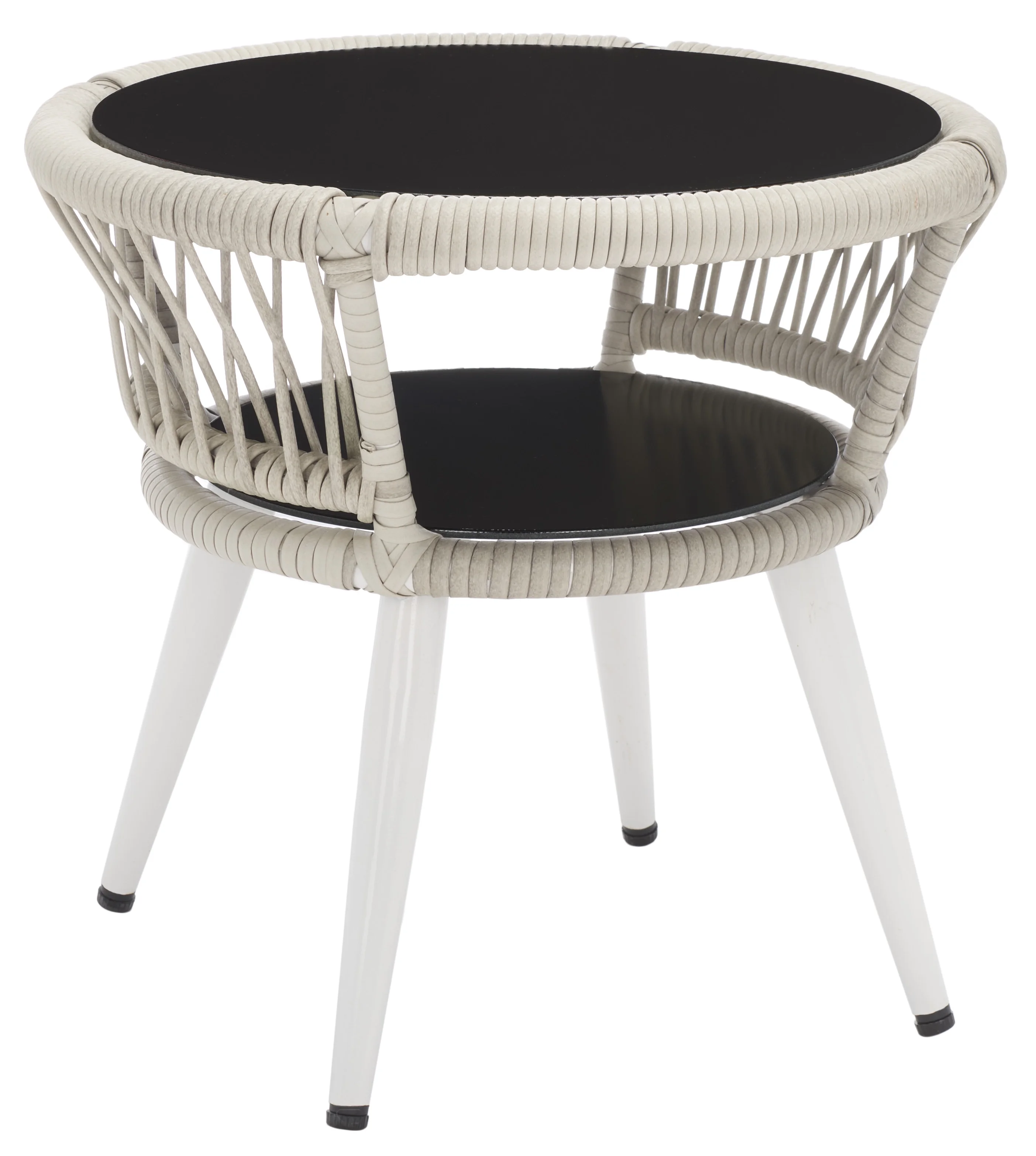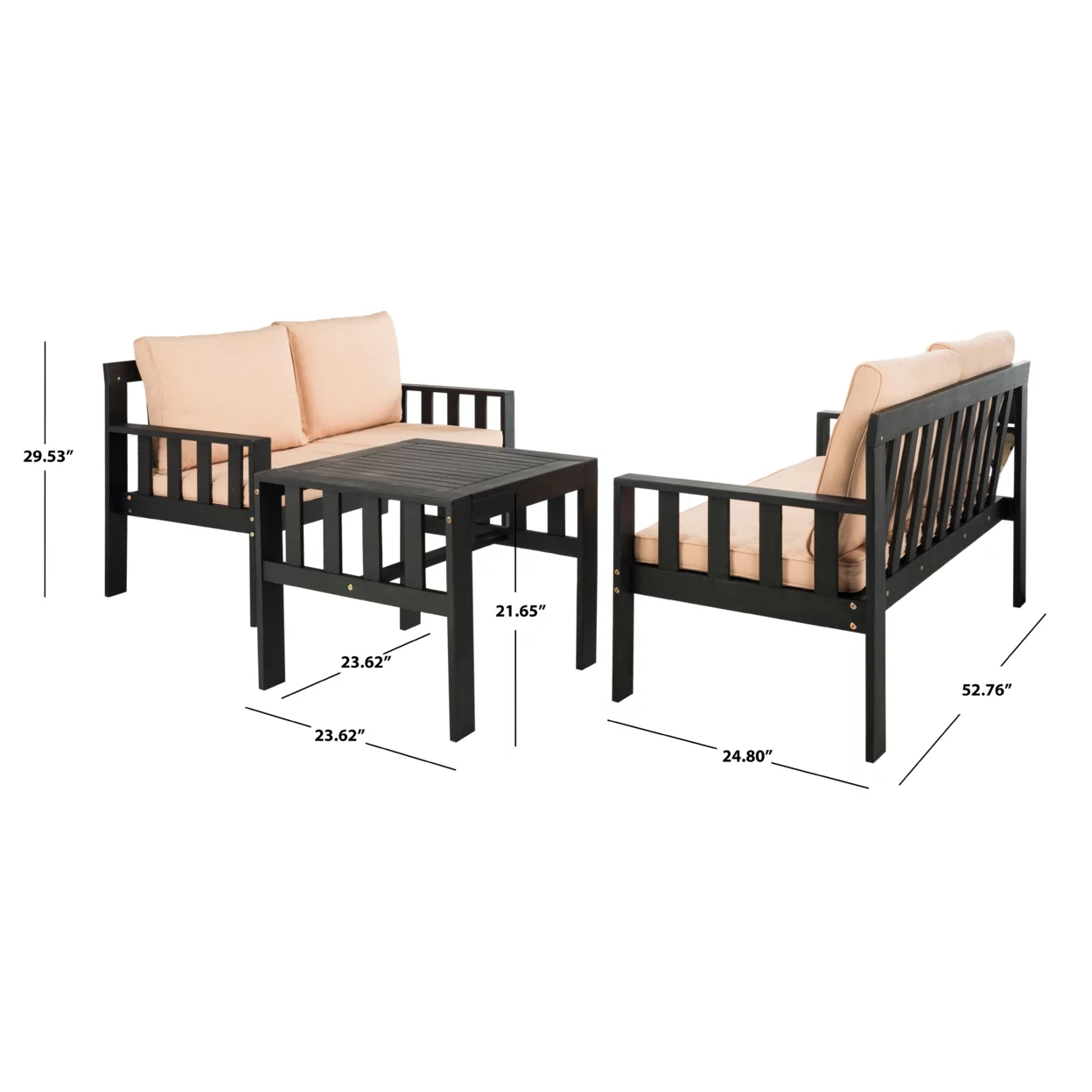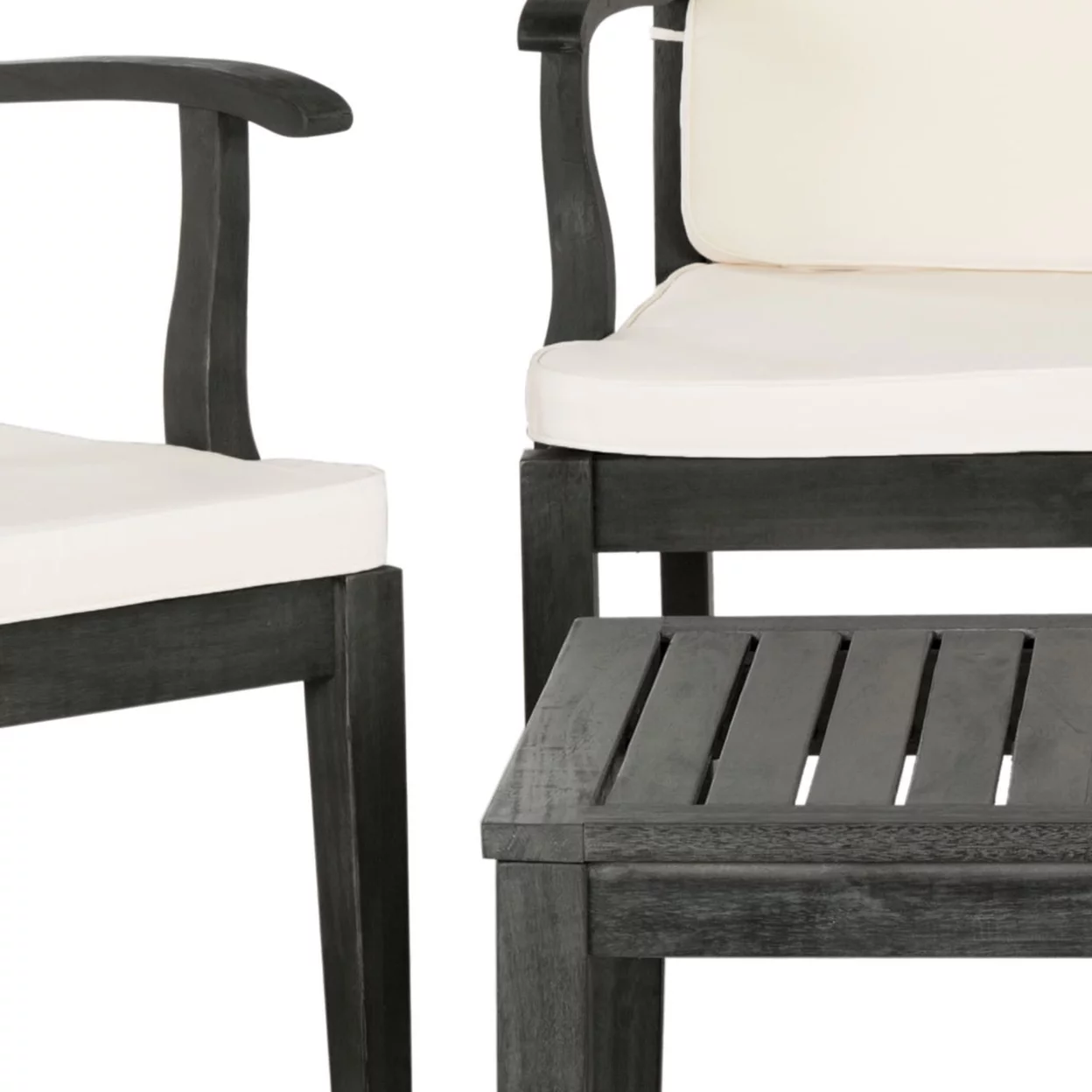 SAFAVIEH Chaston Outdoor 4 Piece Conversational Set, Natural/Beige/Black & White