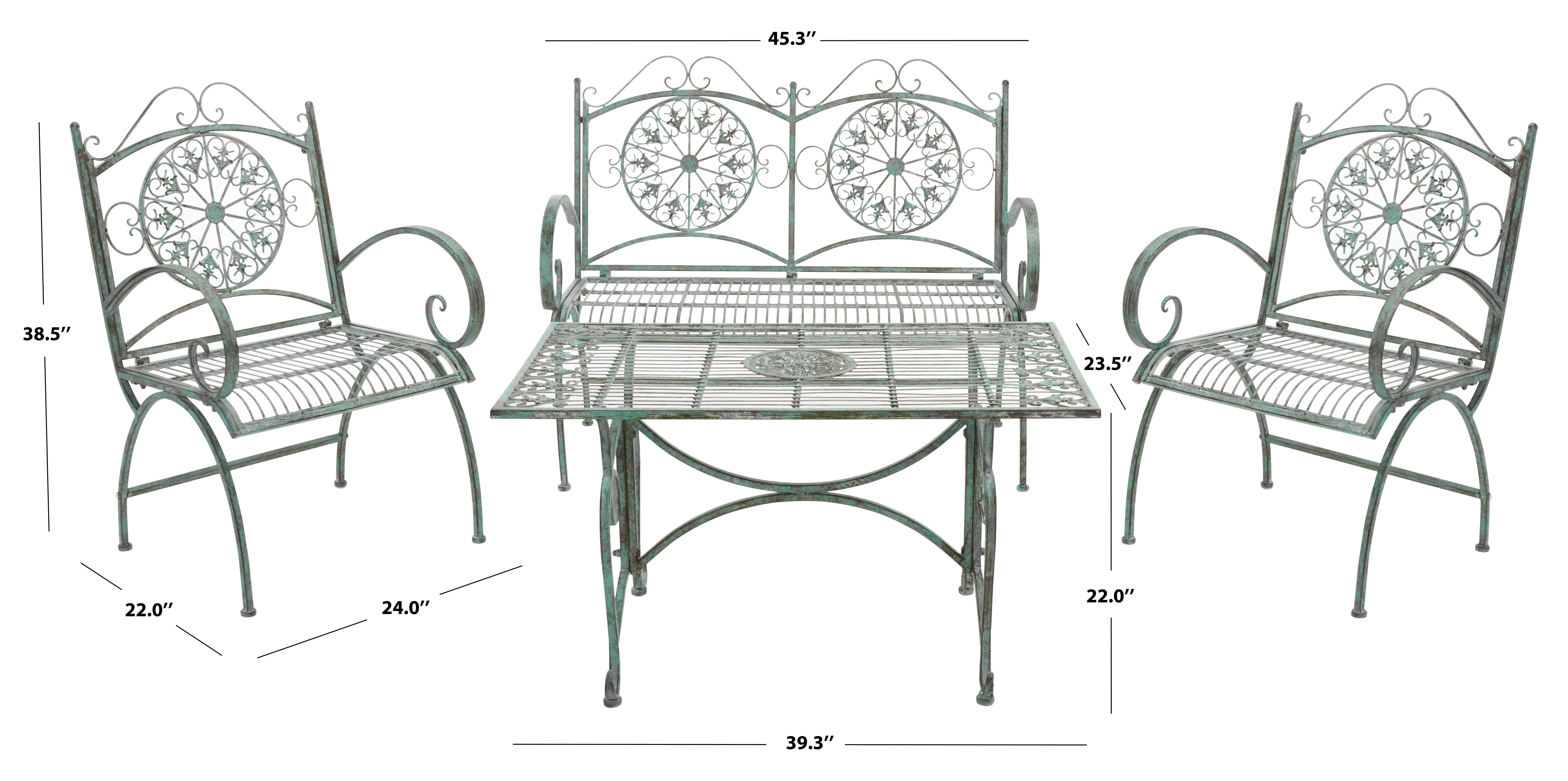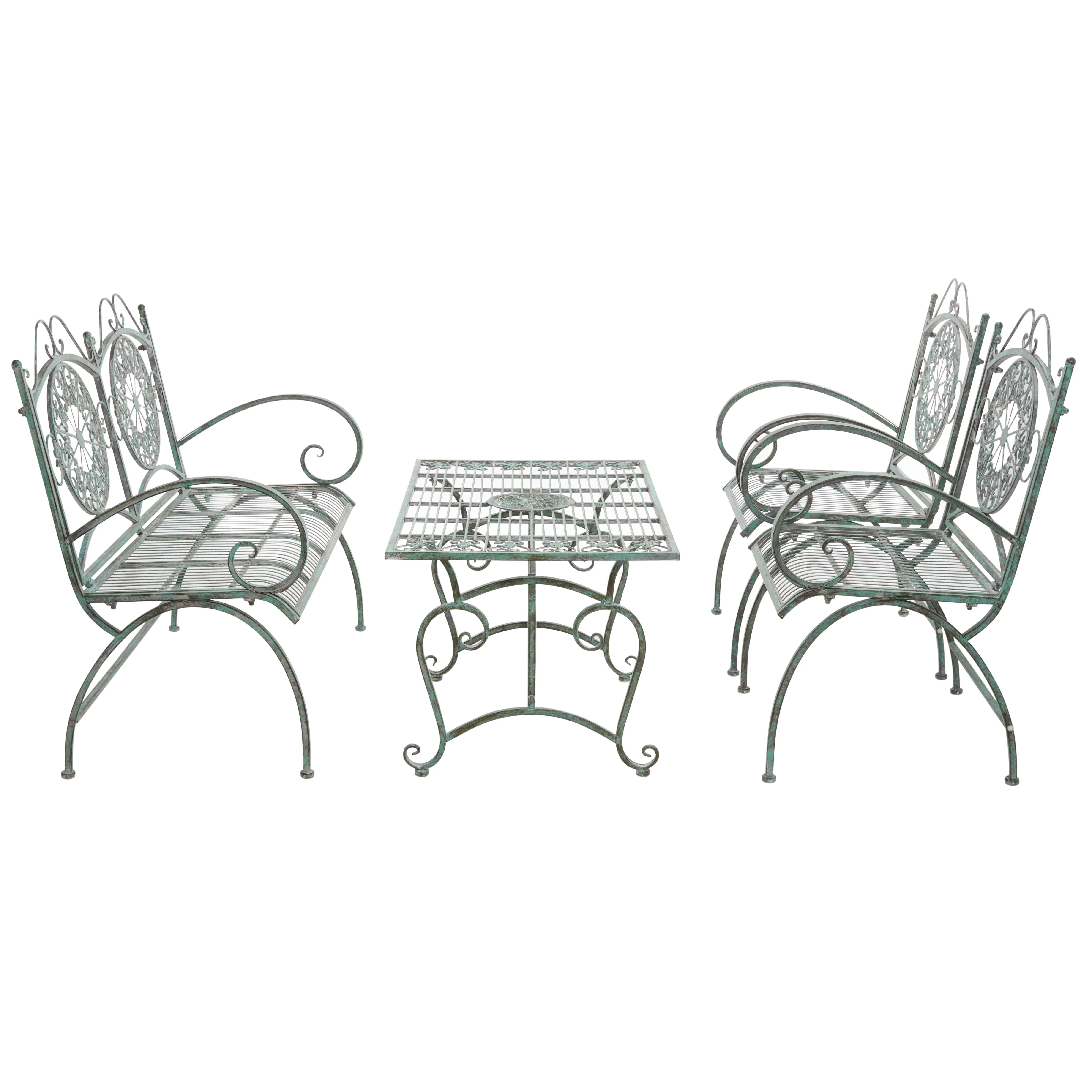 SAFAVIEH Sophie Outdoor Patio 4 Pc Conversational Set, Antique Green