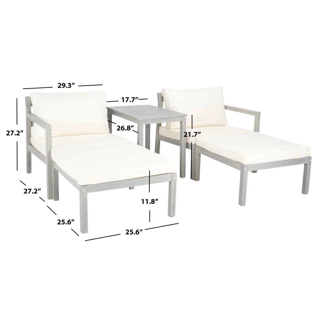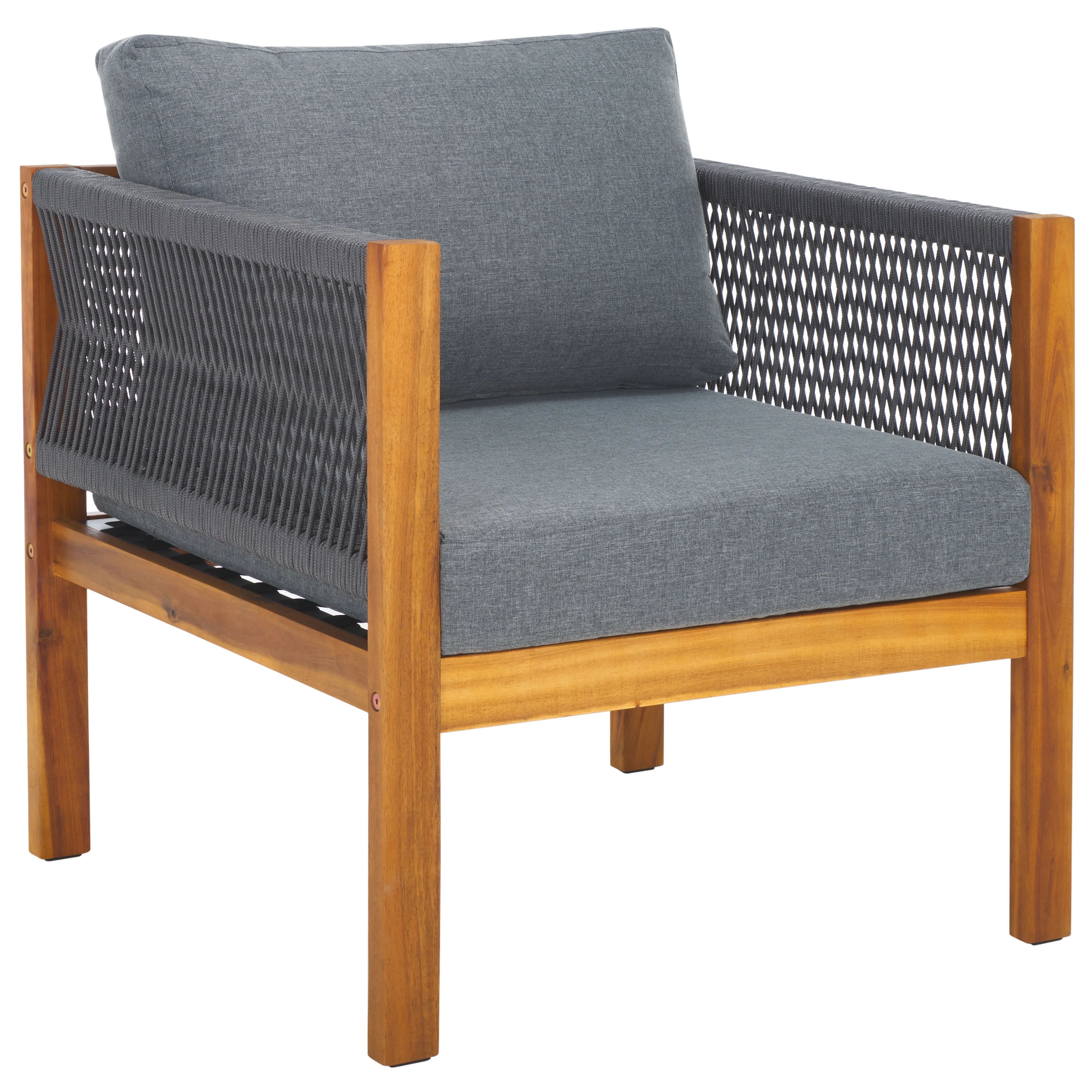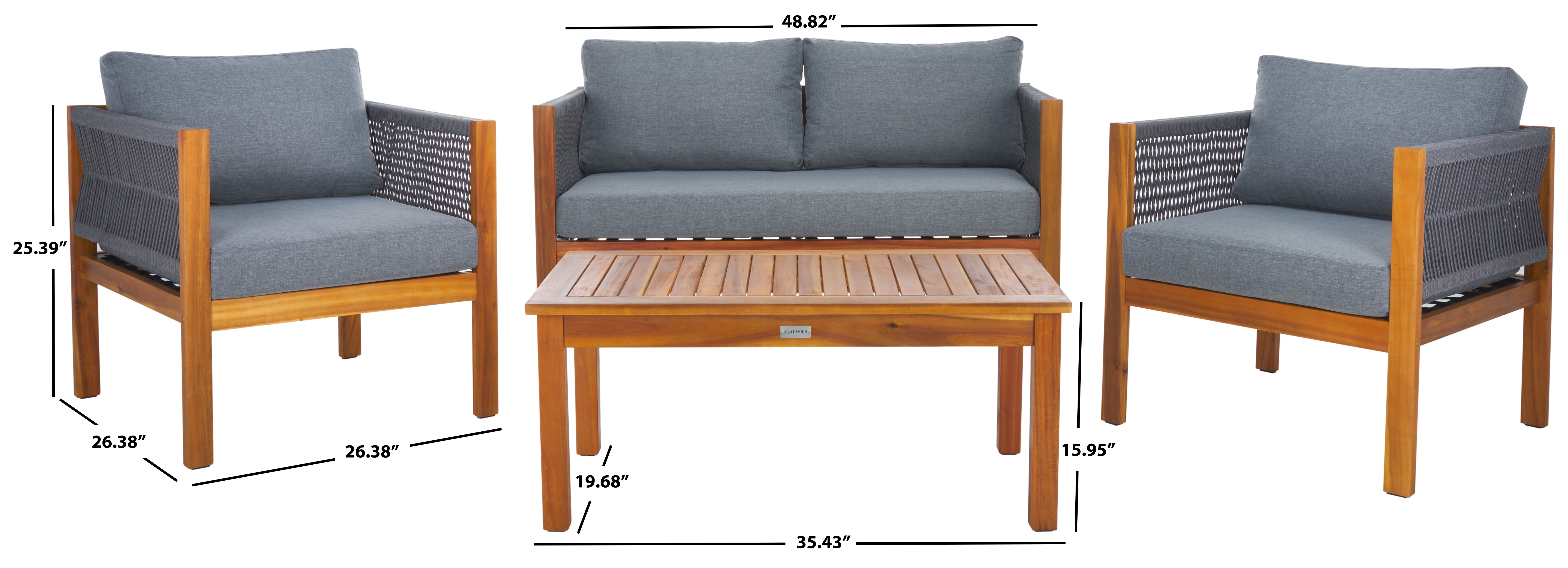 SAFAVIEH Holyoke Outdoor Patio 4 Piece Conversation Set, Grey/Light Grey