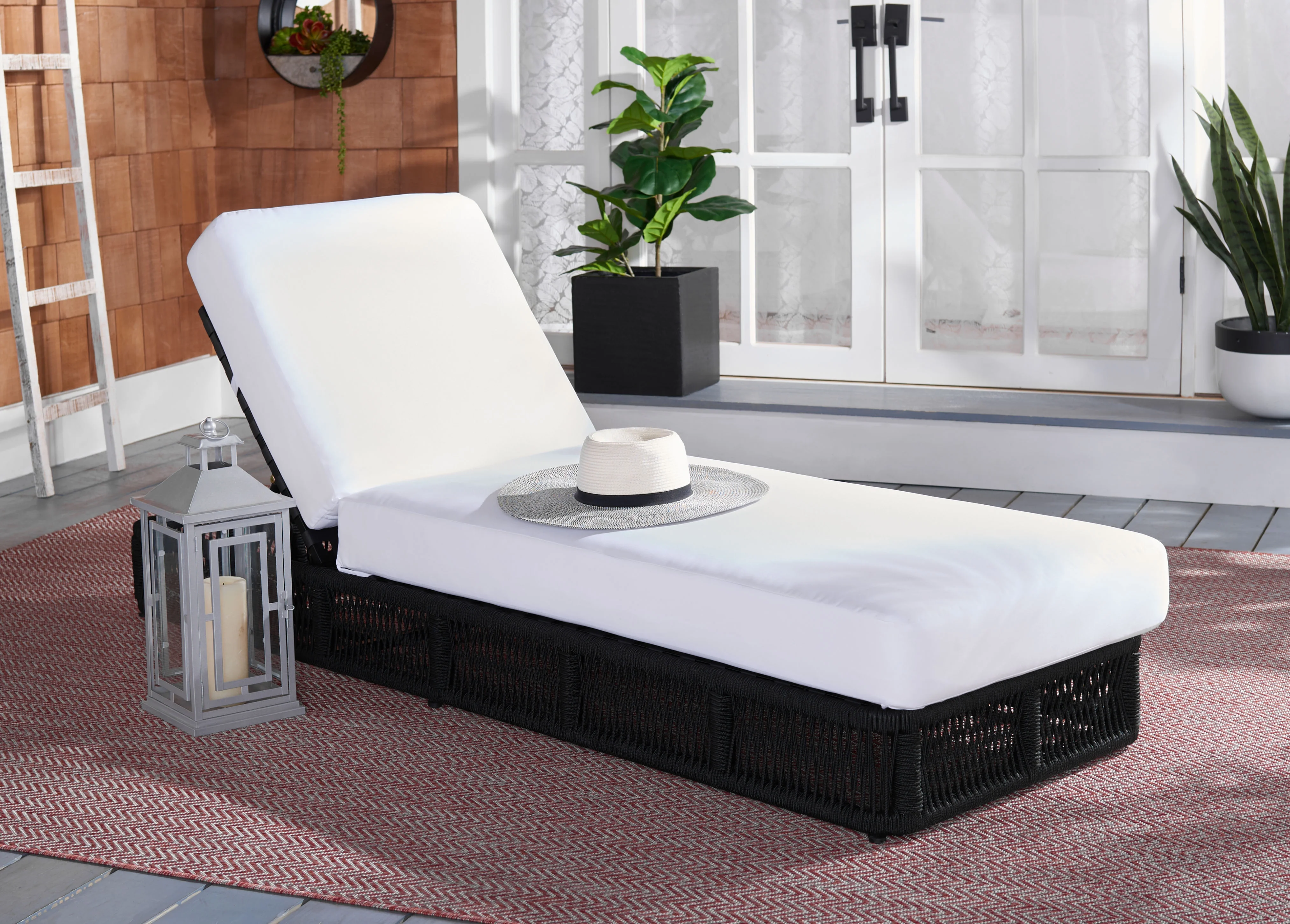 SAFAVIEH Outdoor Collection Newport Chaise Chair & Side Table Natural/Beige