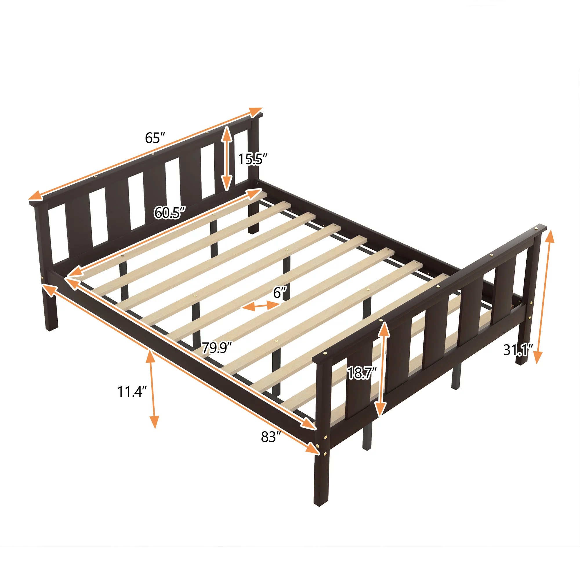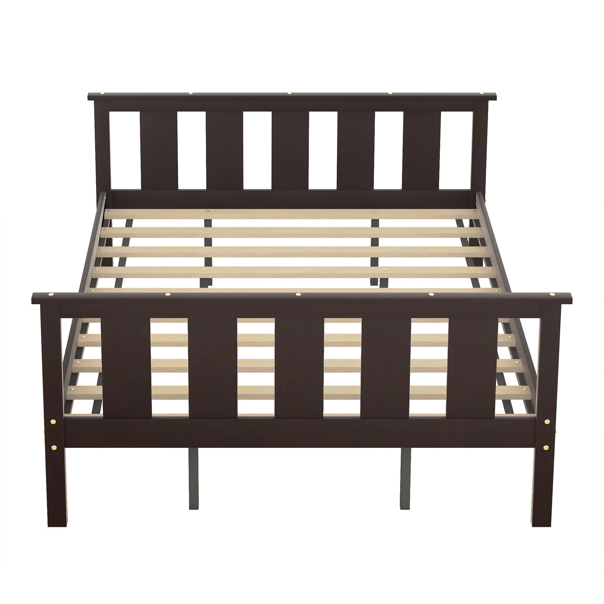 Queen Size Pine Wood Platform Bed with Headboard and Footboard for Kids Room, Espresso